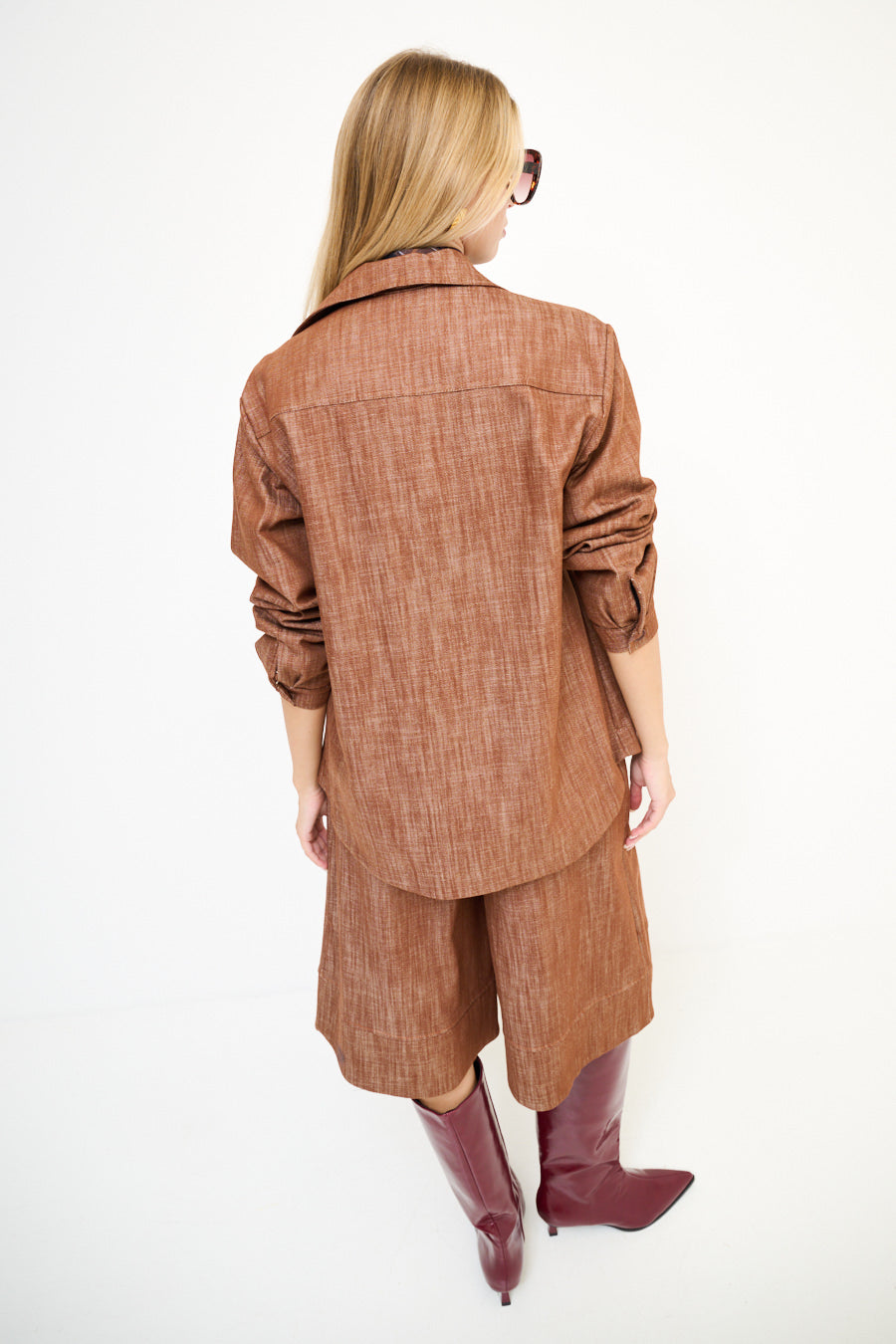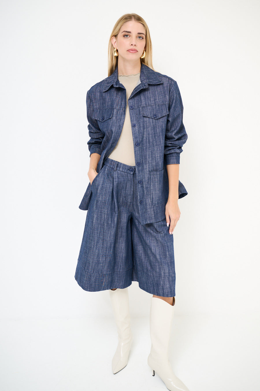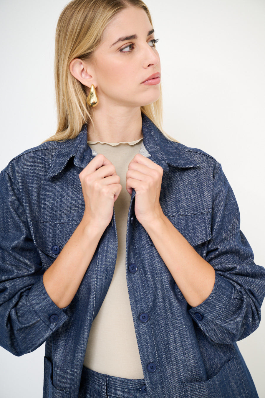 سترة قميص من الدنيم ذي الآثار المليئة مع جيوب رفرف الجملة
