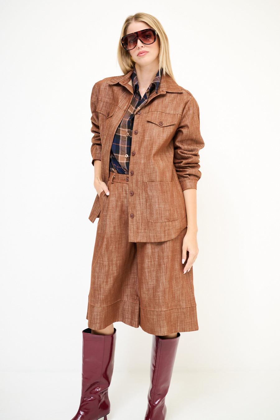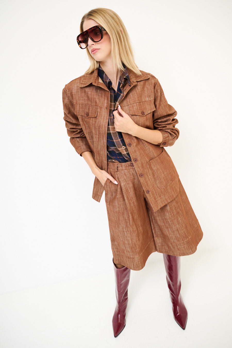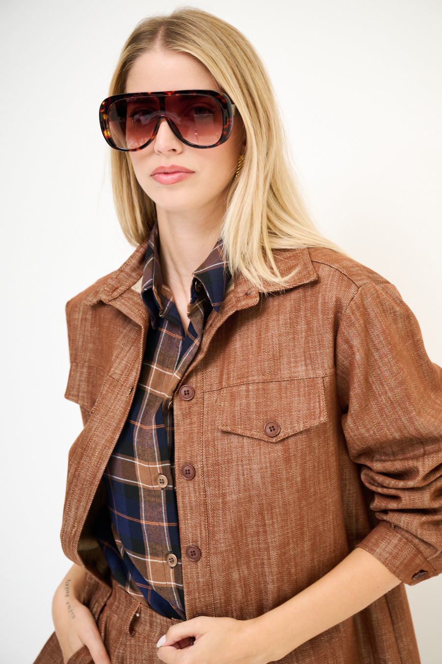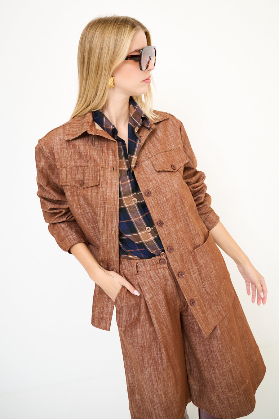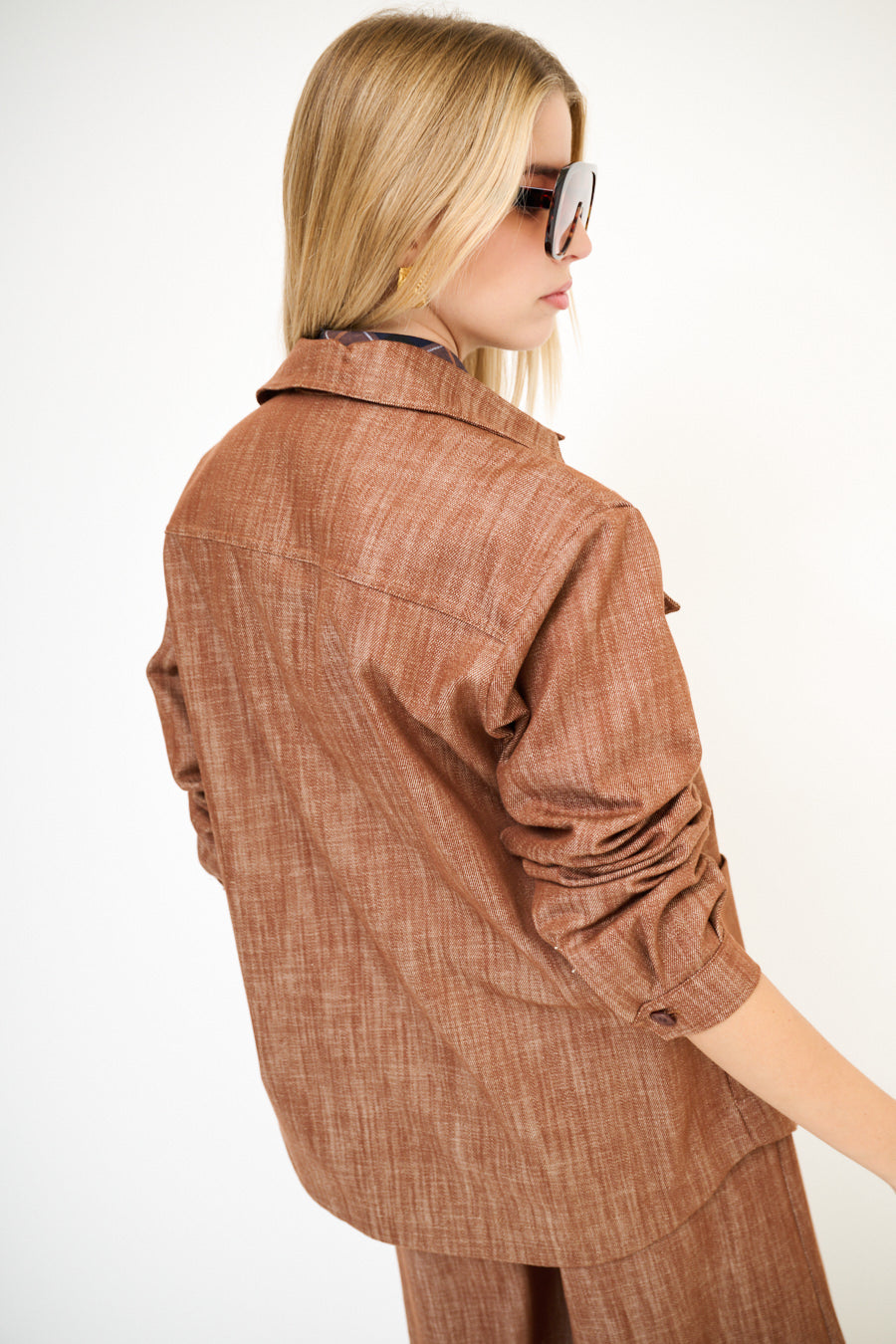 - جيوب رفرف الصدر مع تفاصيل الزر