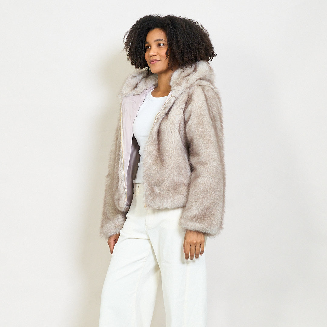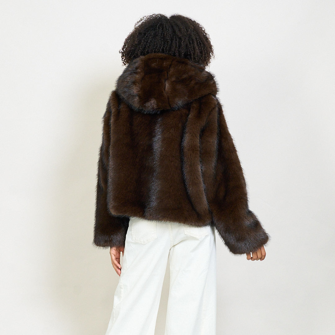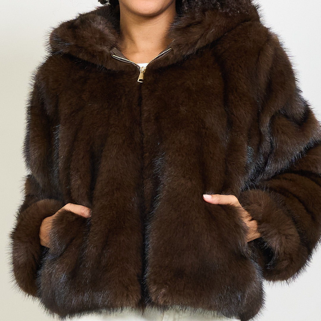 سترة هوديي الفراء الفاخرة مع الإغلاق الرمز البريدي بالجملة