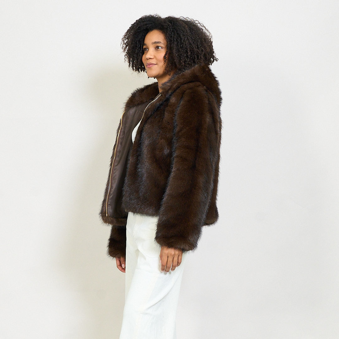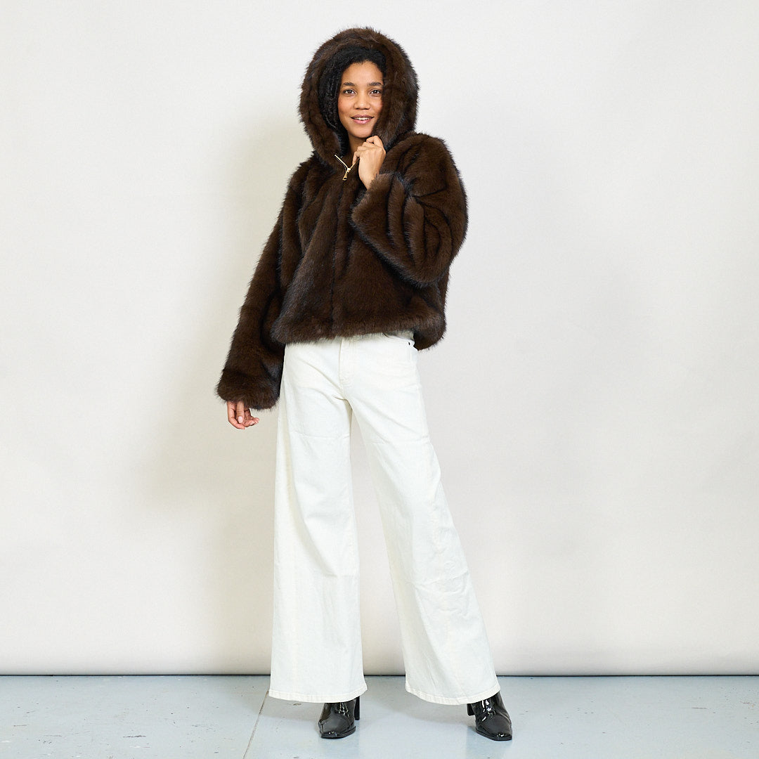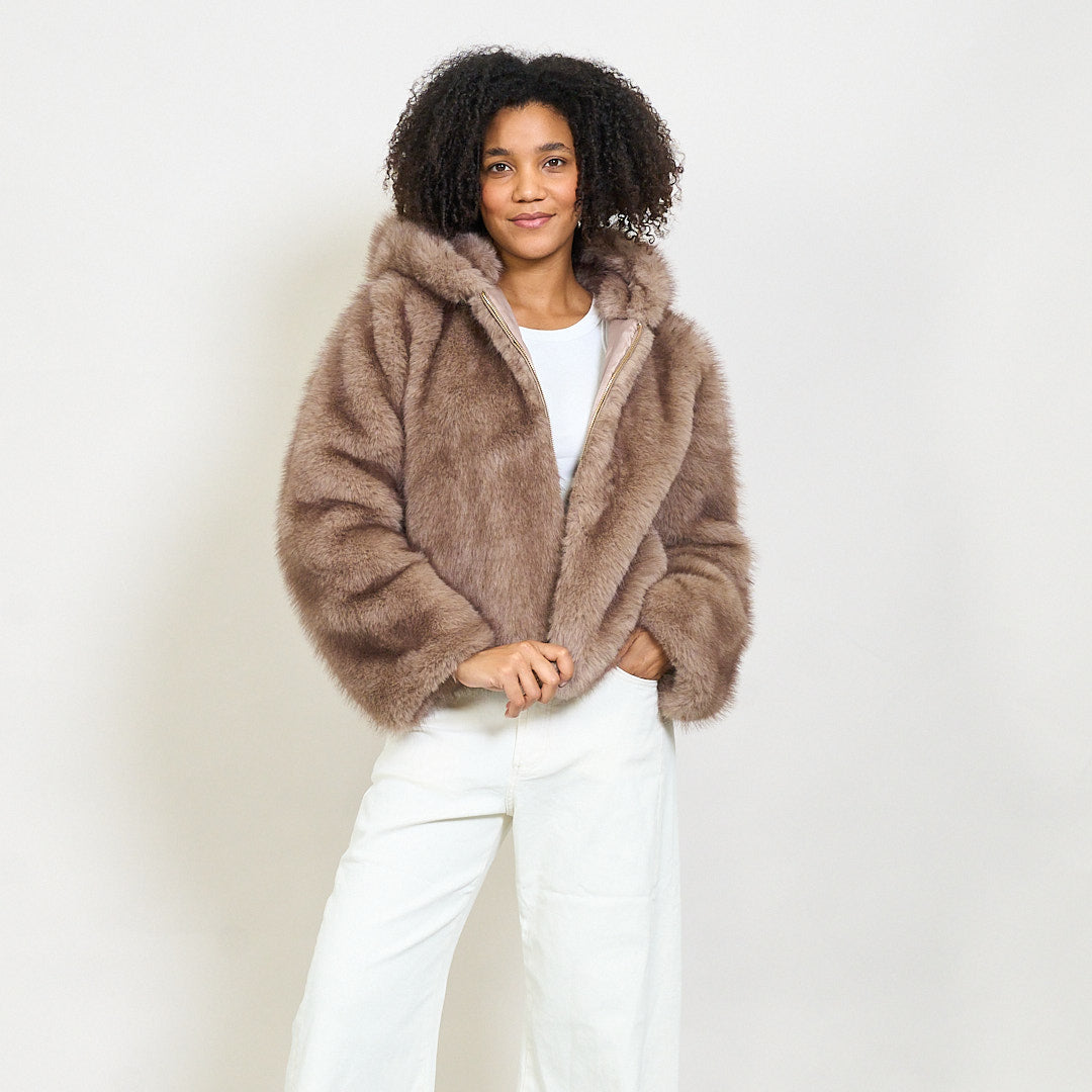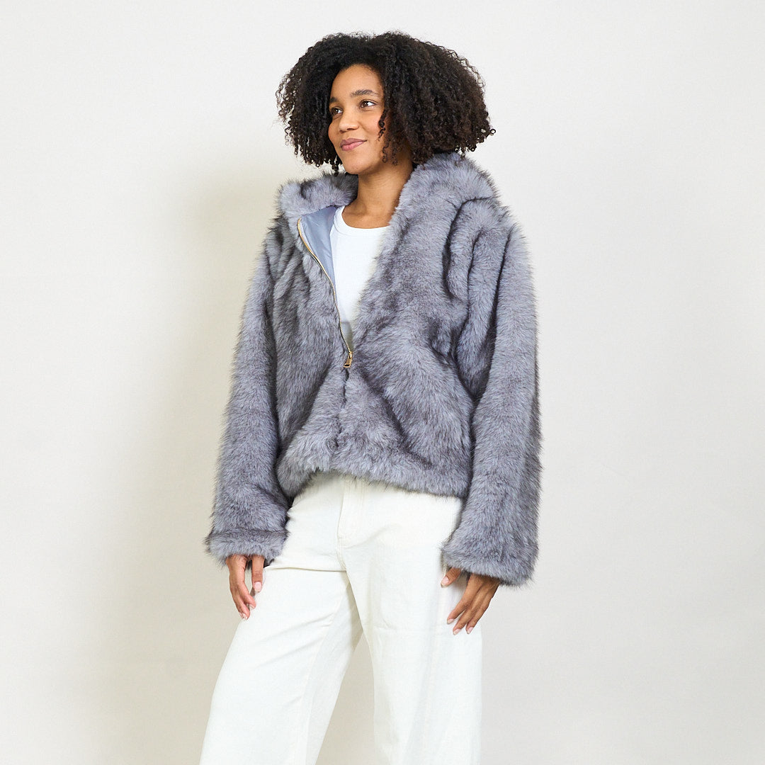 سترة هوديي الفراء الفاخرة مع الإغلاق الرمز البريدي بالجملة