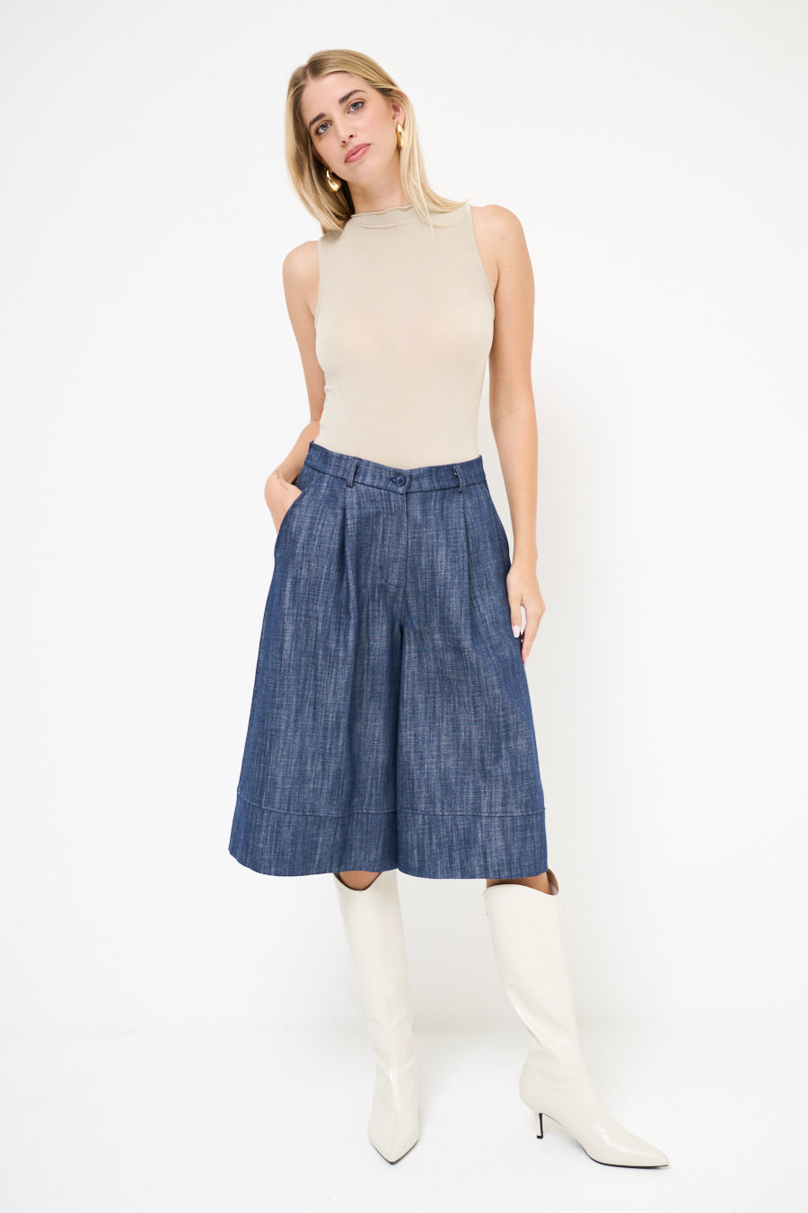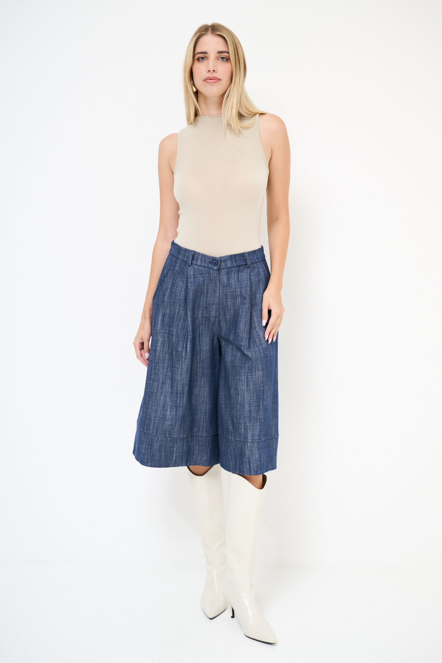 سراويل كولوت واسعة الساق في النسيج الدنيم ذي النسيج بالجملة