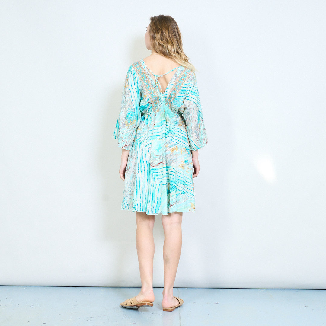 فستان ميدي مطبوع مع خط عنق على الحدود وخصر برباط بالجملة