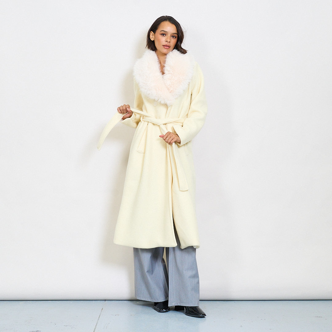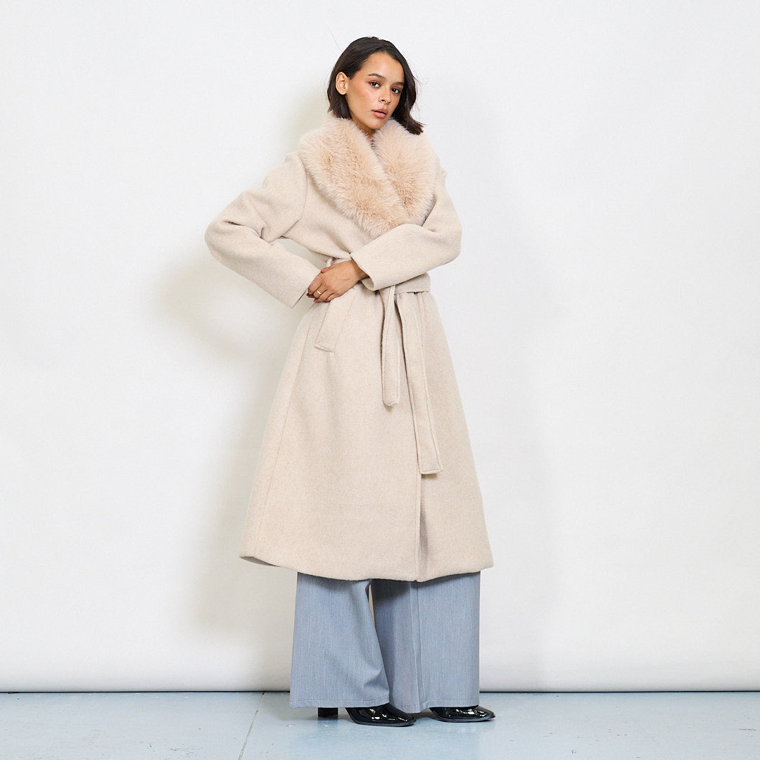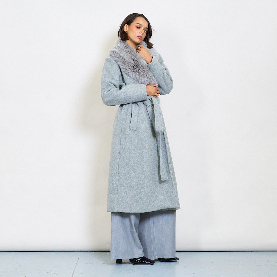 - صورة ظلية طويلة الأنيقة مع نسيج ناعم من الصوف