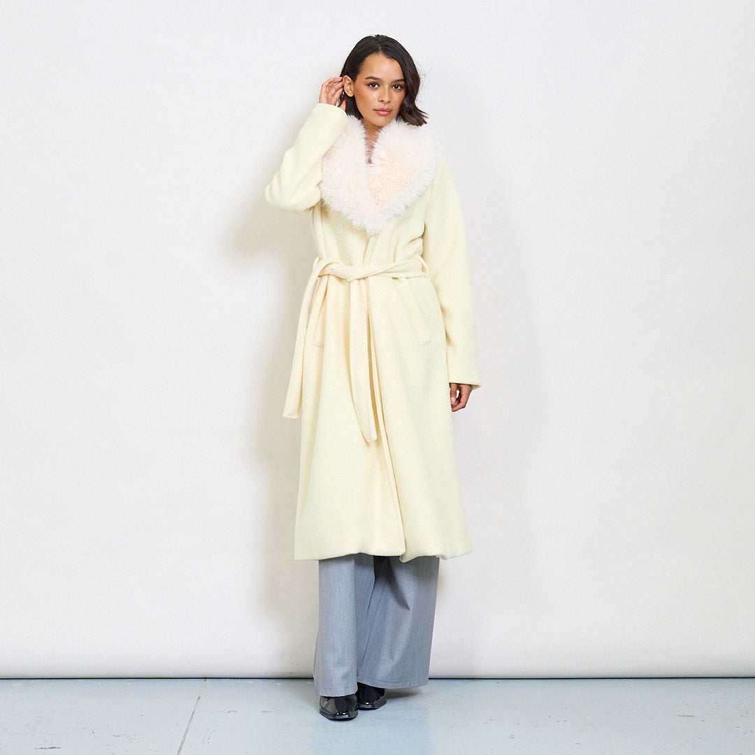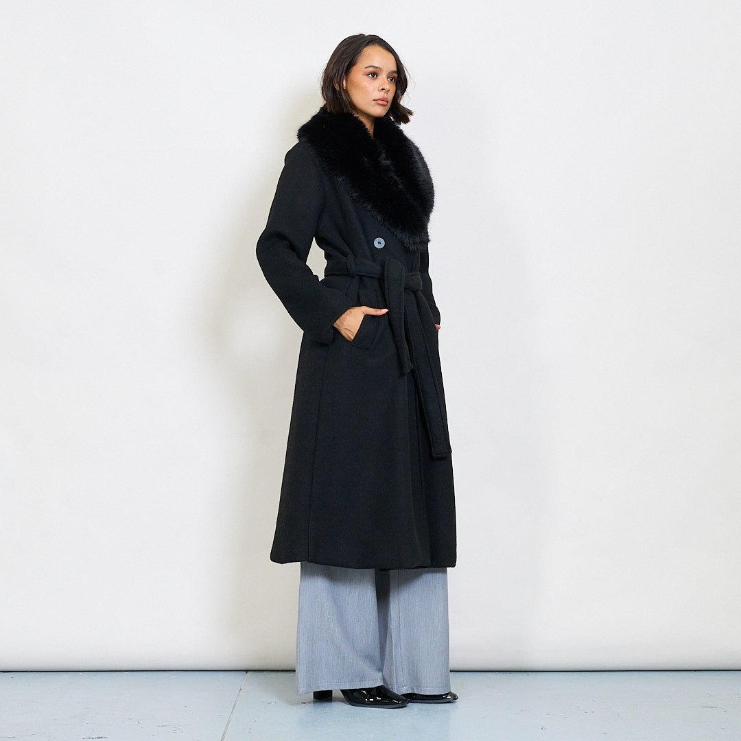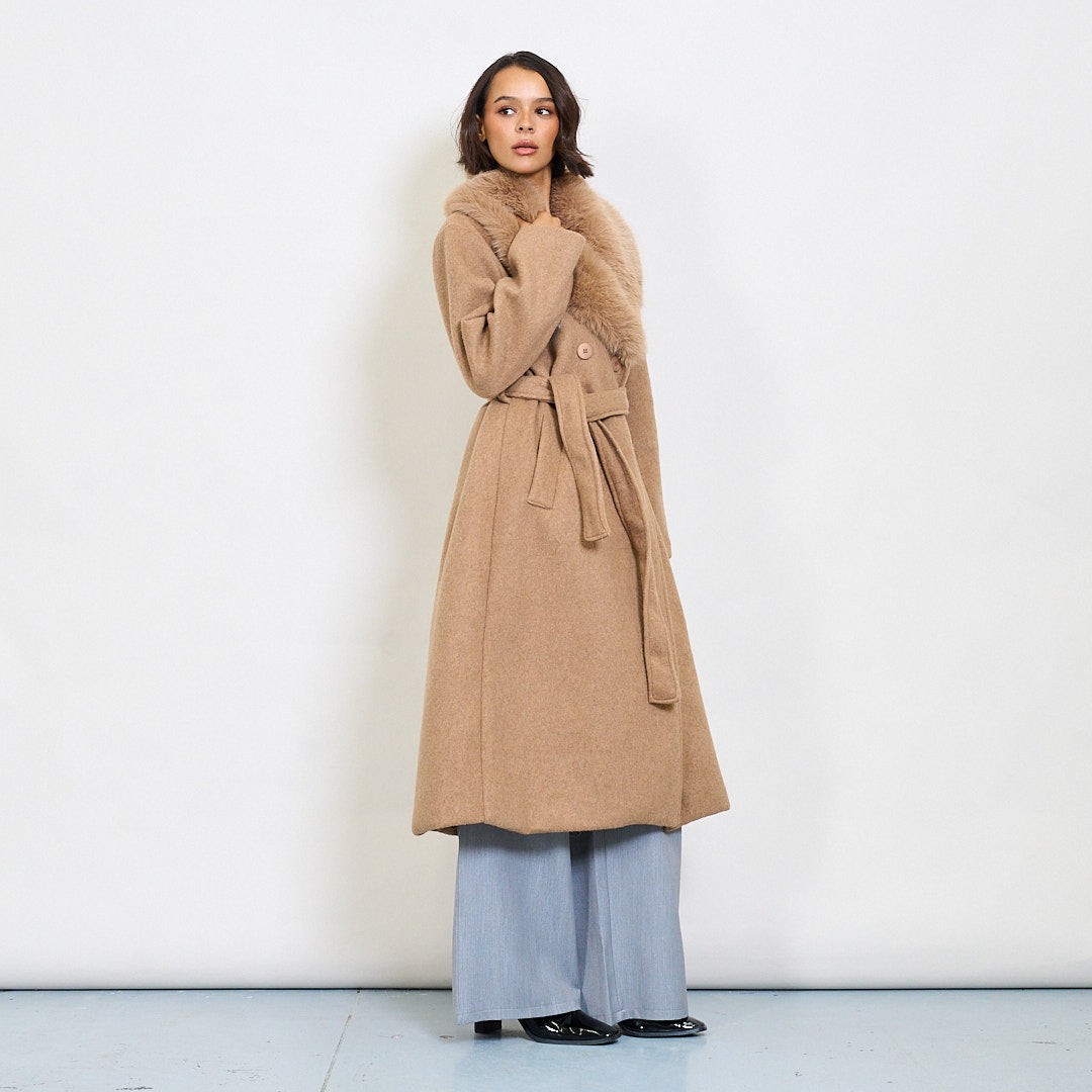 - صورة ظلية طويلة الأنيقة مع نسيج ناعم من الصوف