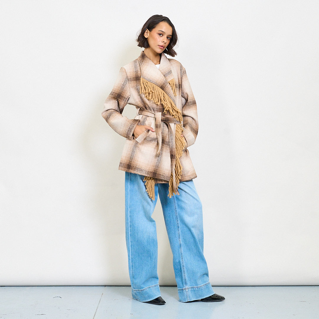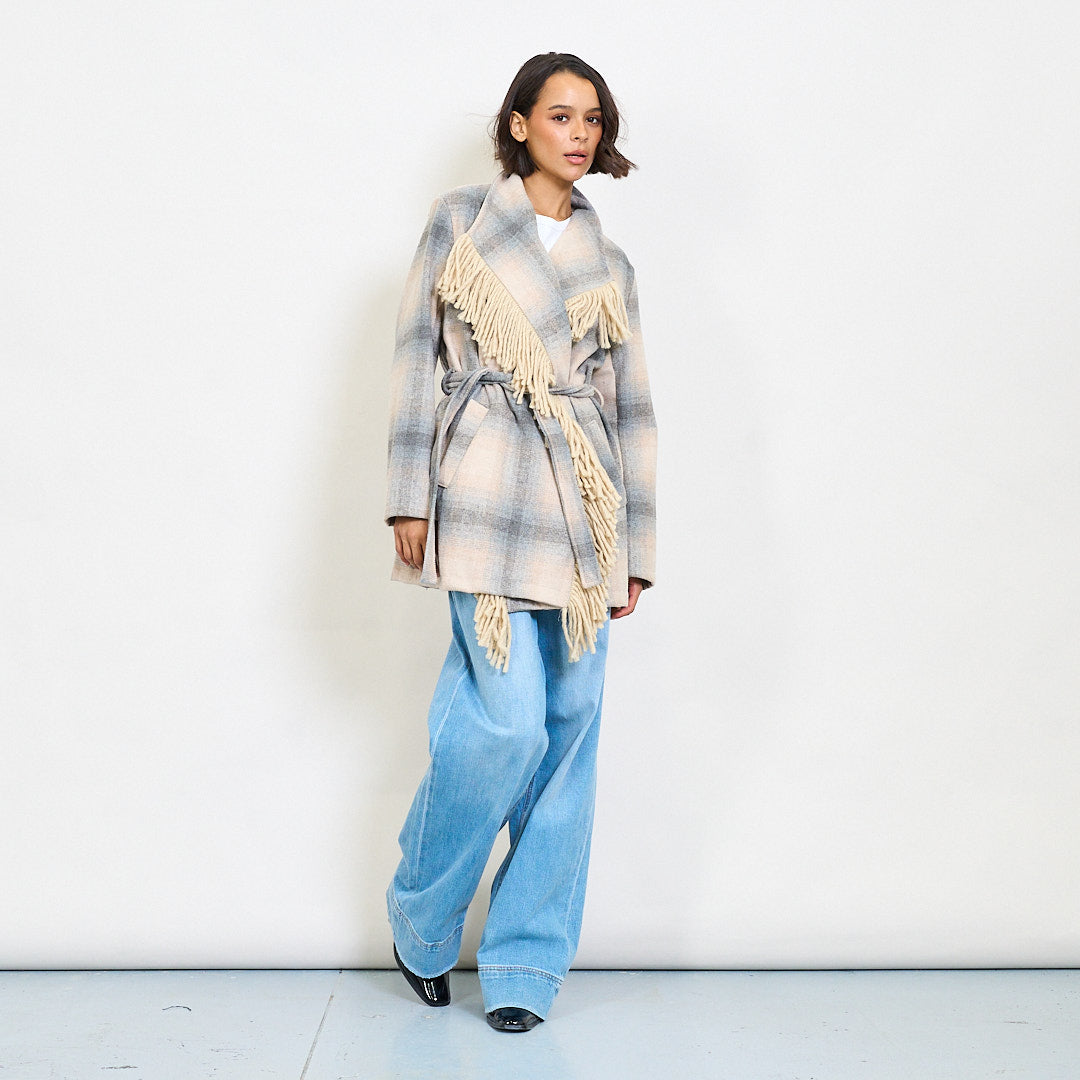 معطف ملفوف من منقوشة مع طوق شال هام بالجملة