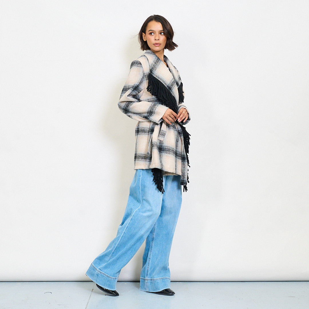 - بيان منقوشة معطف ملفوف مع طوق شال عريض