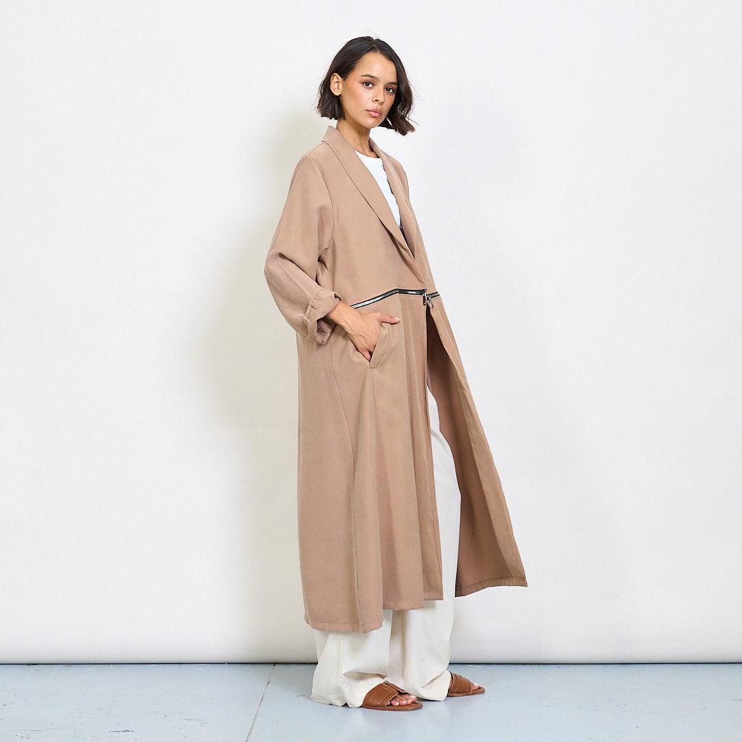 مفتوح من كارديجان طويل الخطوط الطويلة مع طوق شال وربط التفاصيل بالجملة