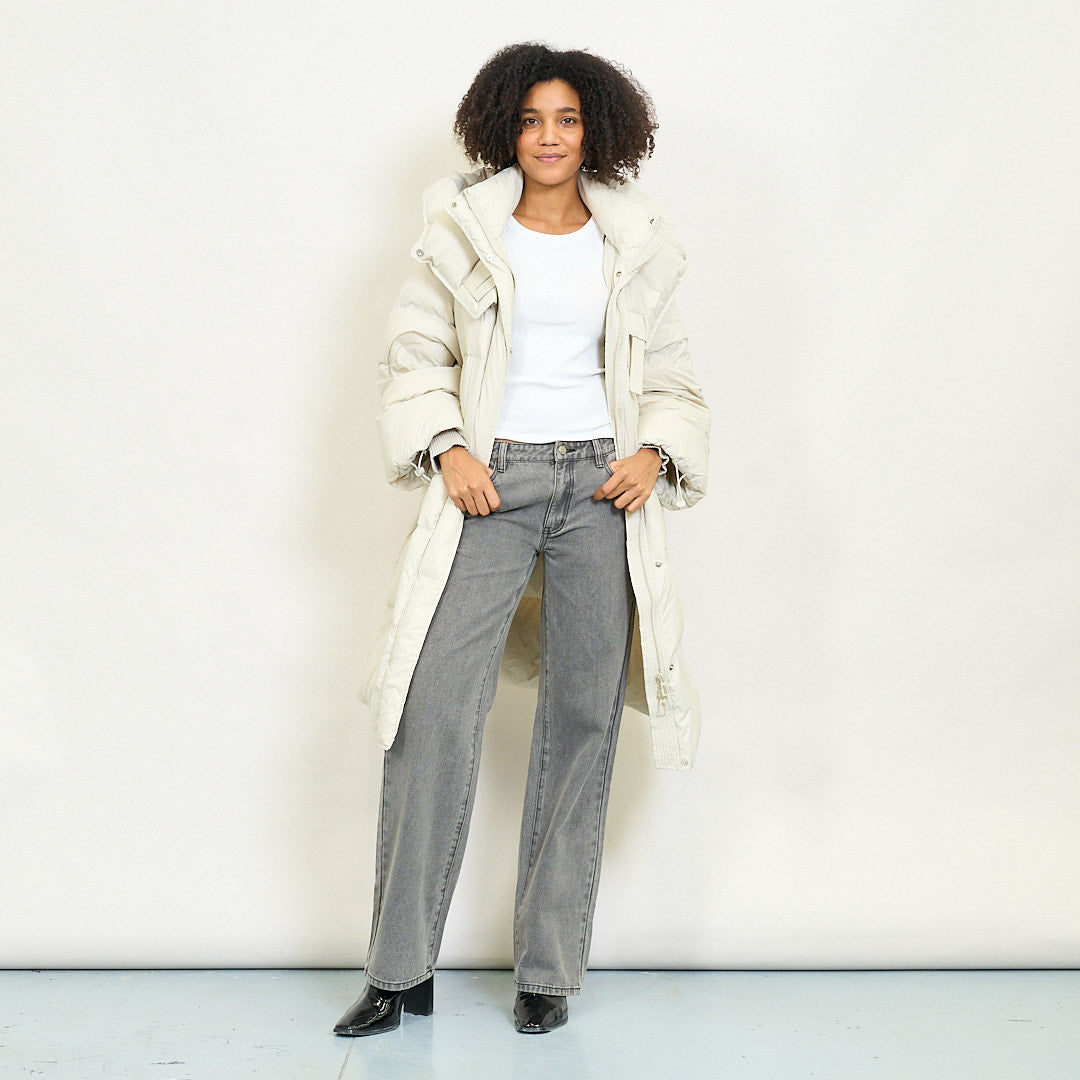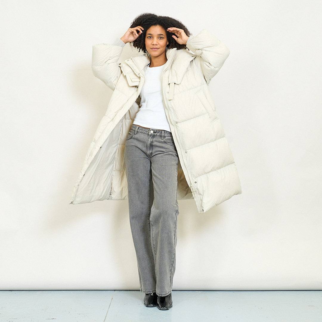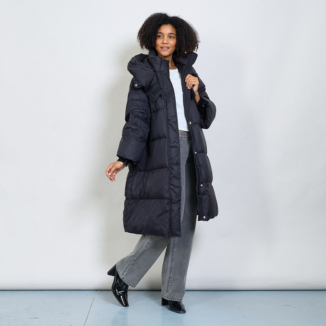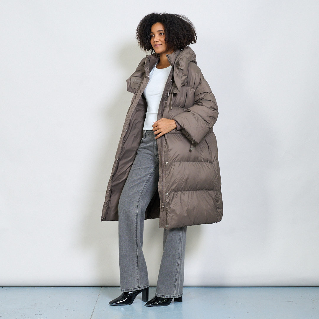 معطف منتفخ طويل مبطن مع غطاء محرك السيارة بالجملة