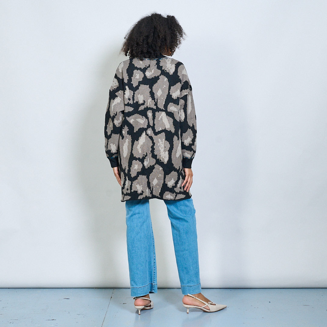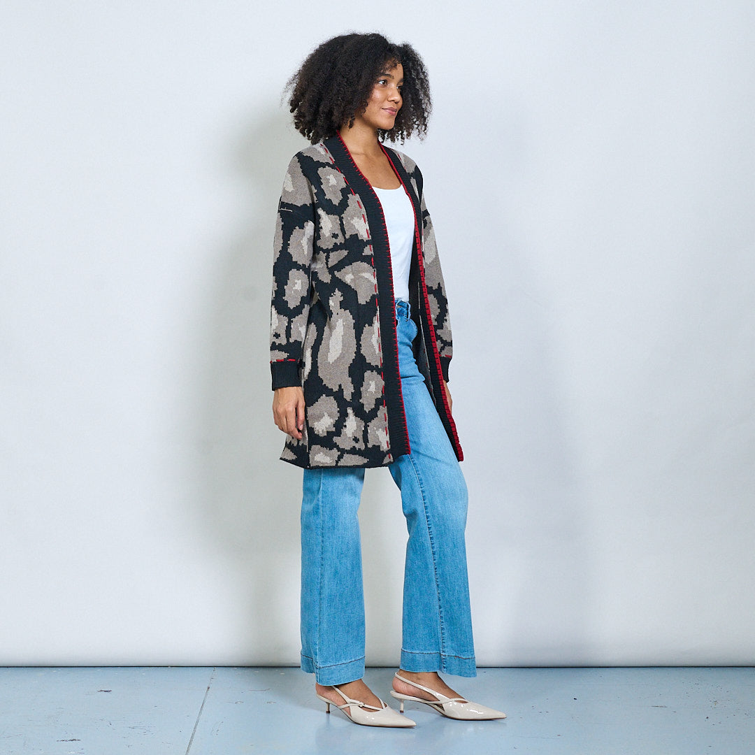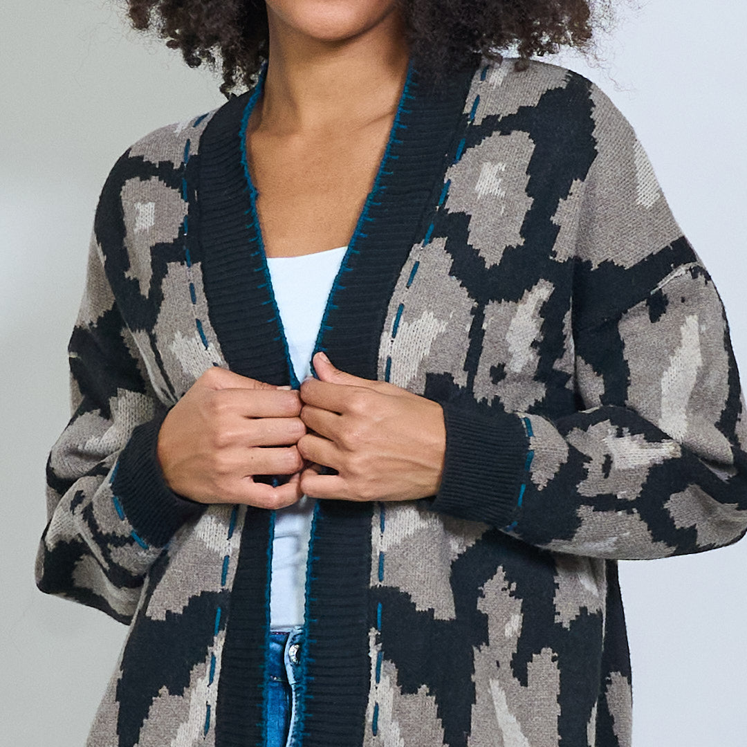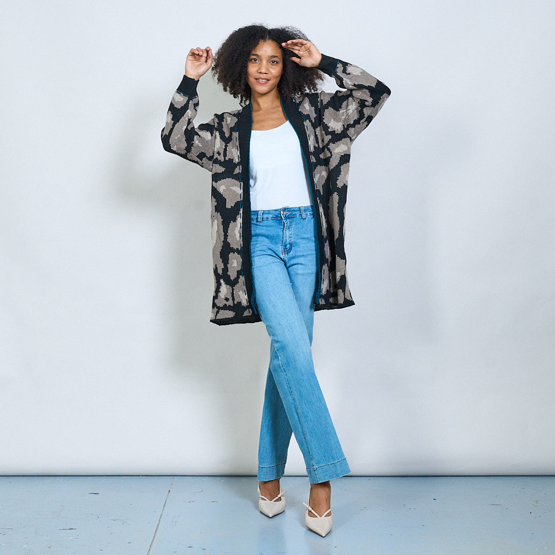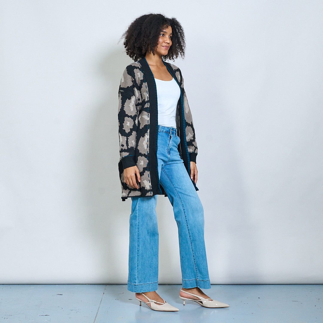 Open front abstract patterned long cardigan wholesale