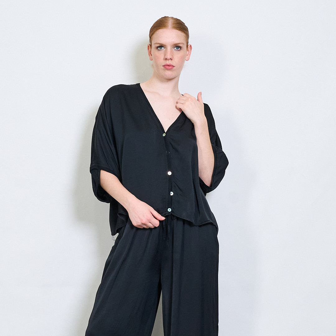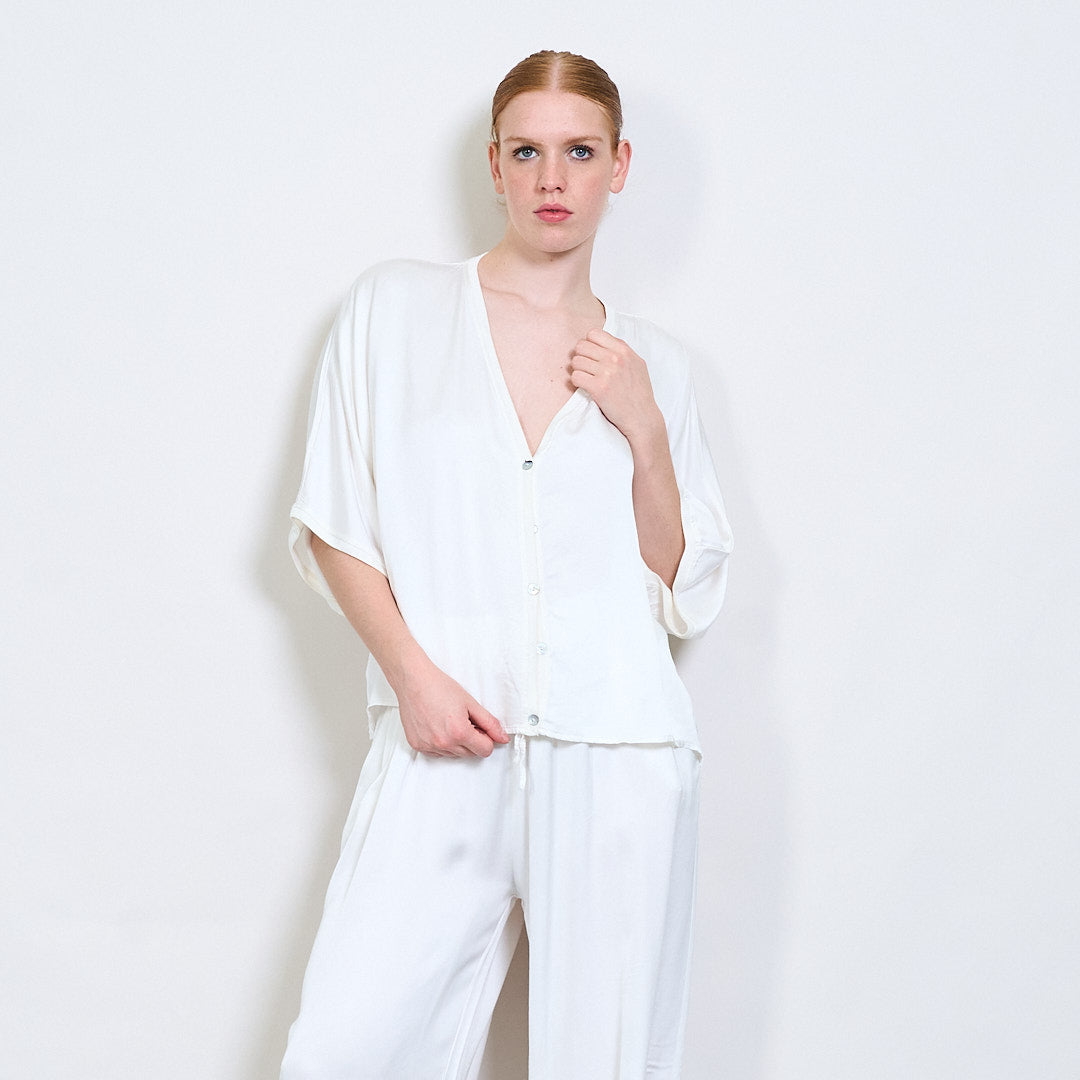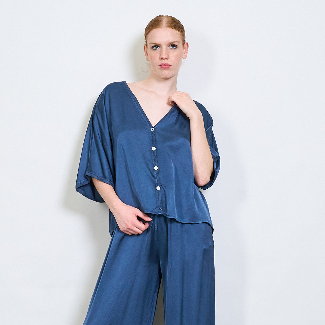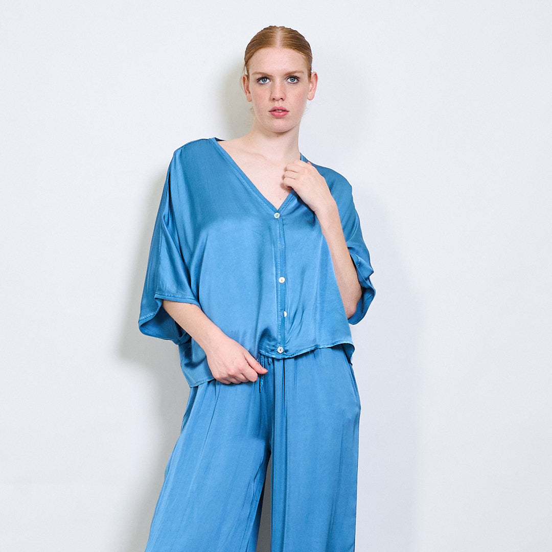 استرخاء Batwing Button Button-Down Rayon Blouse بالجملة