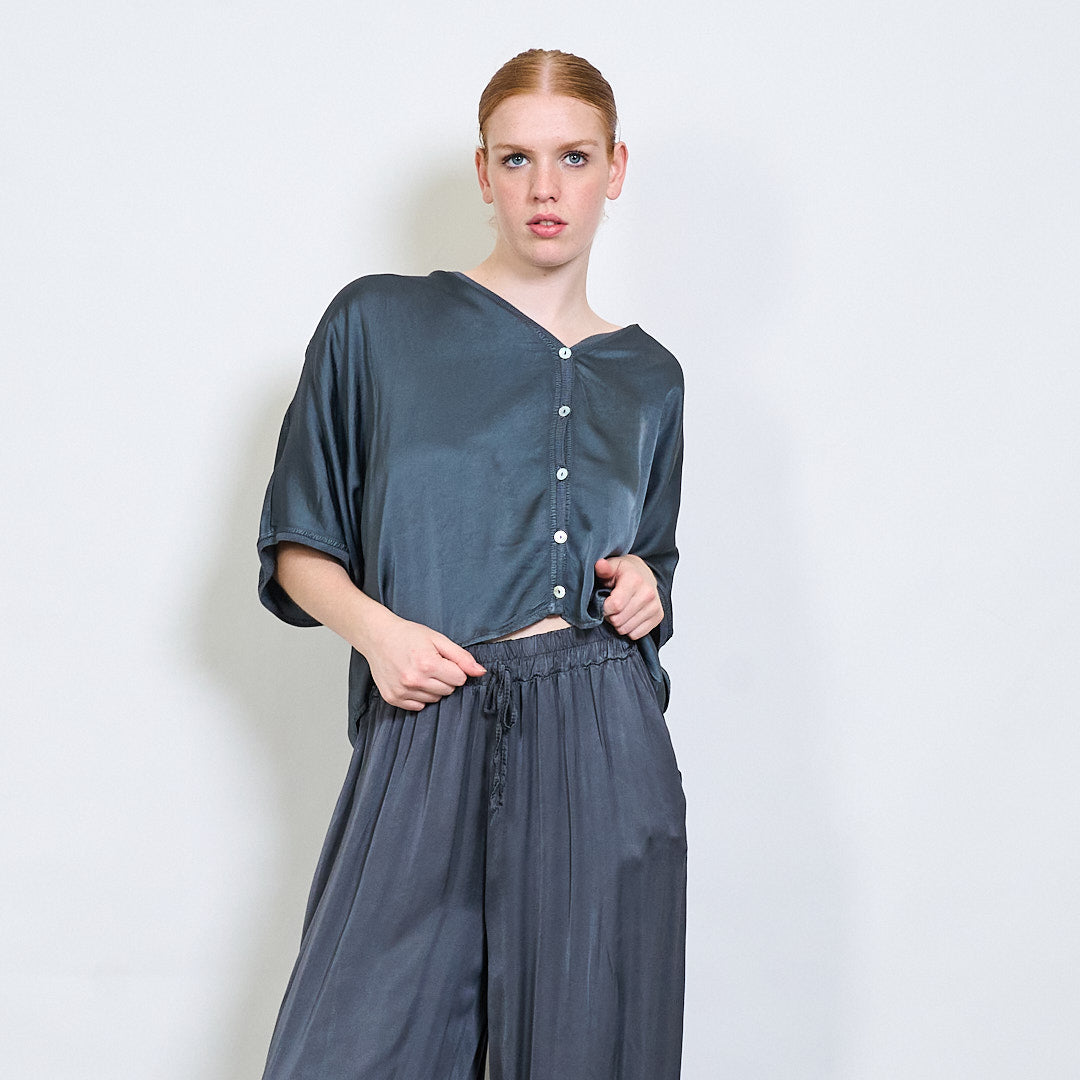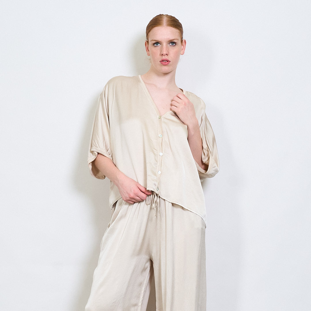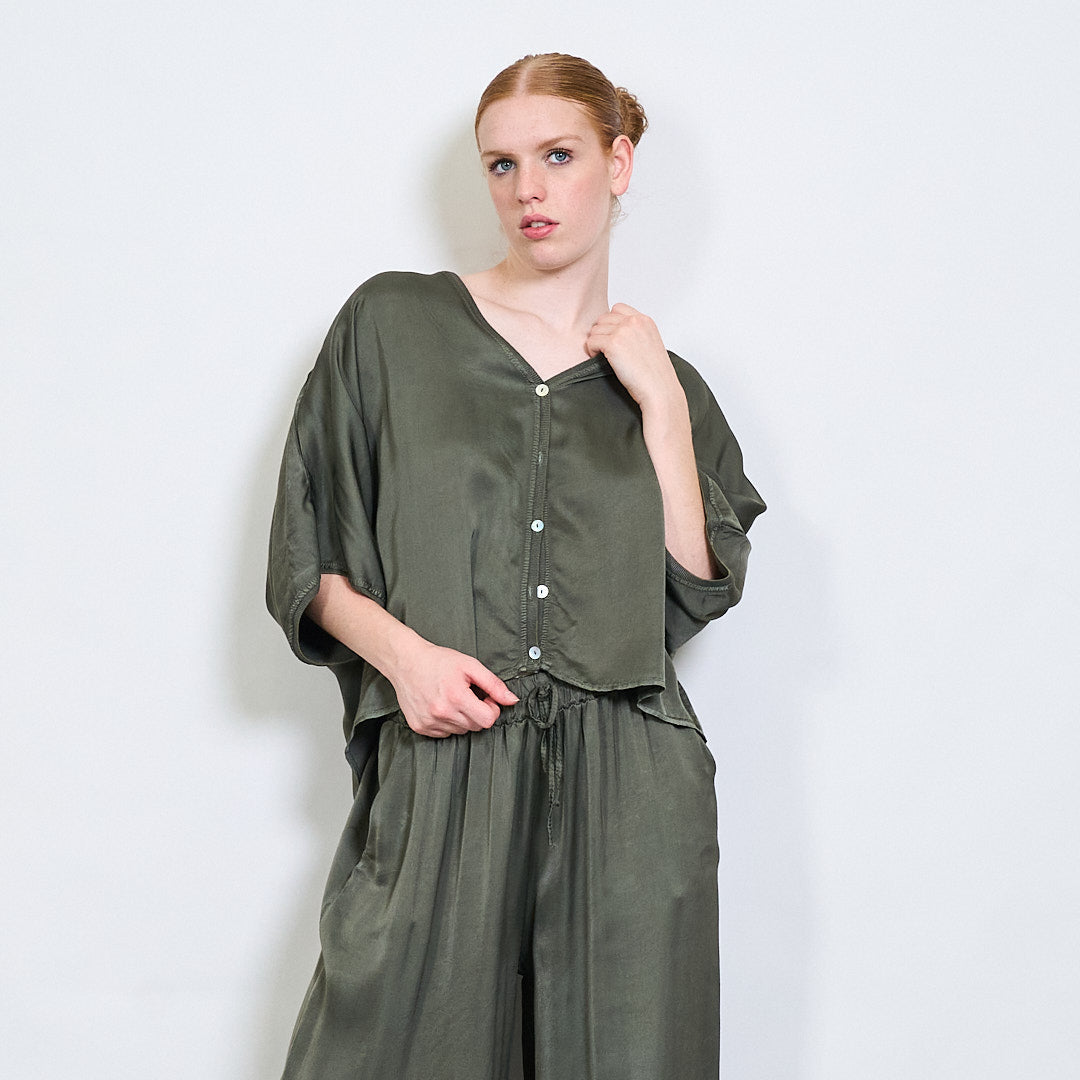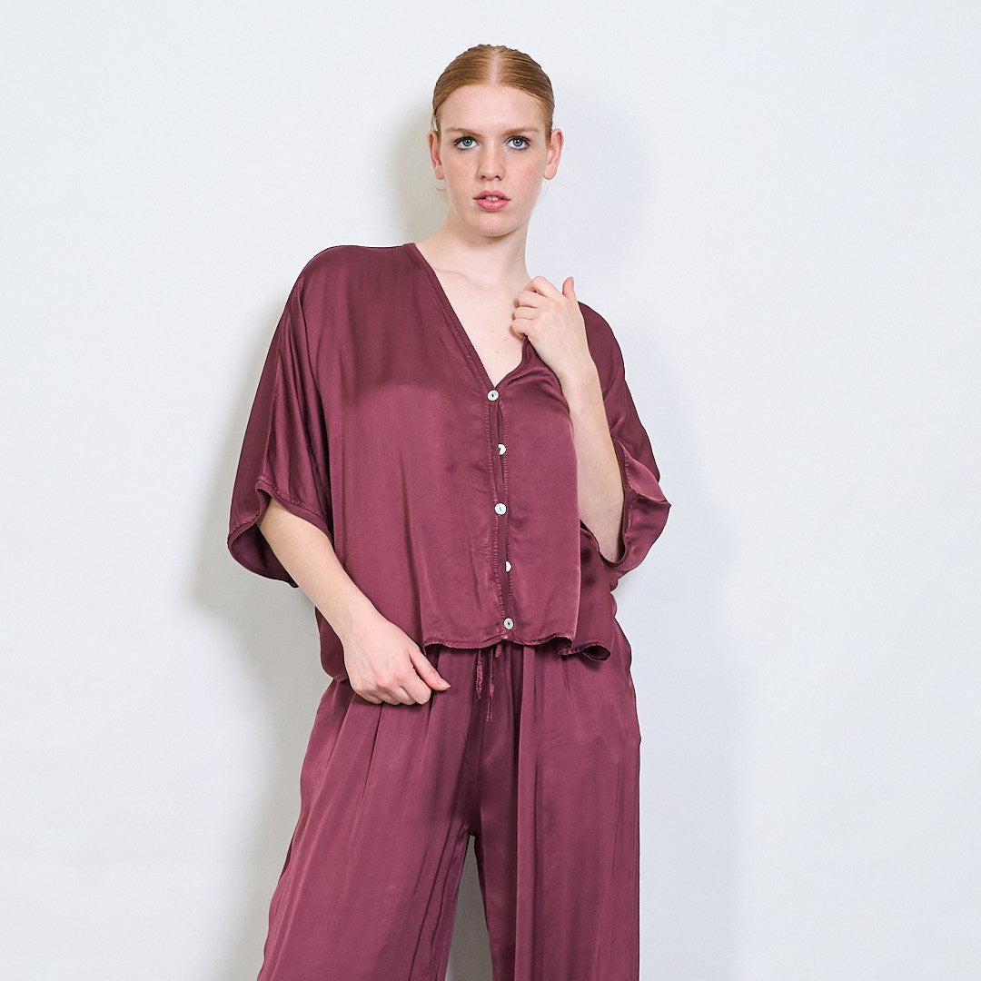 استرخاء Batwing Button Button-Down Rayon Blouse بالجملة