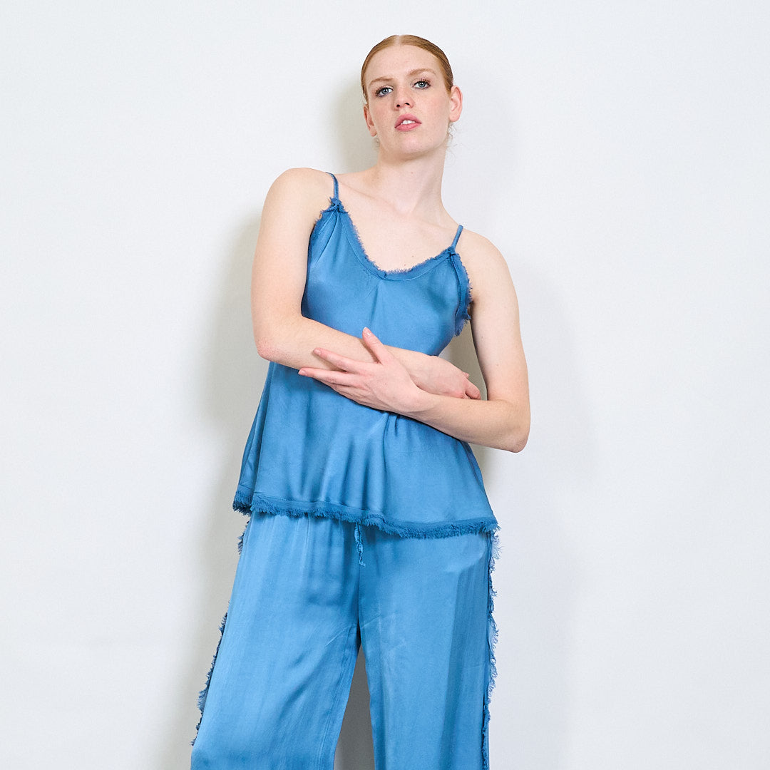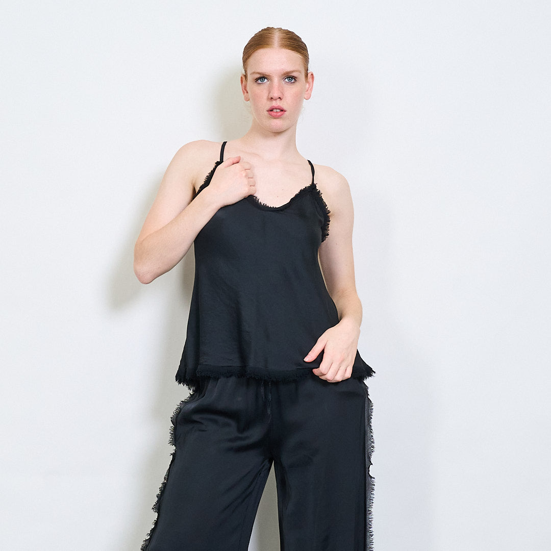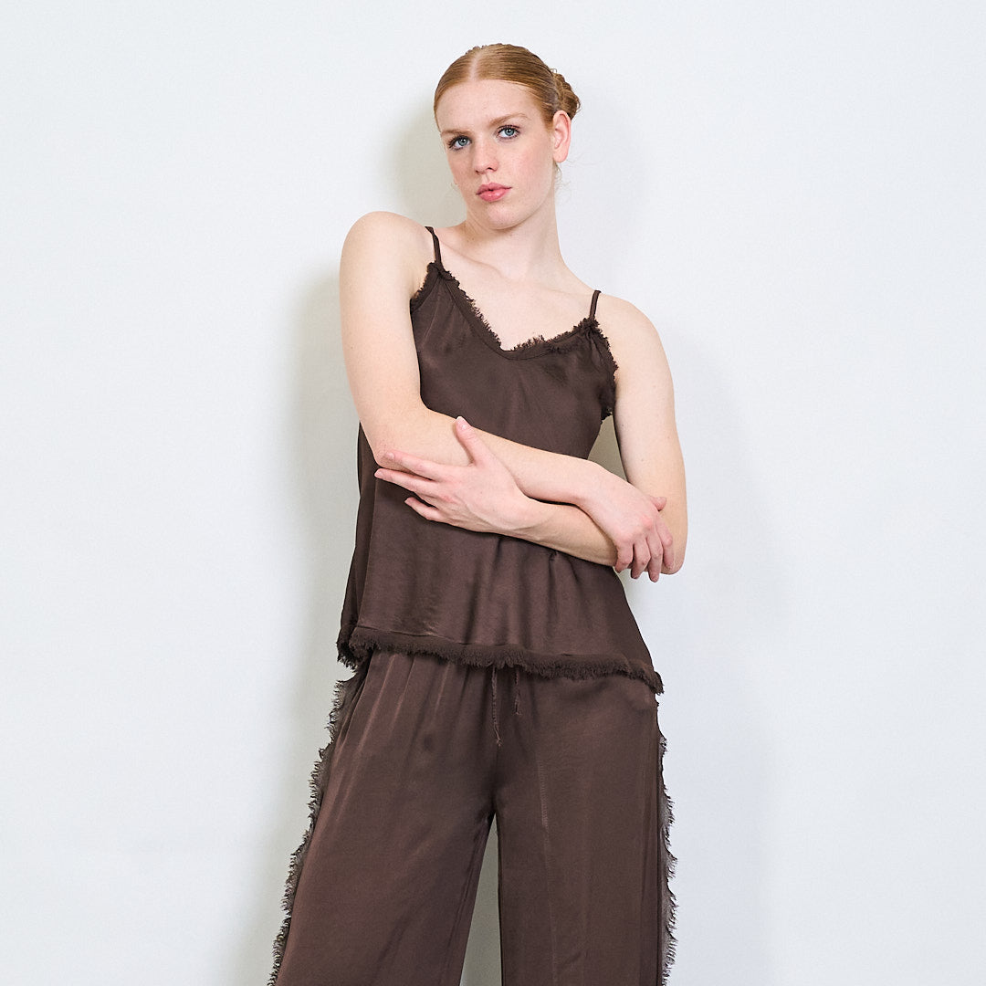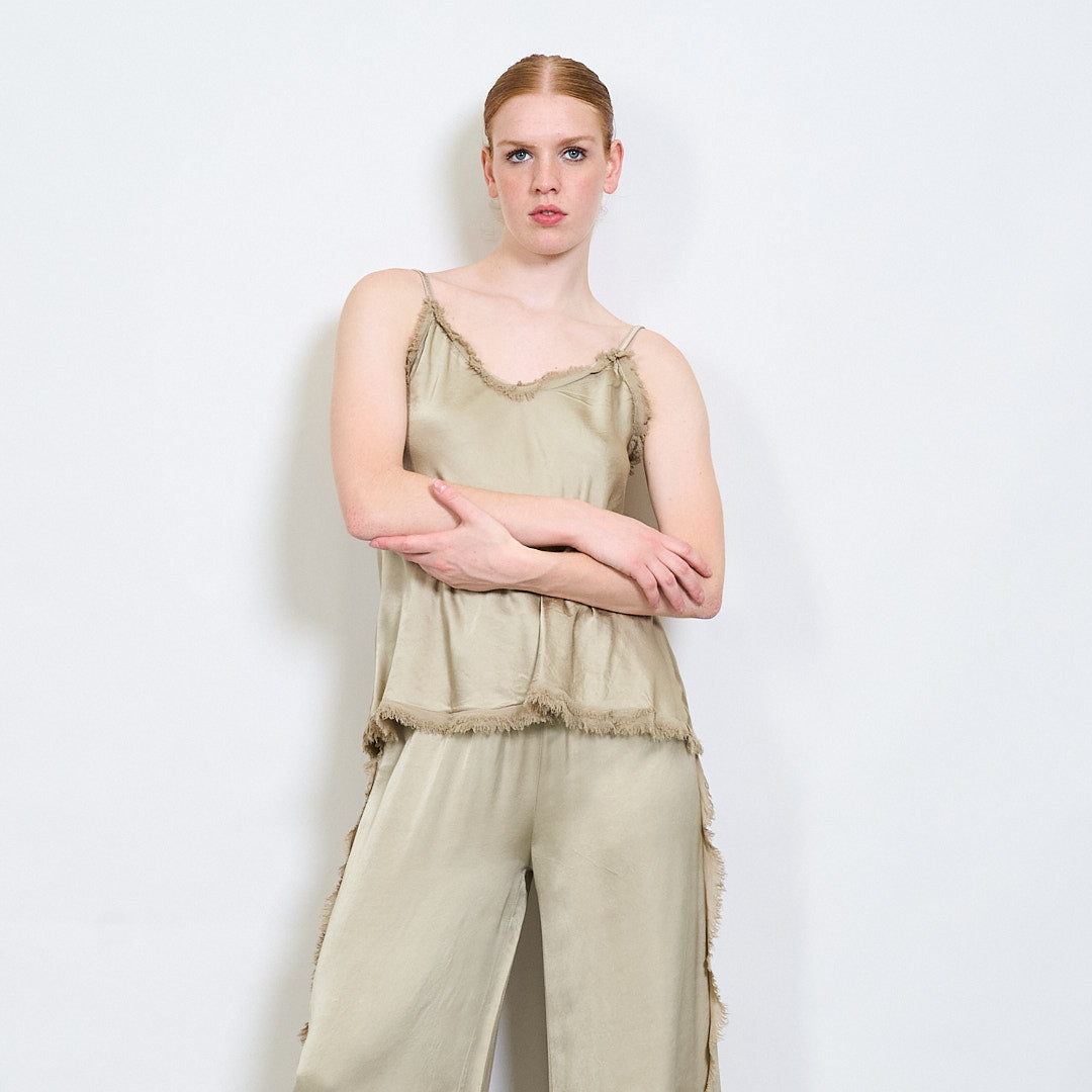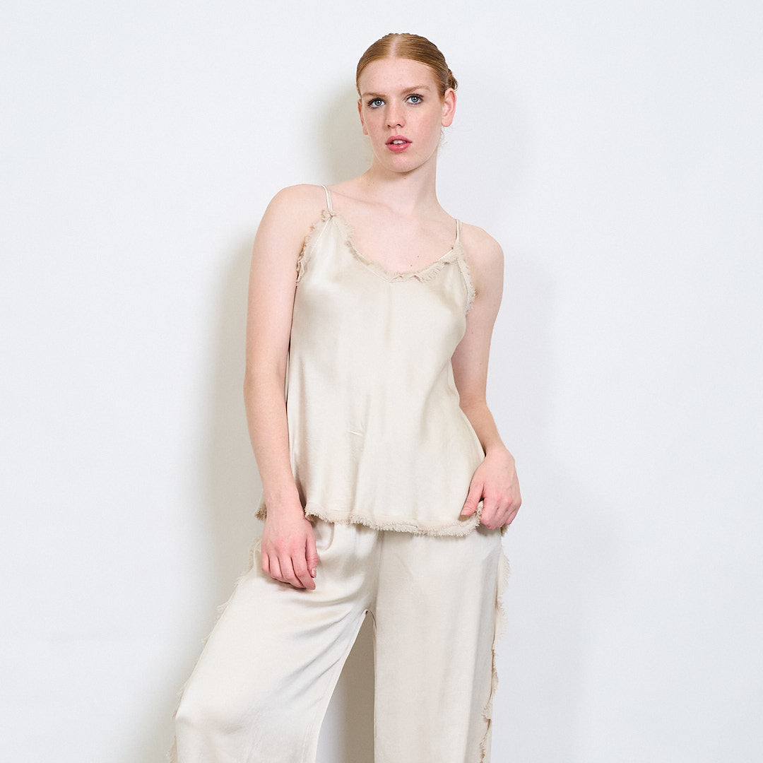 ساتان كاميسول مع تفاصيل الحافة الخام بالجملة