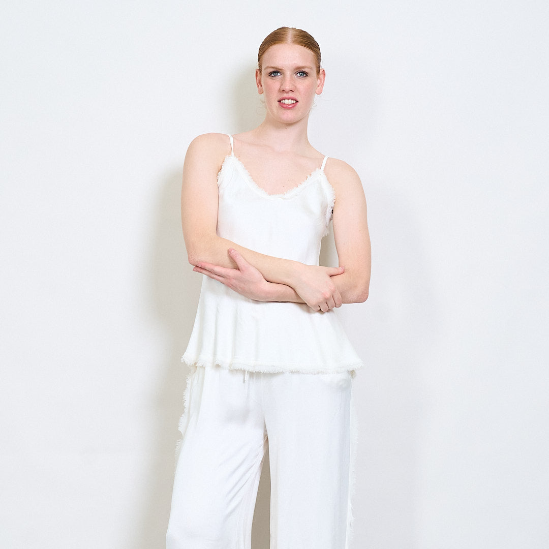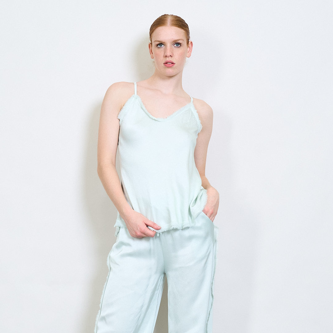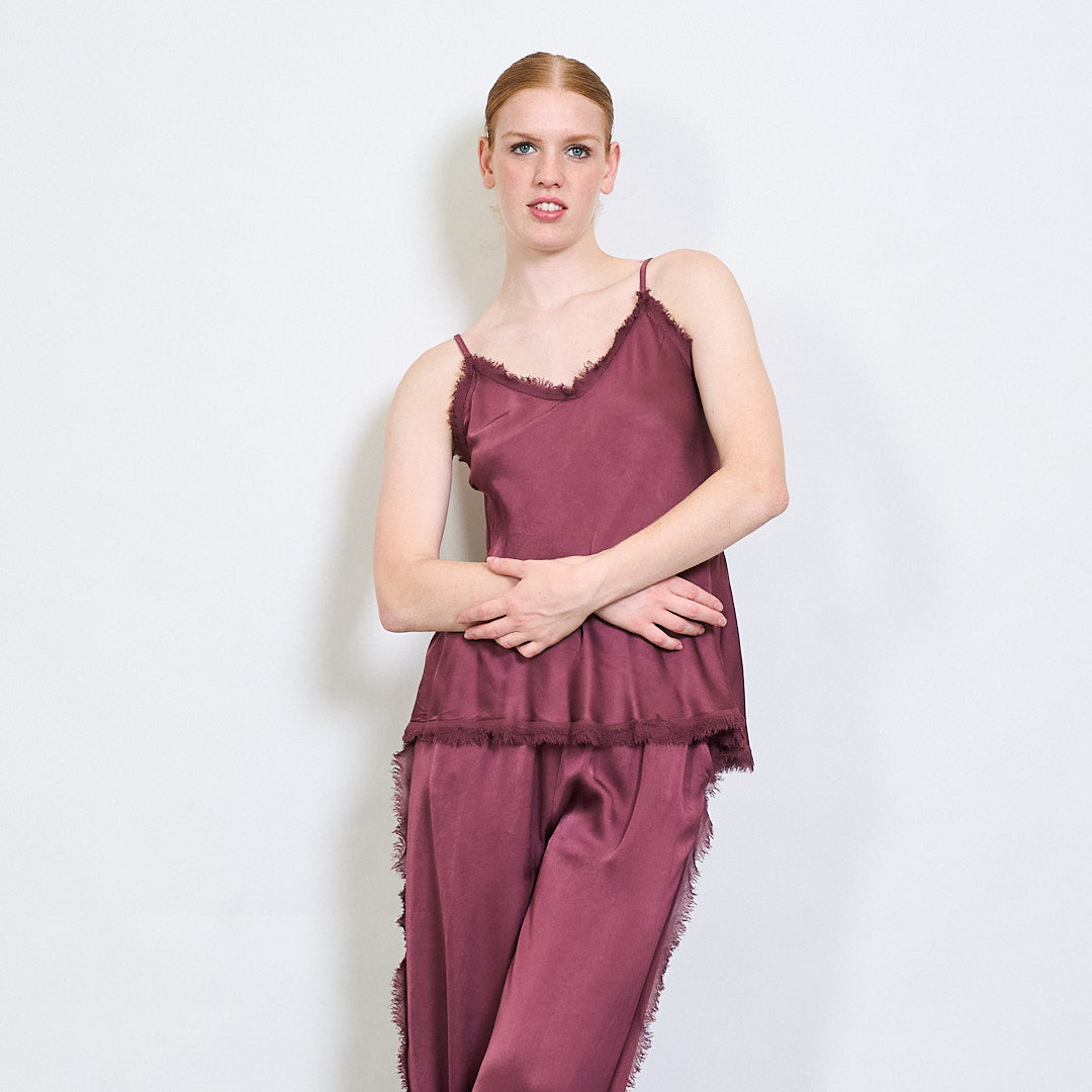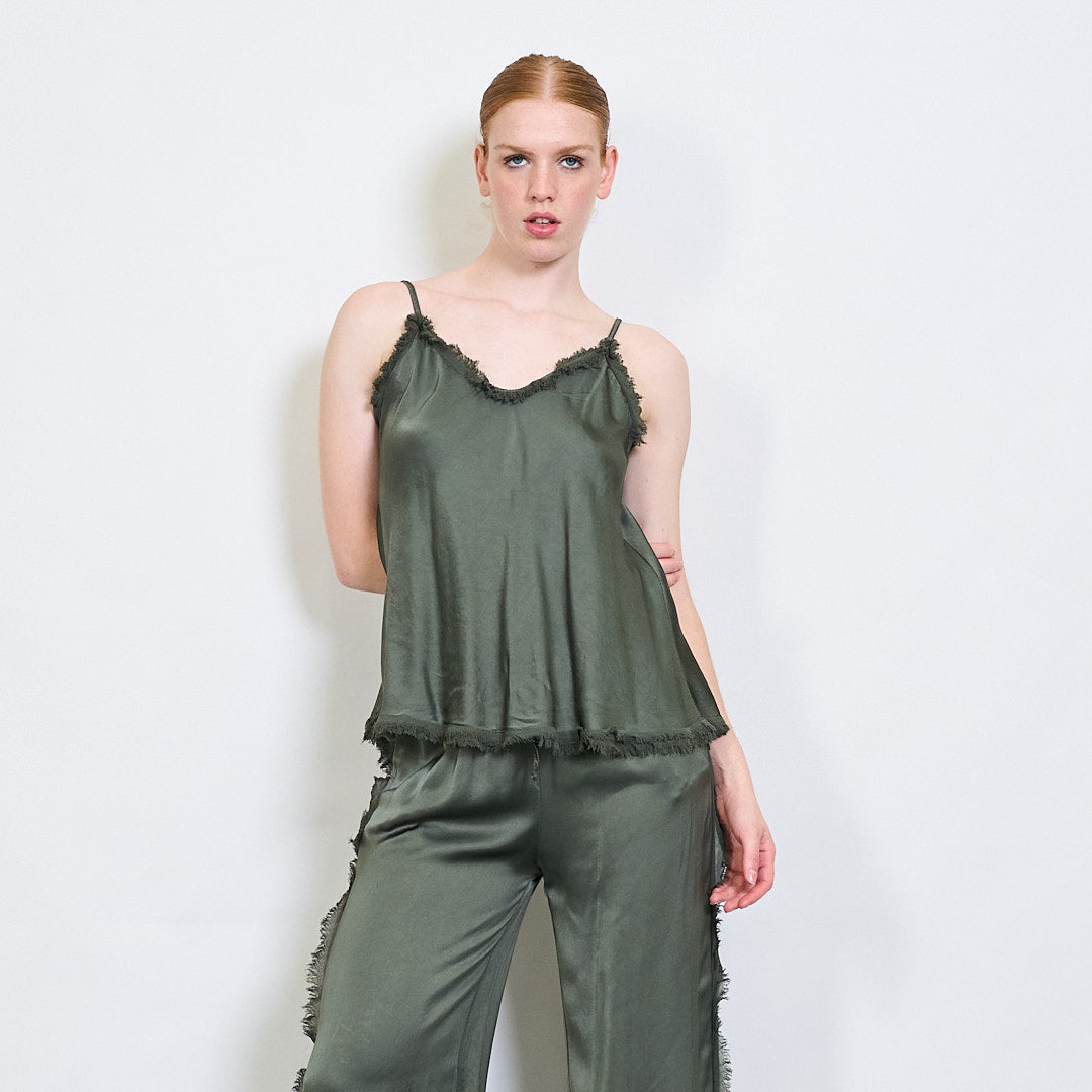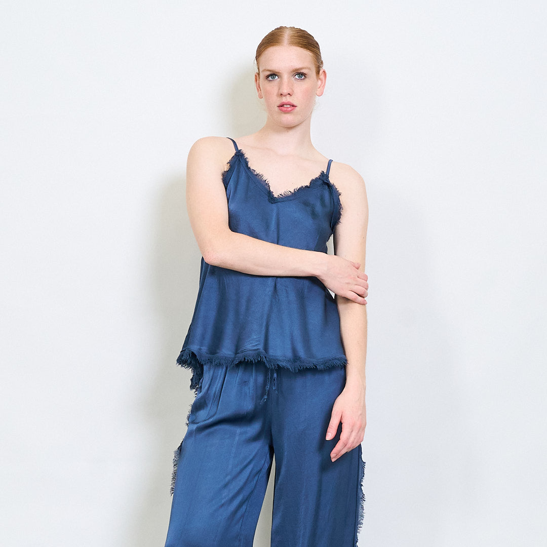 ساتان كاميسول مع تفاصيل الحافة الخام بالجملة