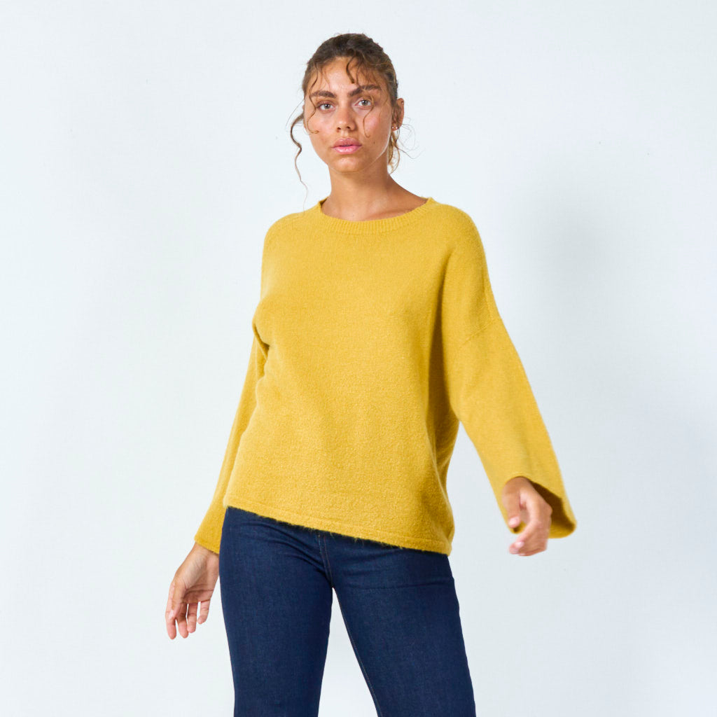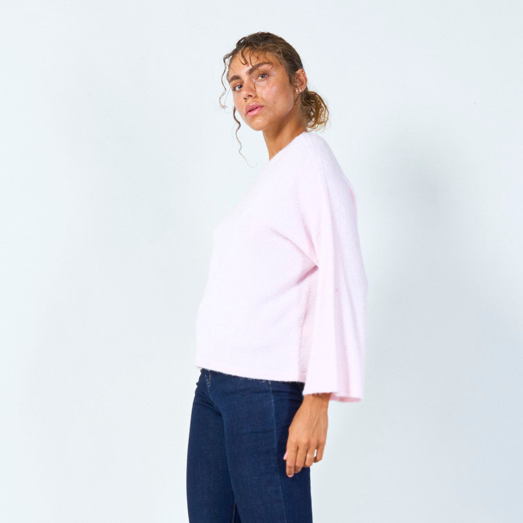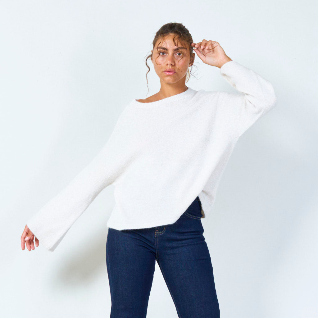 - أكمام طويلة مع كتف منسدل قليلاً لمظهر عصري