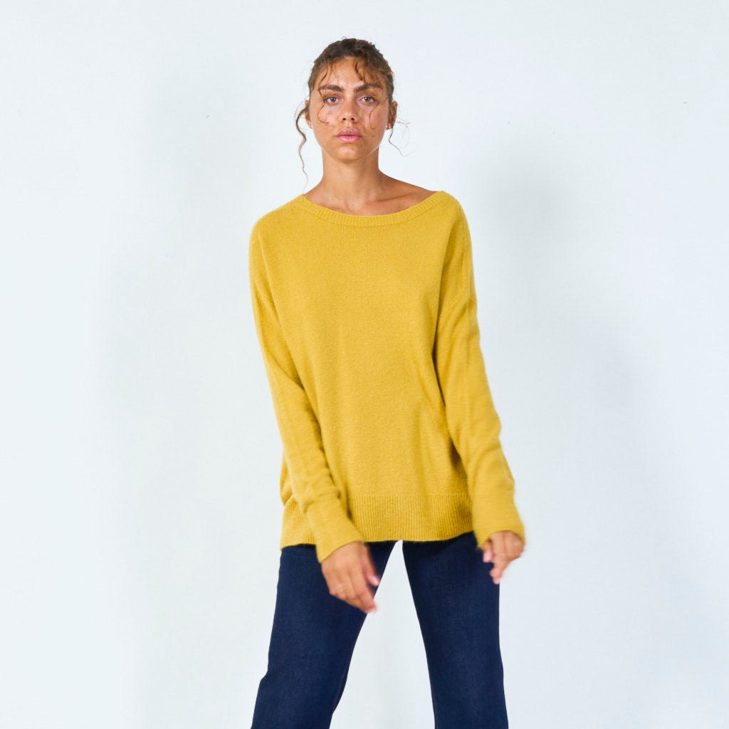سترة متماسكة ناعمة برقبة القارب بالجملة