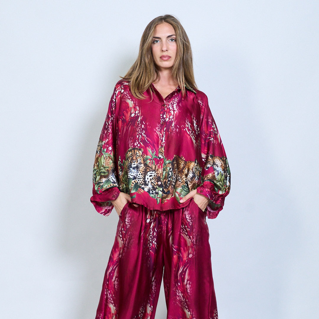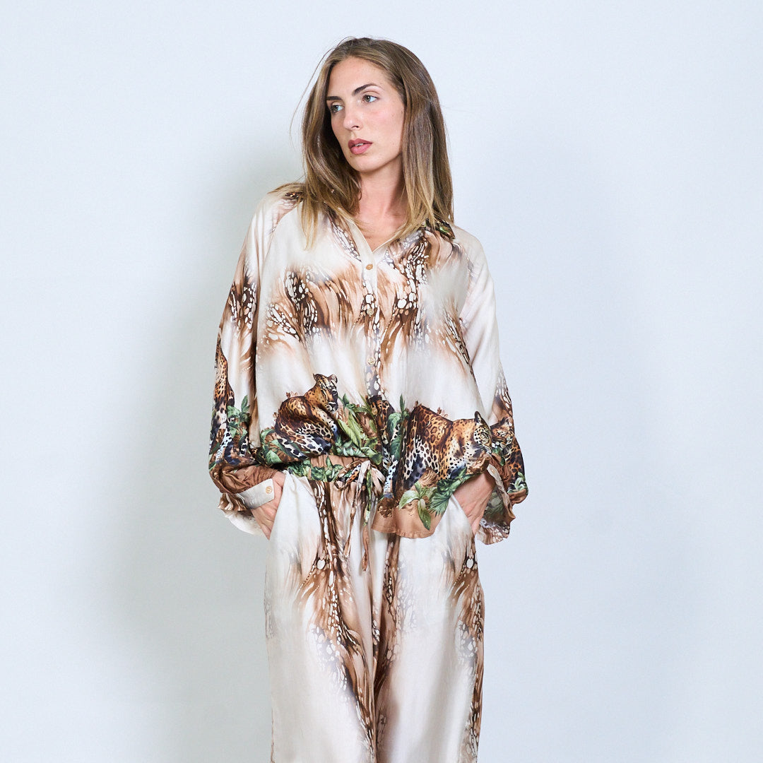 قميص ساتان لأسفل مع طباعة الفهد في الغابة بالجملة