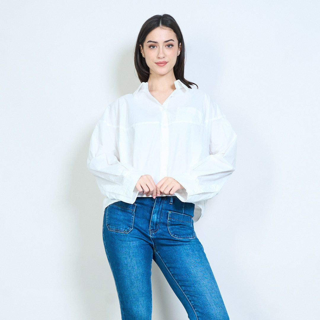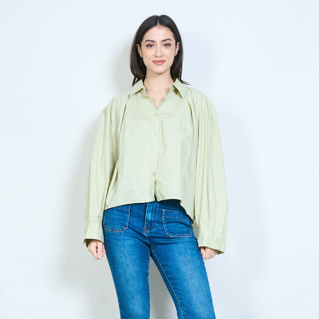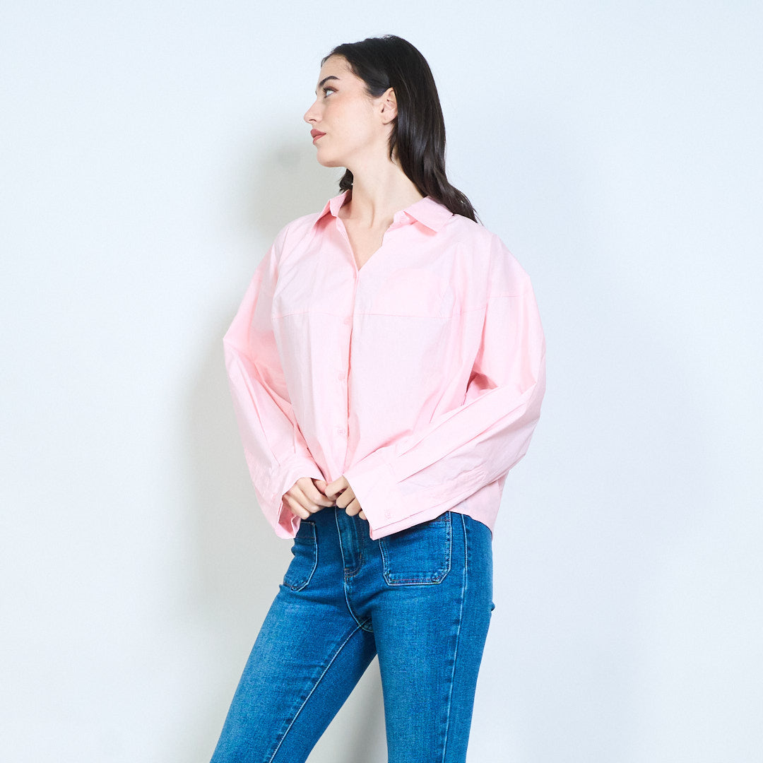 - ياقة كلاسيكية مع زر إغلاق أمامي كامل