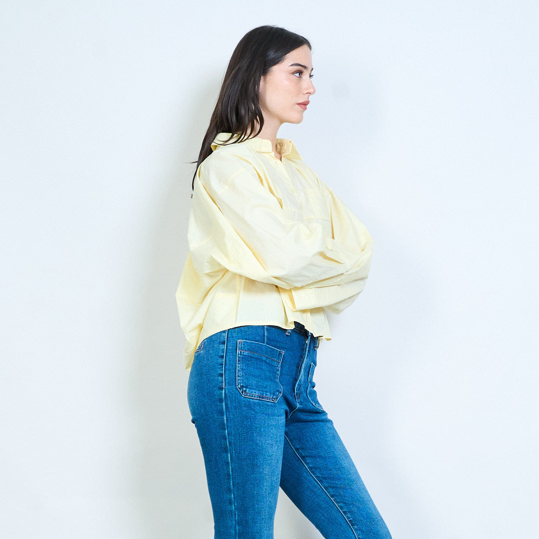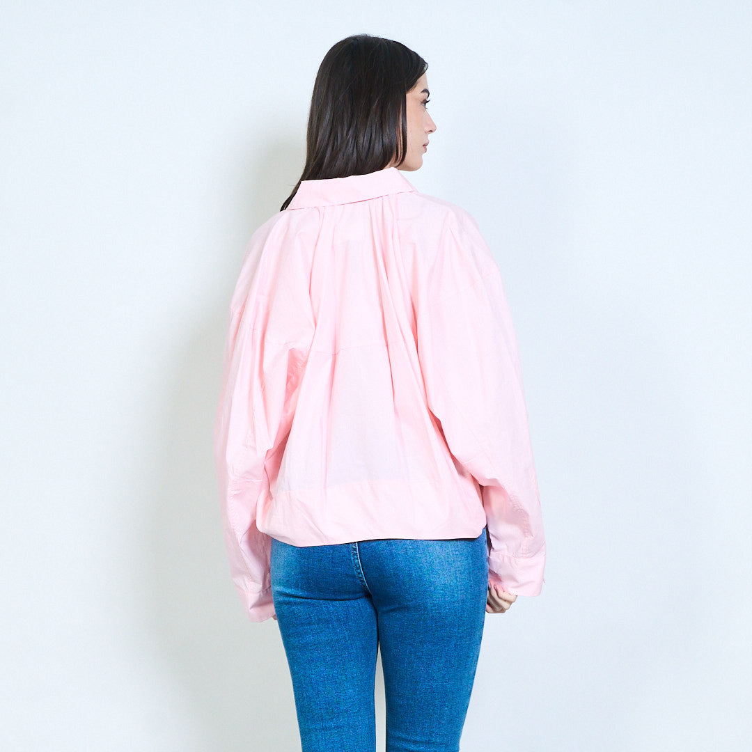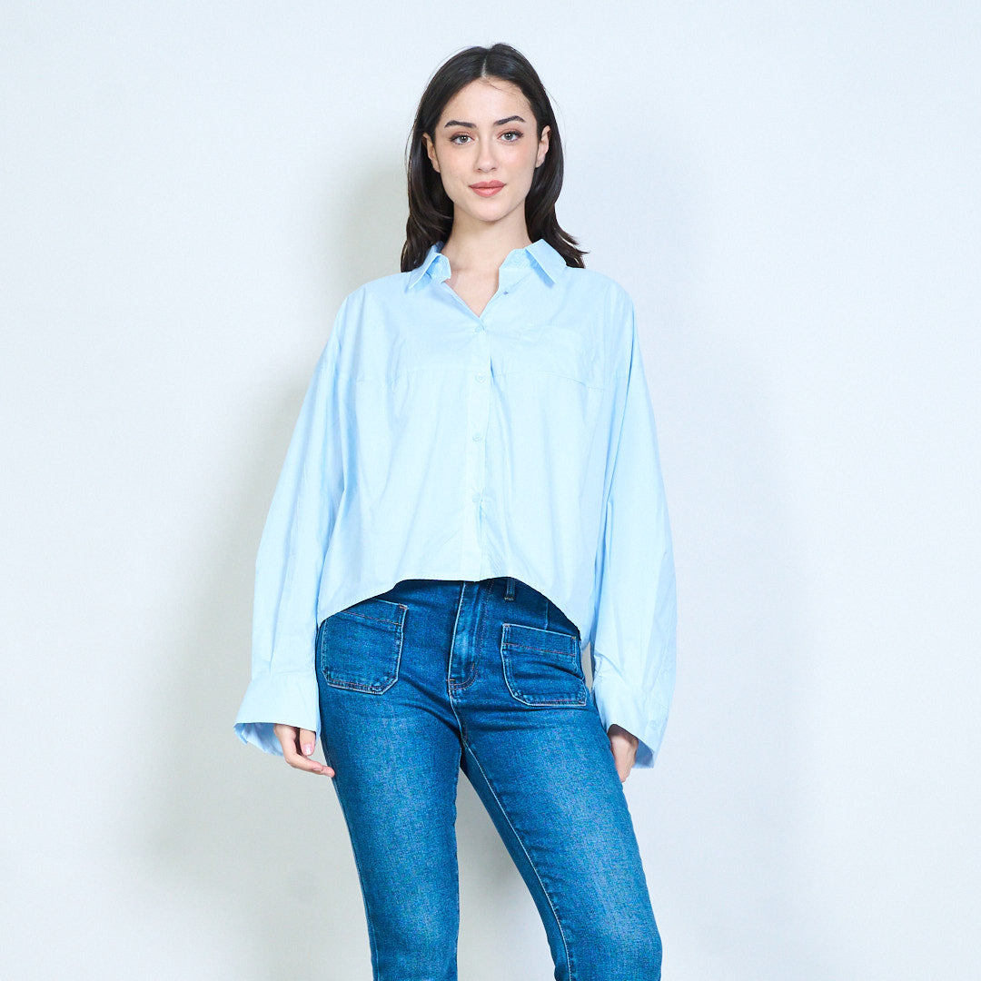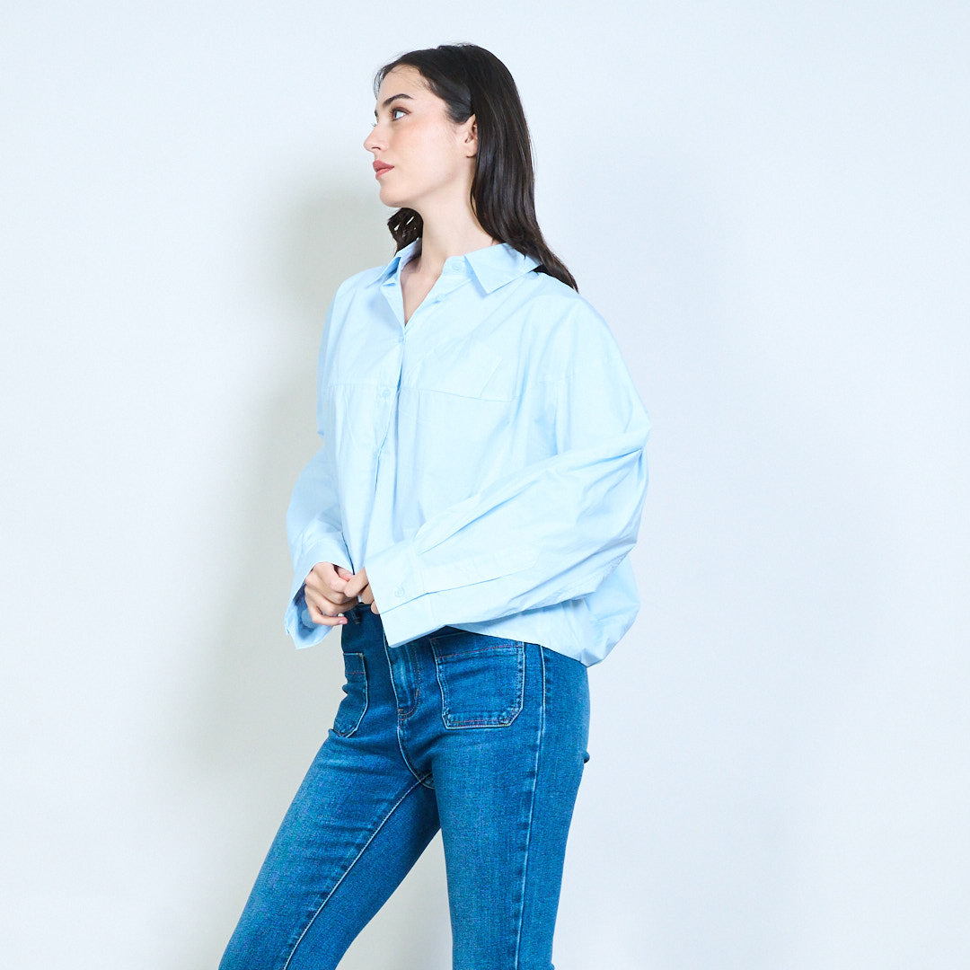 - ياقة كلاسيكية مع زر إغلاق أمامي كامل