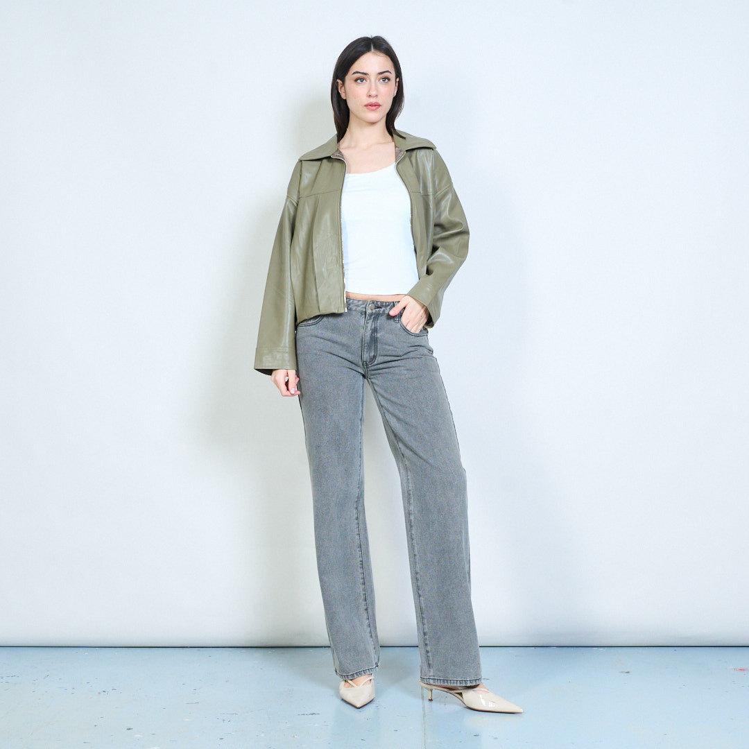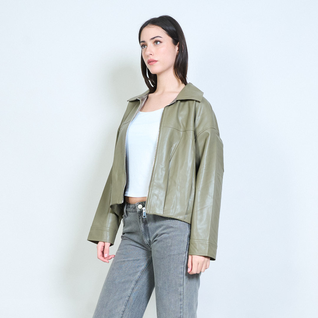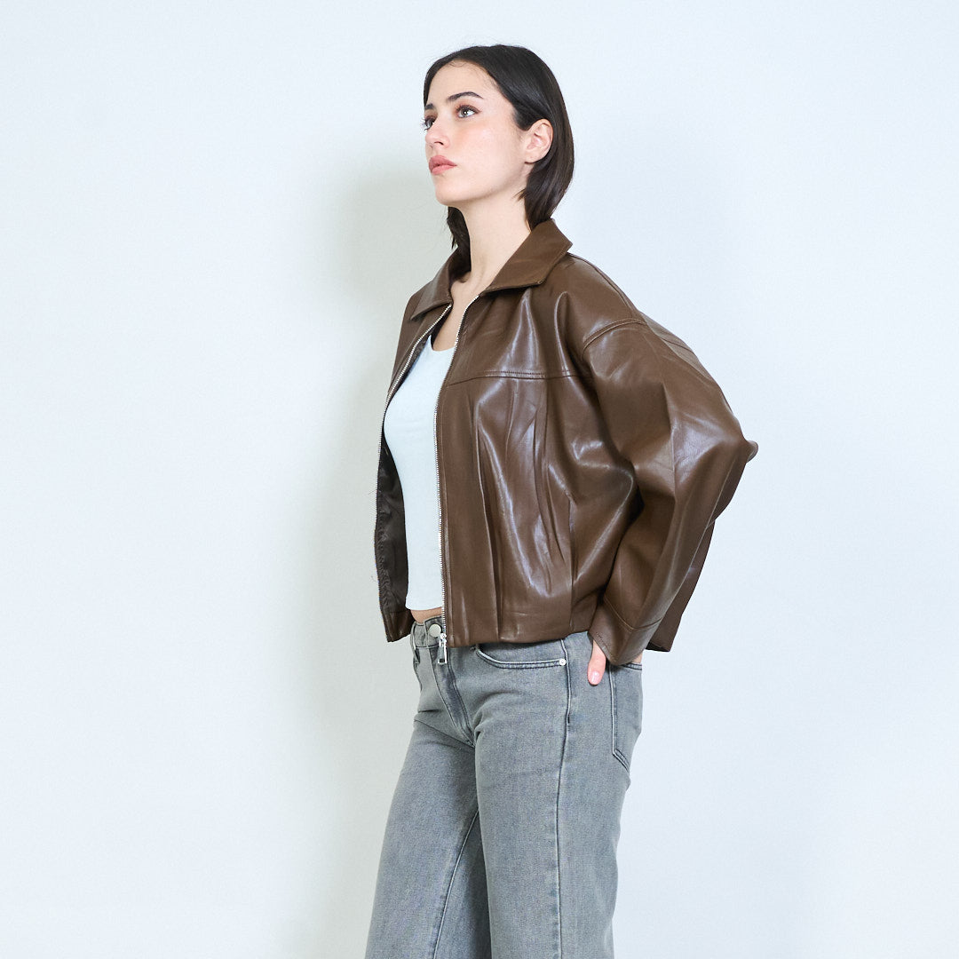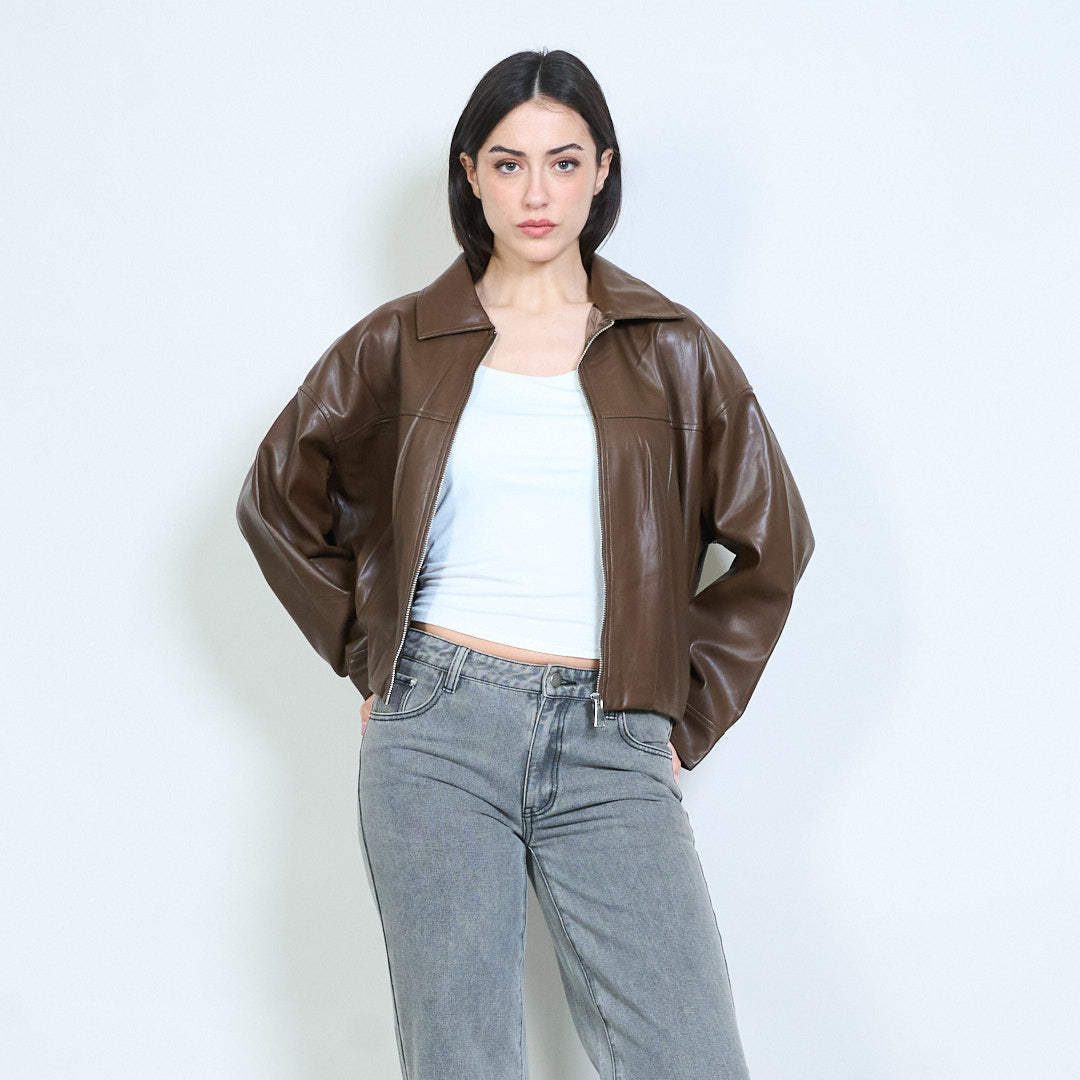 سترة جلدية مقصوصة بسحاب أمامي مُنظمة للبيع بالجملة