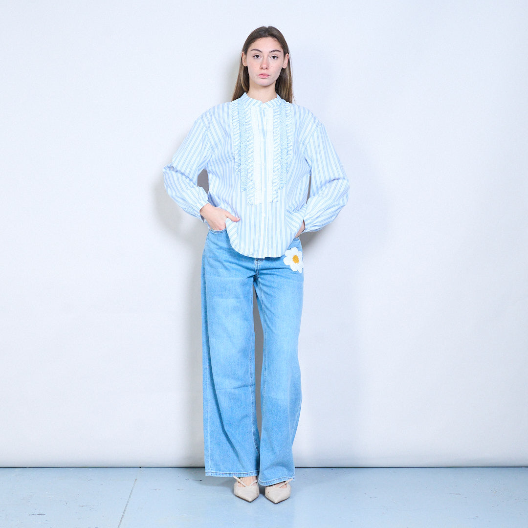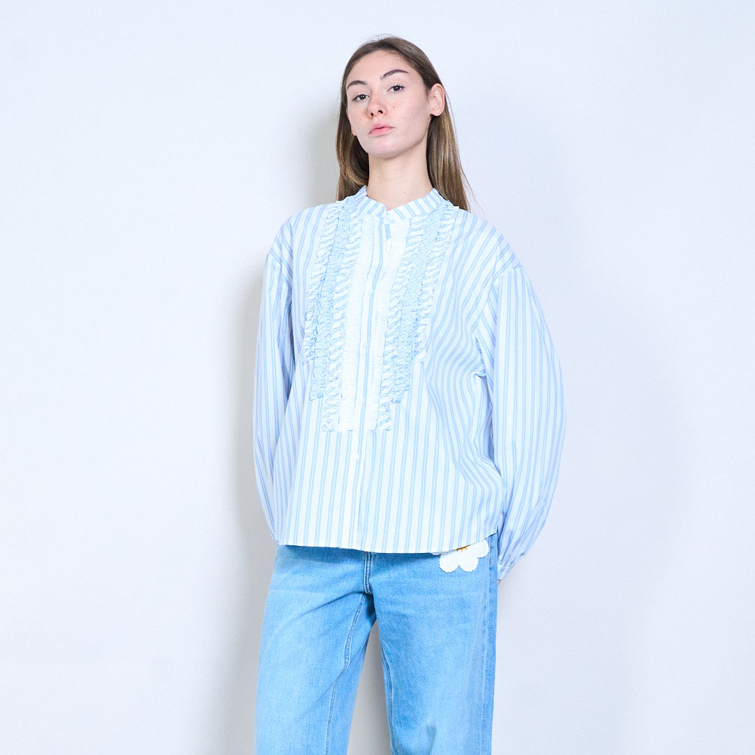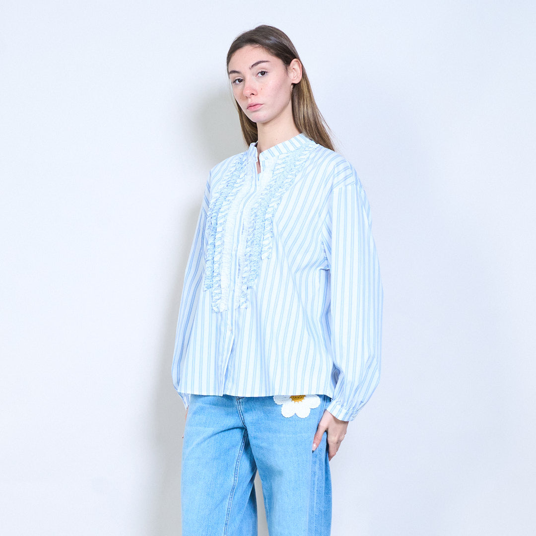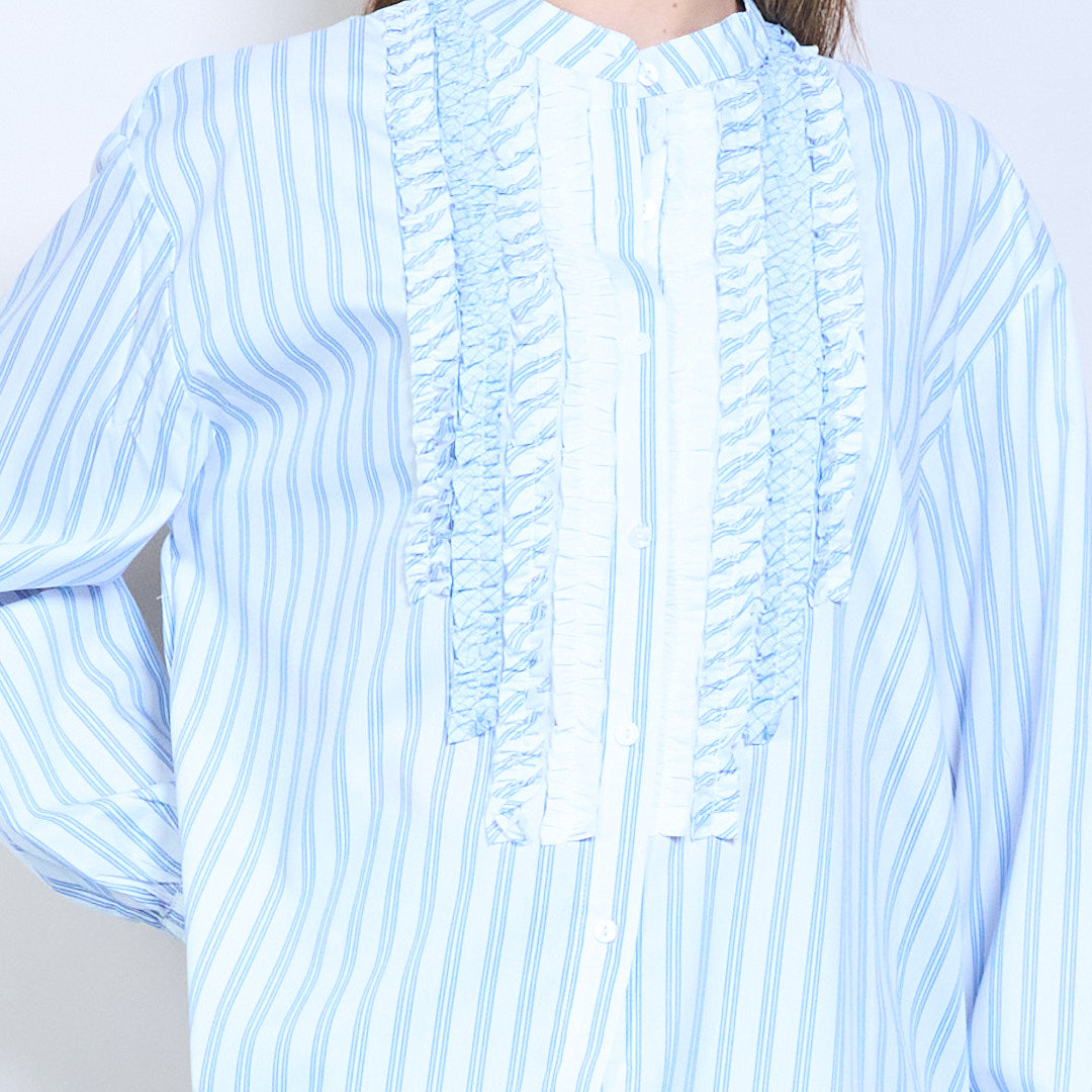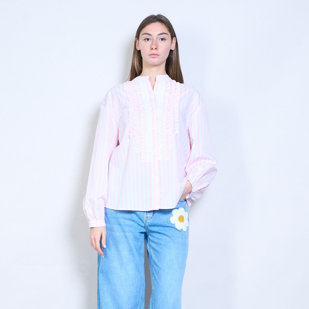 قميص كشكش أمامي مخطط مريح بأكمام طويلة للبيع بالجملة