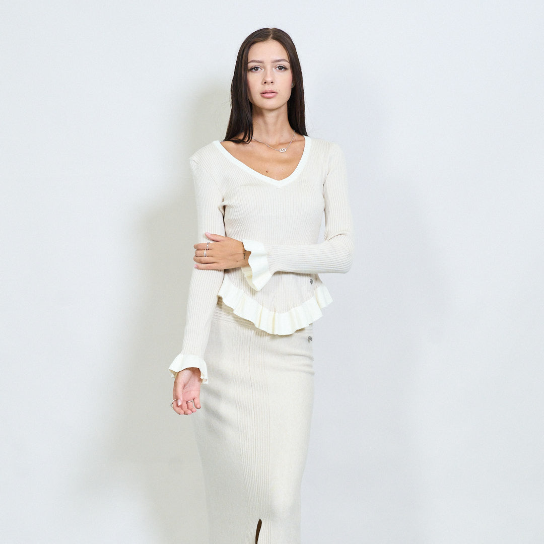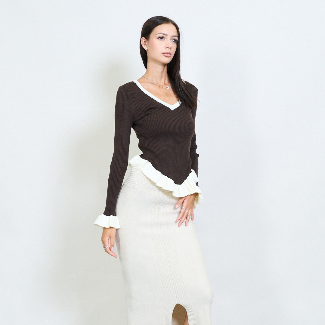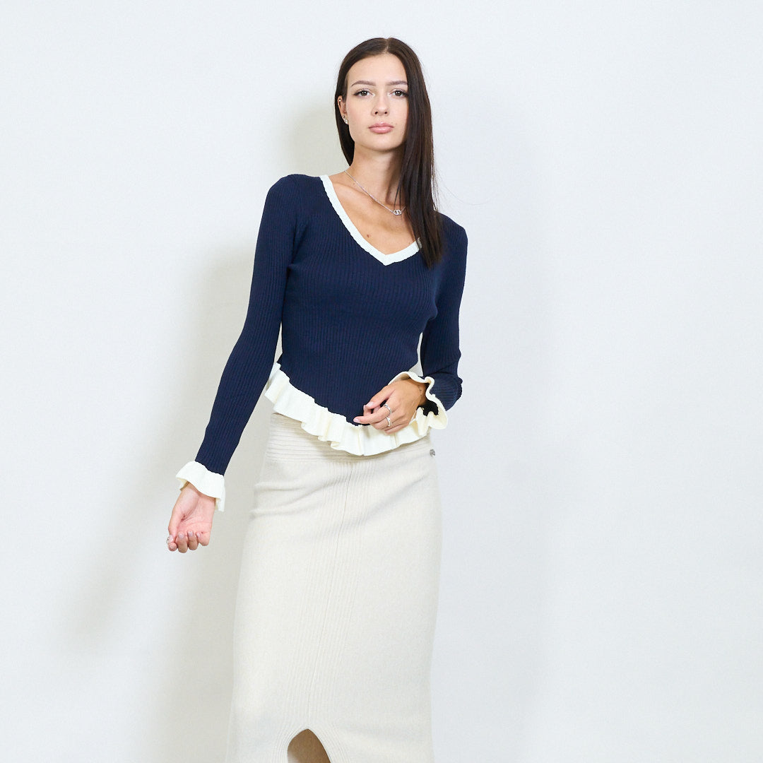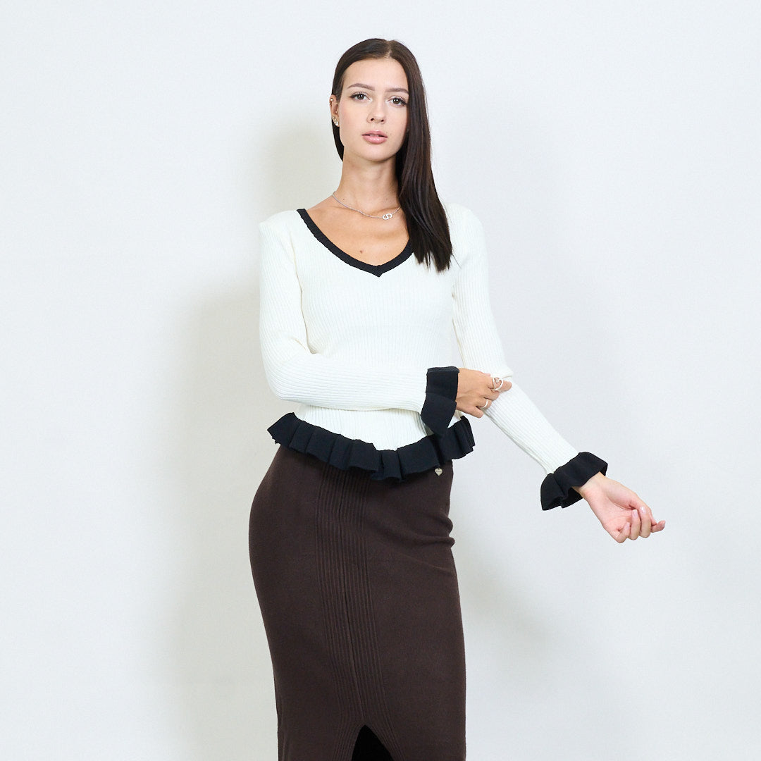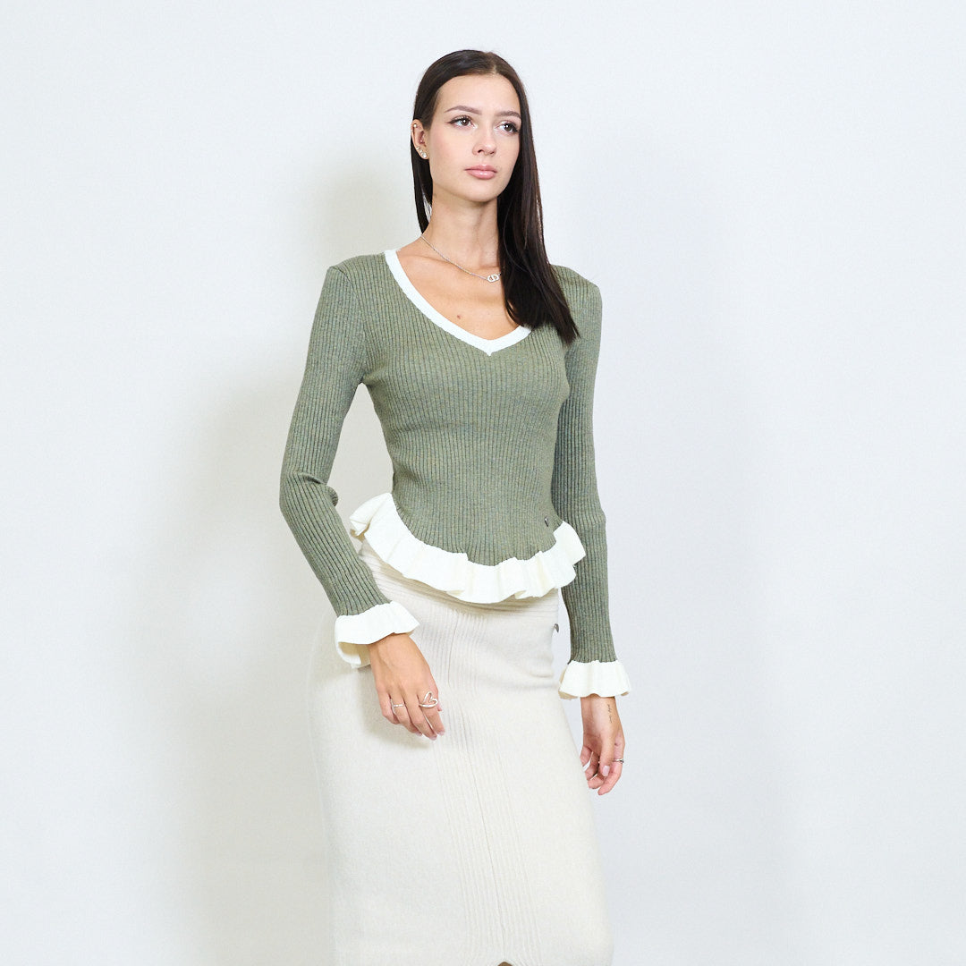 - سترة متماسكة مضلعة مجهزة مع رقبة V الاطلاع