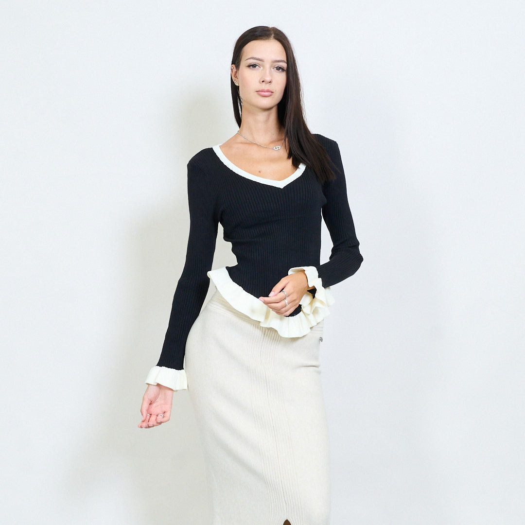 سترة مضلعة عن رقبة مع حواف زخرفة على التباين وعلامة القلب المعدنية بالجملة