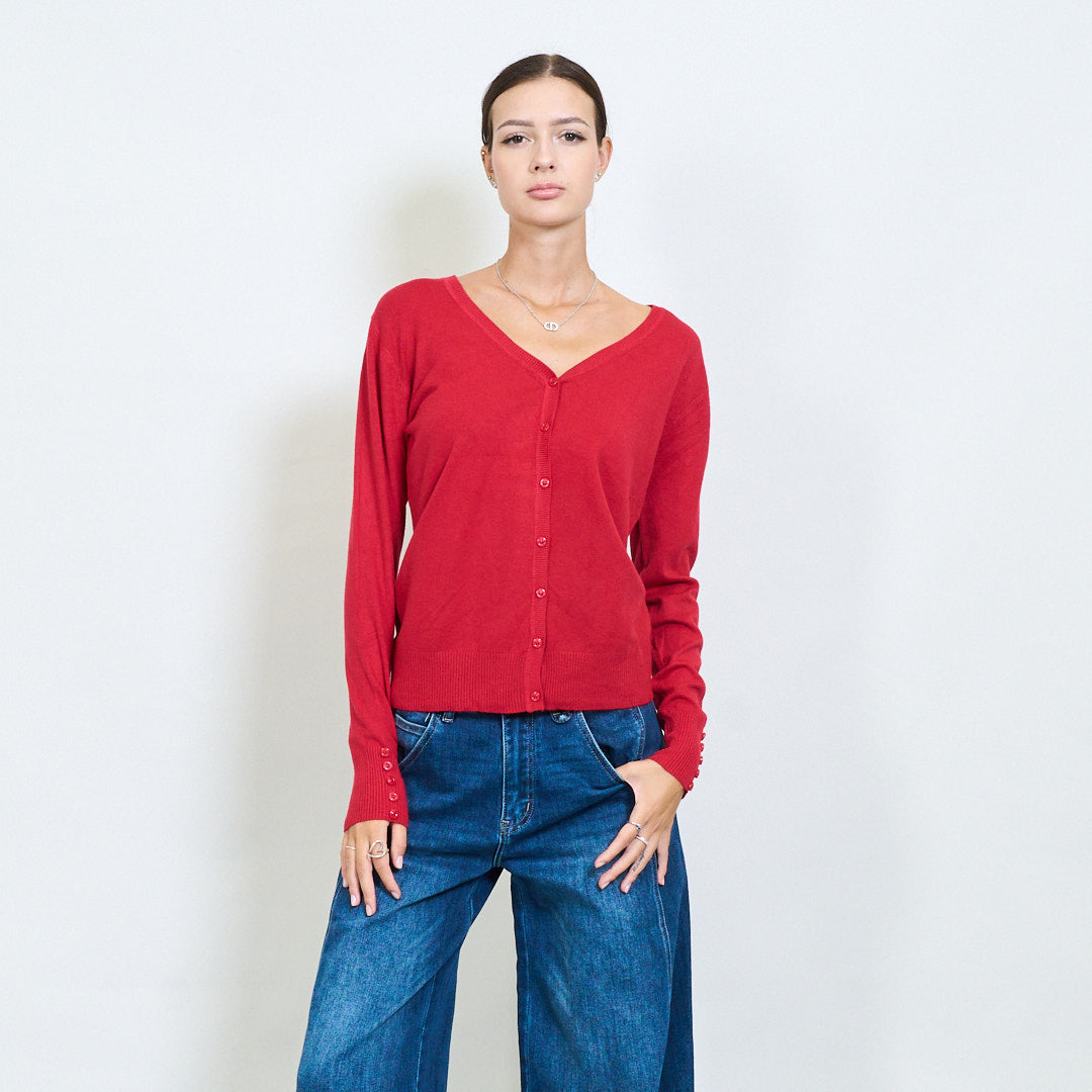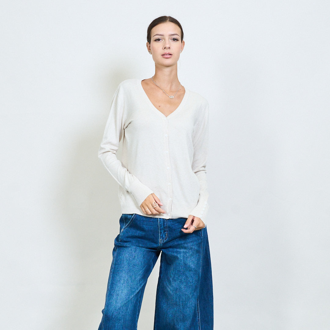 - كارديجان V-الرقبة الكلاسيكي مع مظهر نظيف وأحد الحد الأدنى