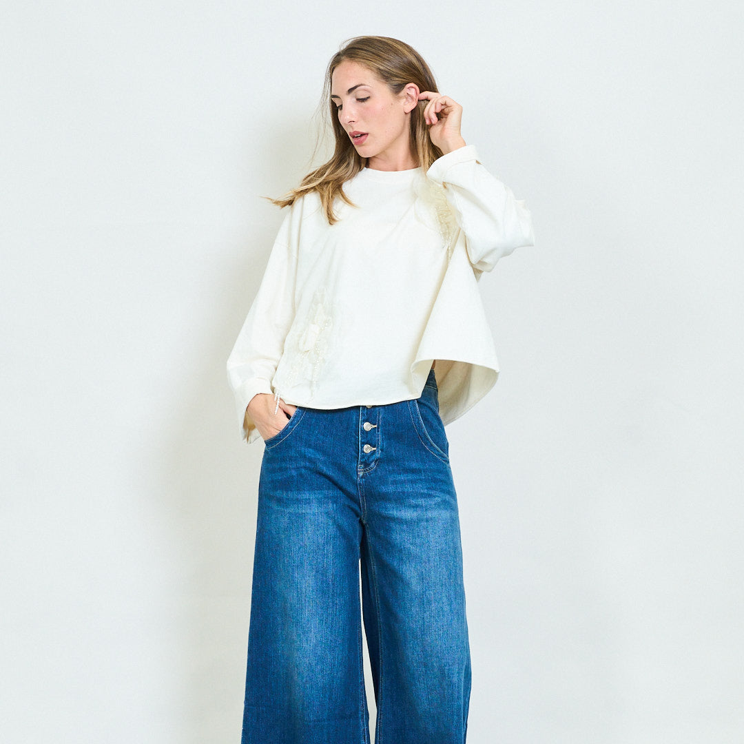 - قميص من النوع الثقيل المريح مع أكتاف إسقاط