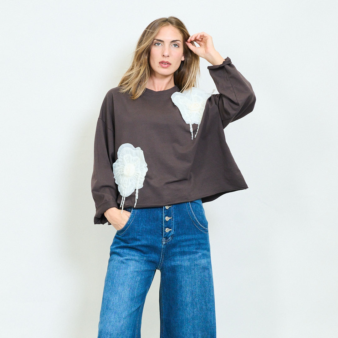 قميص من النوع الثقيل مع زبدة لؤلؤة ثلاثية الأبعاد بالجملة