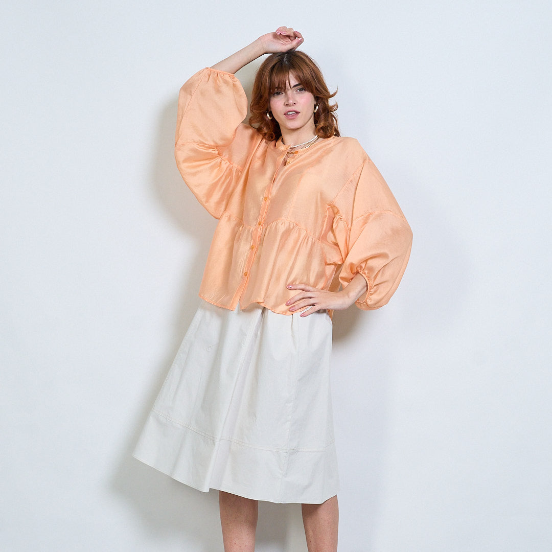 • أكمام بالون البيان مع الأصفاد المجمعة لصورة ظلية ناعمة
