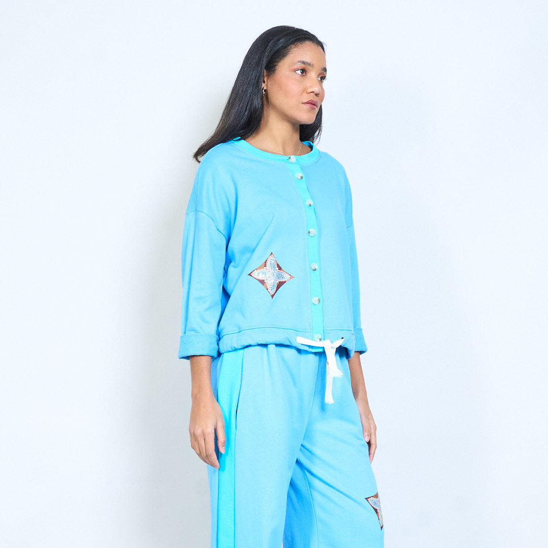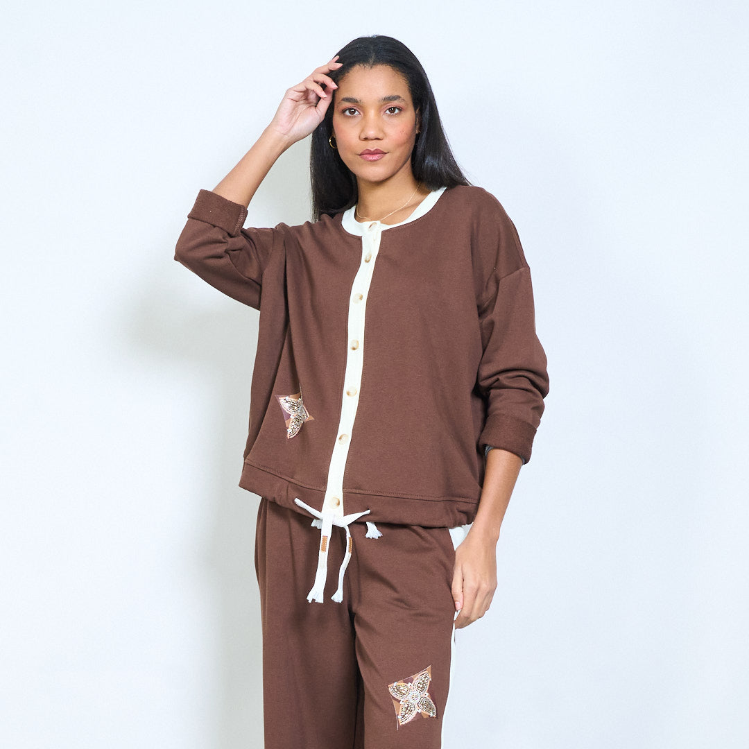 سترة هندسية بأزرار أمامية مريحة للبيع بالجملة