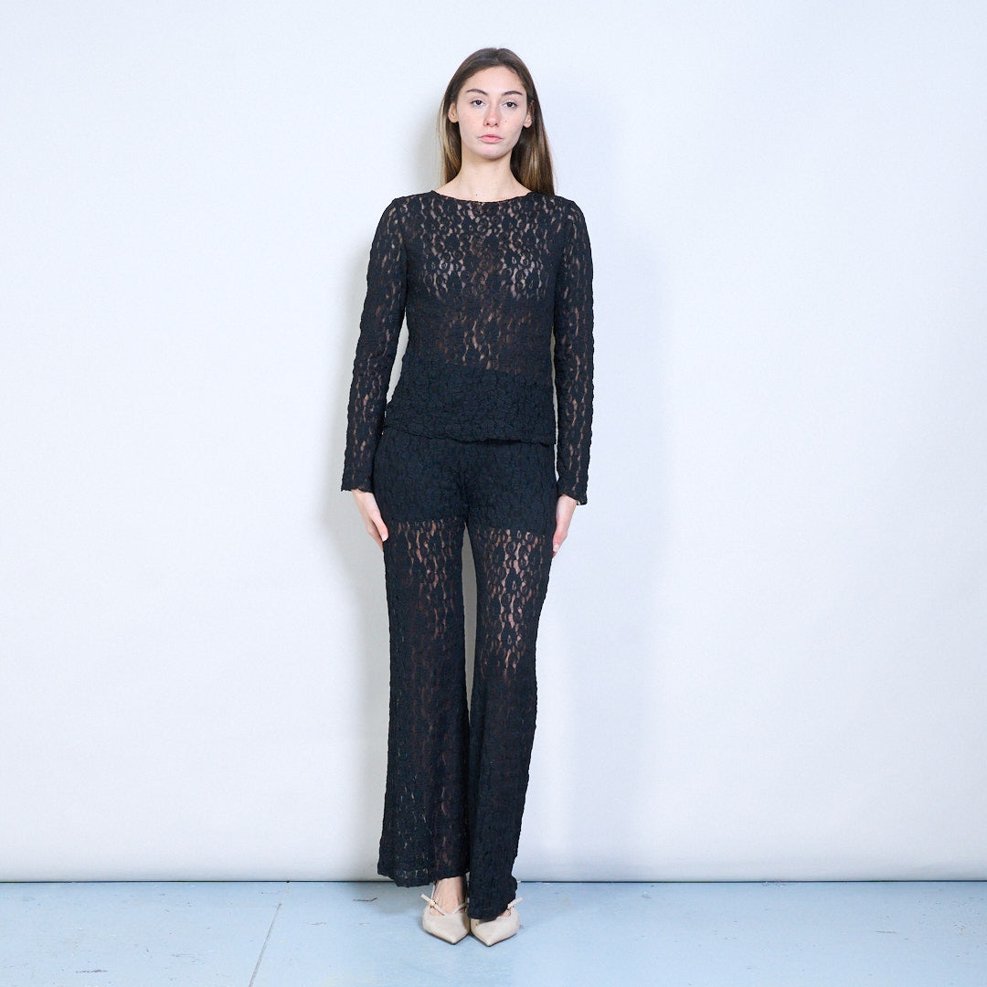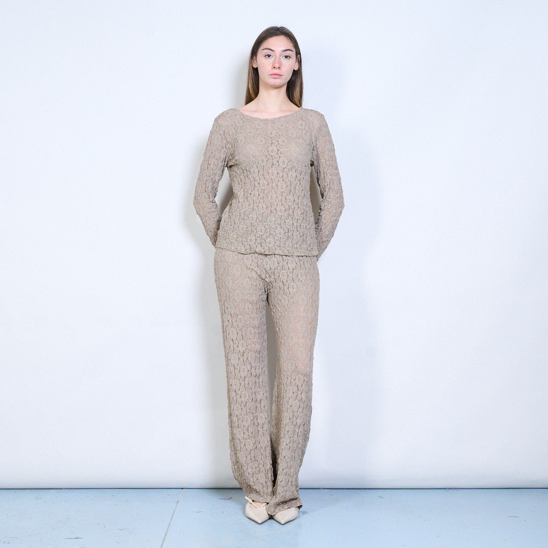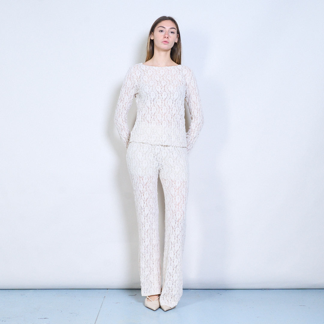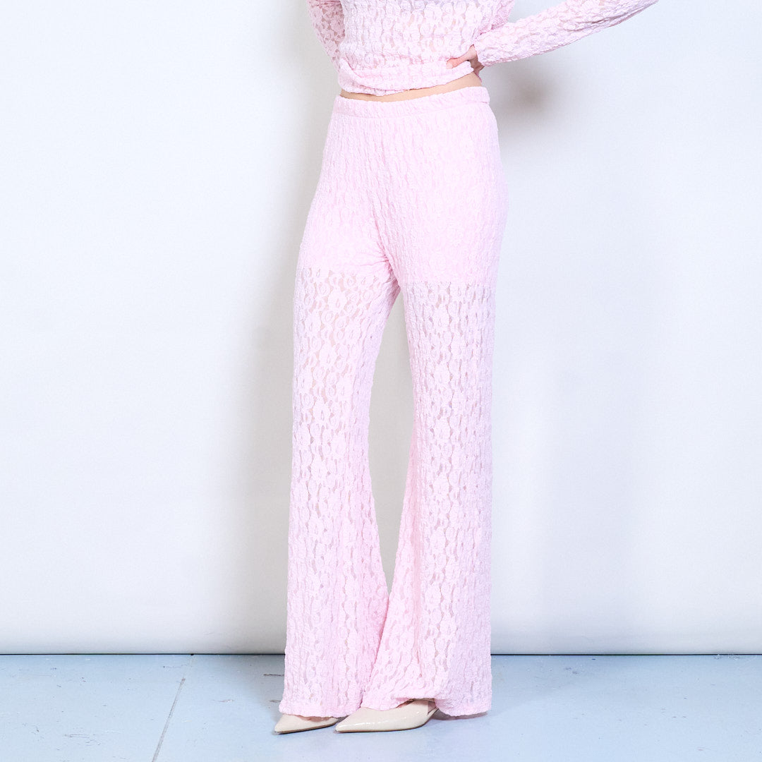 مجموعة من الدانتيل الزهري بأكمام طويلة وبنطلون واسع الساق للبيع بالجملة