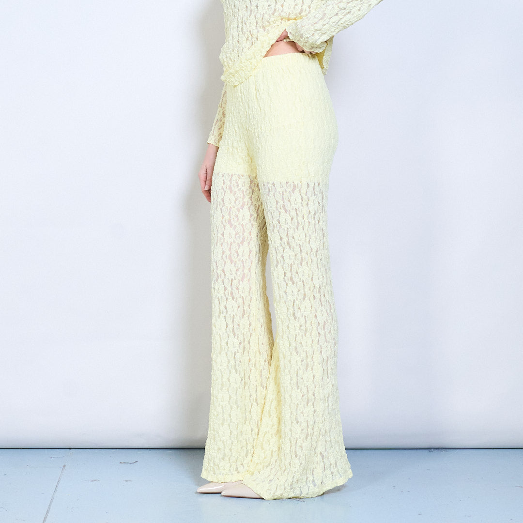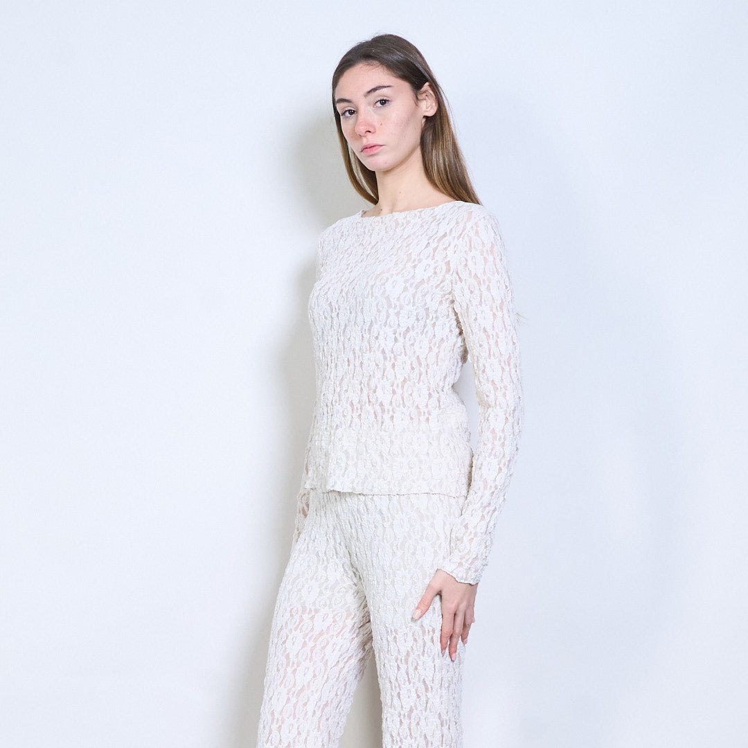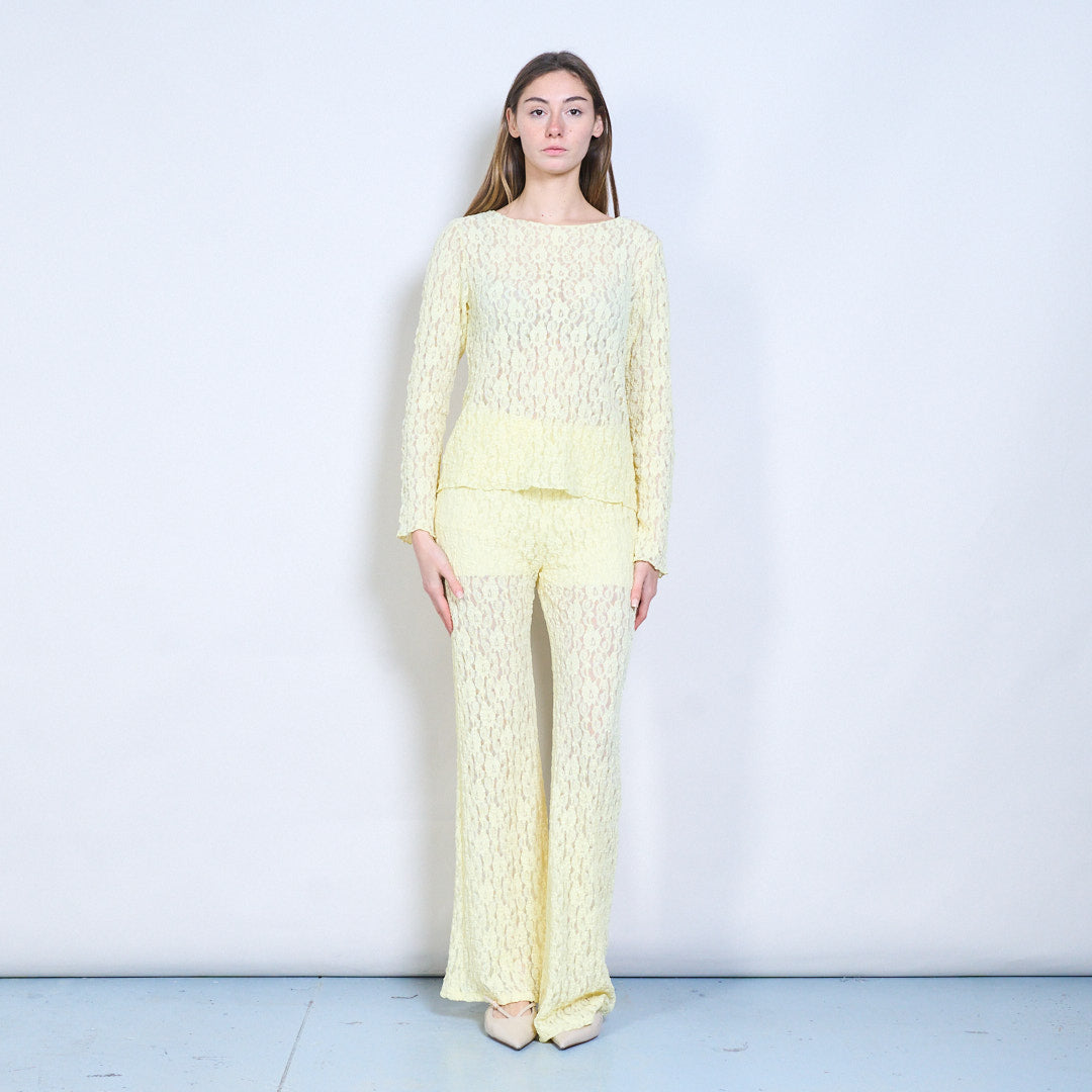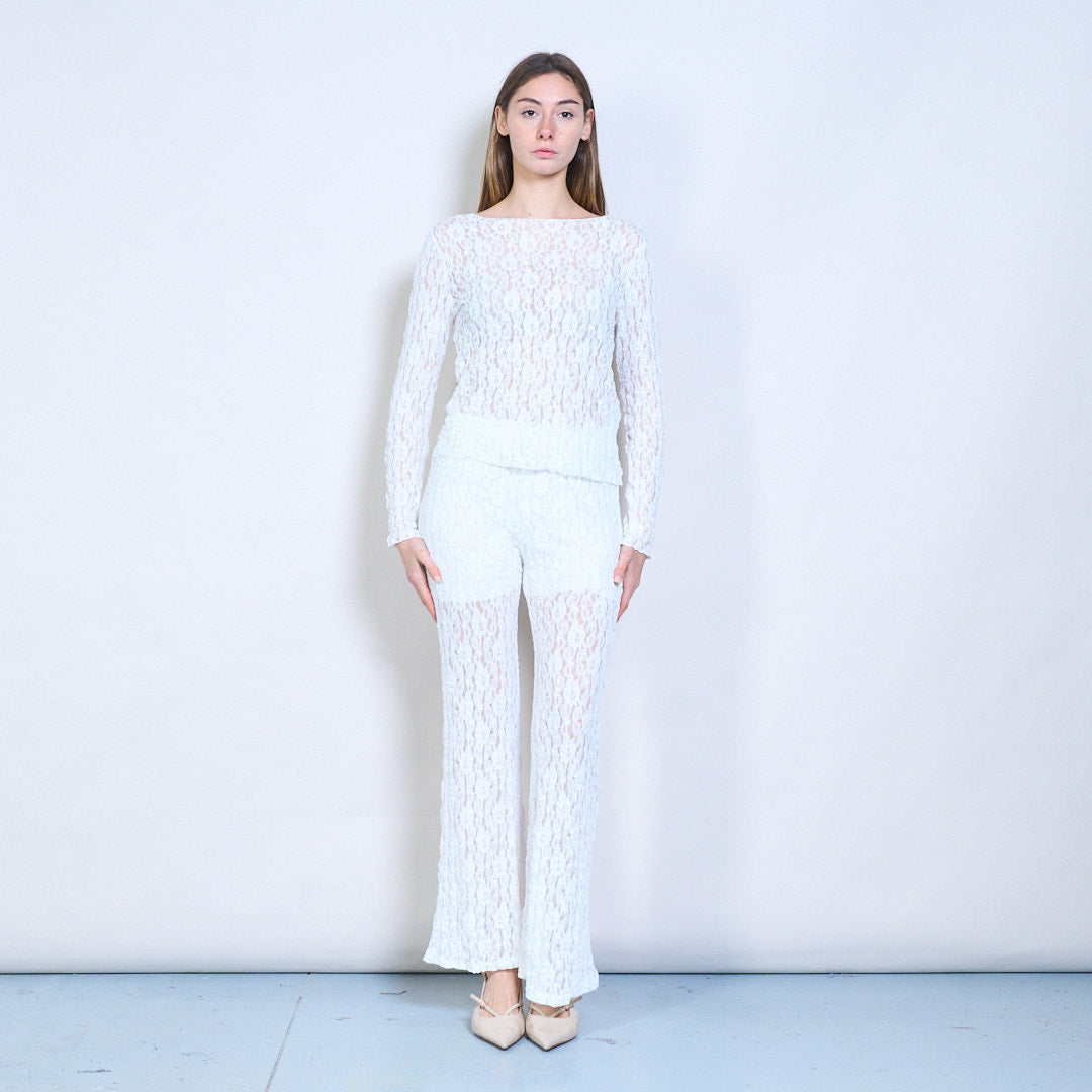 مجموعة من الدانتيل الزهري بأكمام طويلة وبنطلون واسع الساق للبيع بالجملة