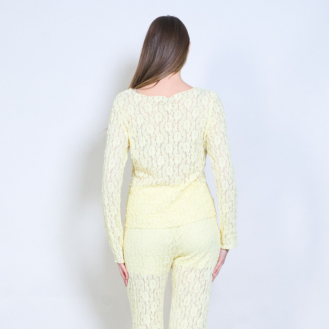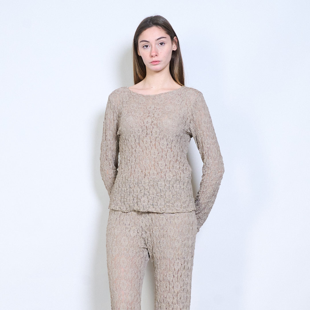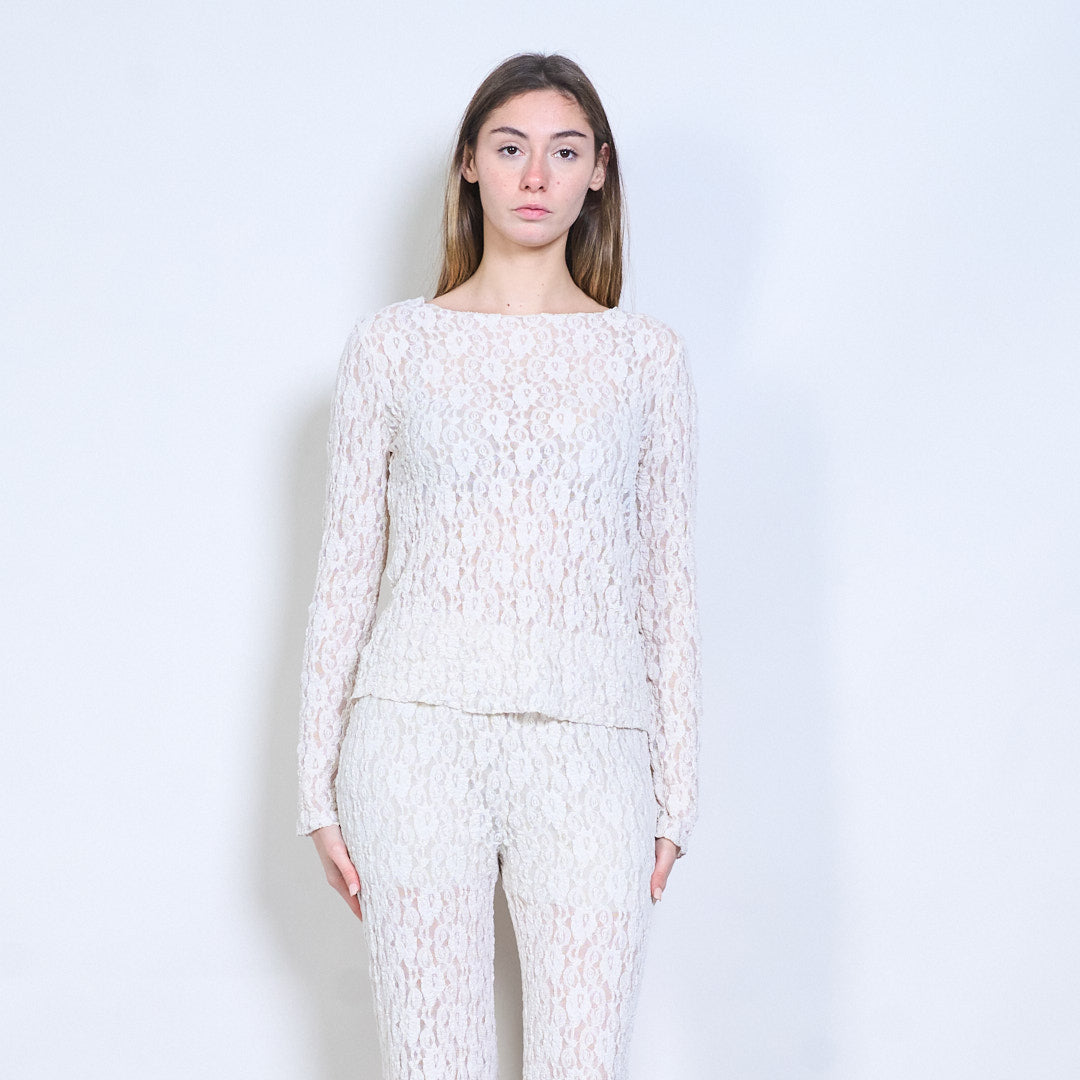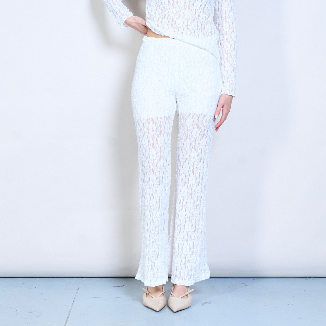 مجموعة من الدانتيل الزهري بأكمام طويلة وبنطلون واسع الساق للبيع بالجملة
