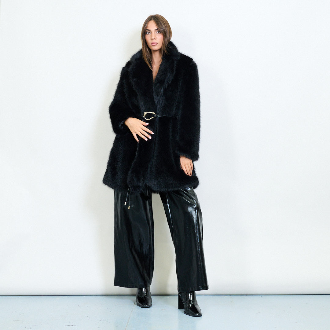• معطف الفرو الفاخر الفاخر مع نسيج أفخم ناعم
