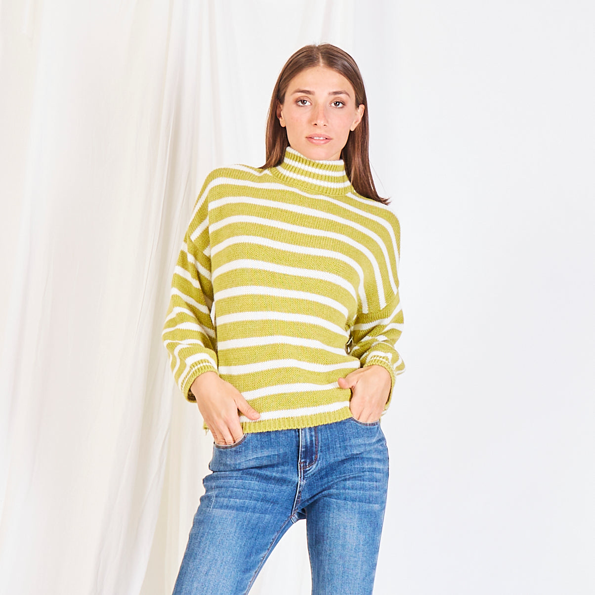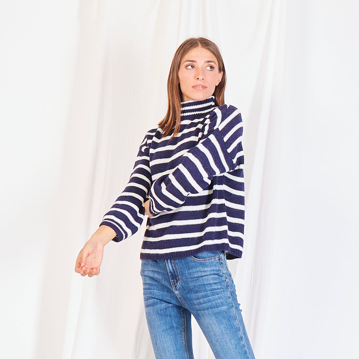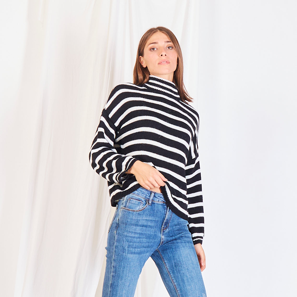 الجملة سترة متماسكة مخططة مع ذوي الياقات البيضاء