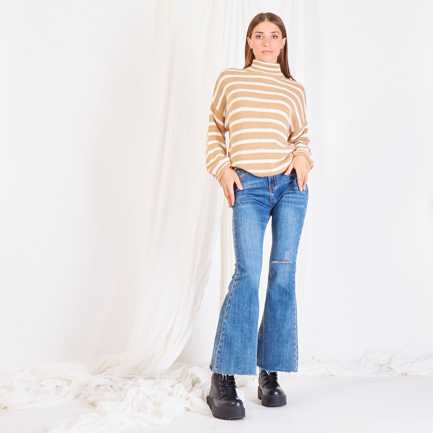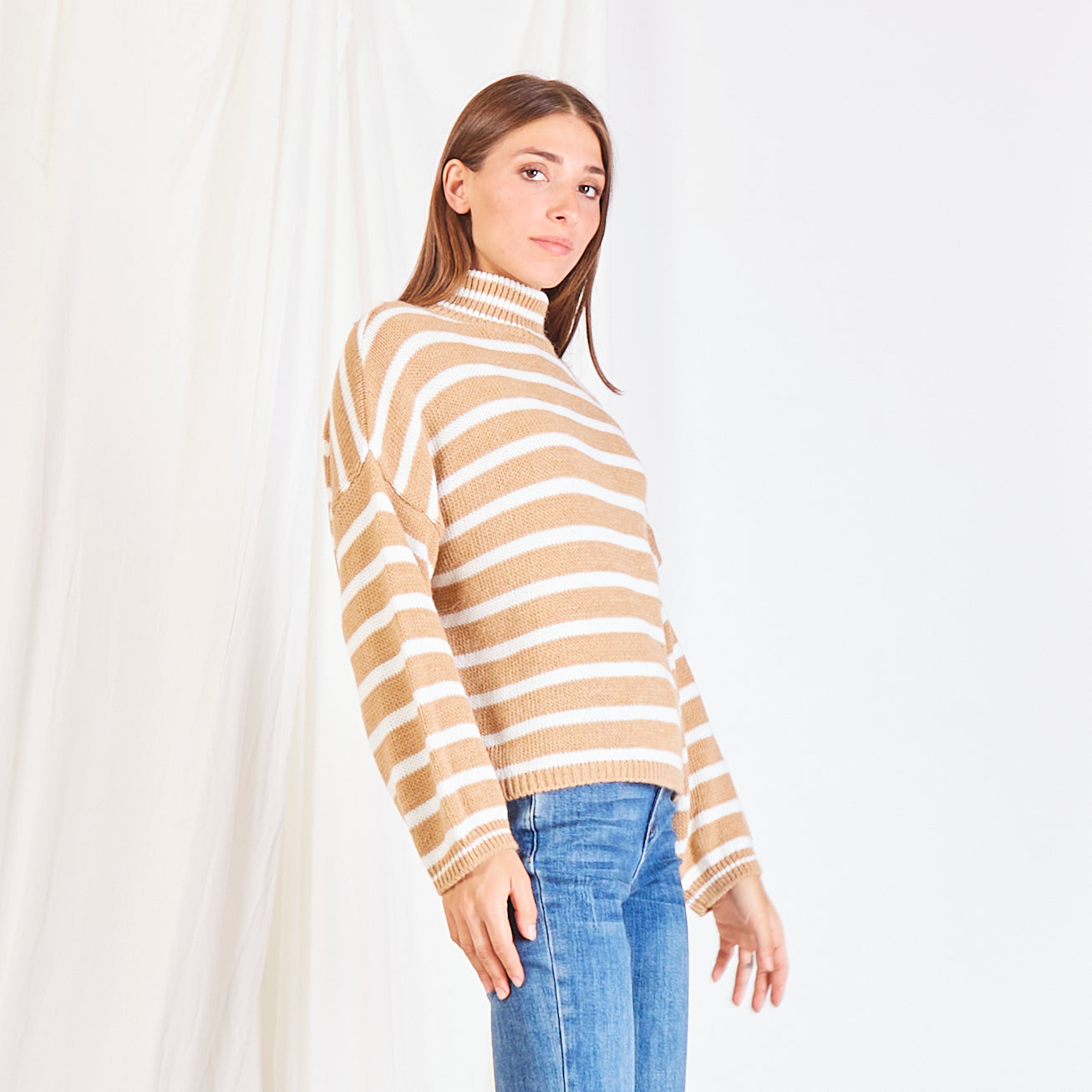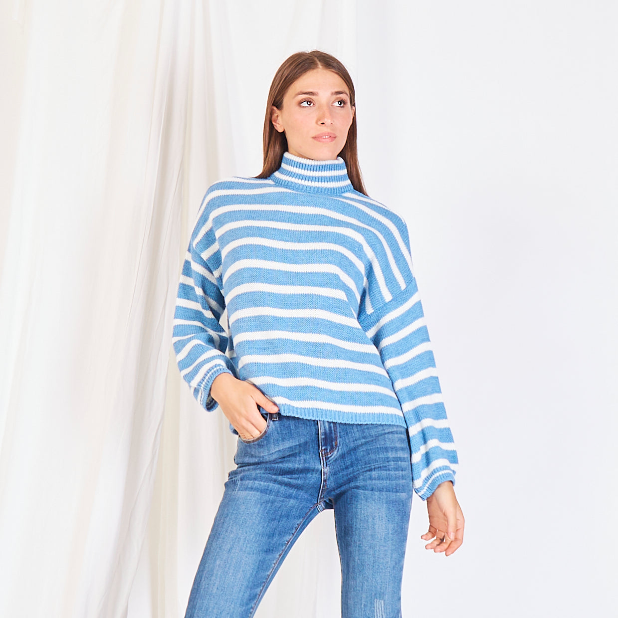 الجملة سترة متماسكة مخططة مع ذوي الياقات البيضاء