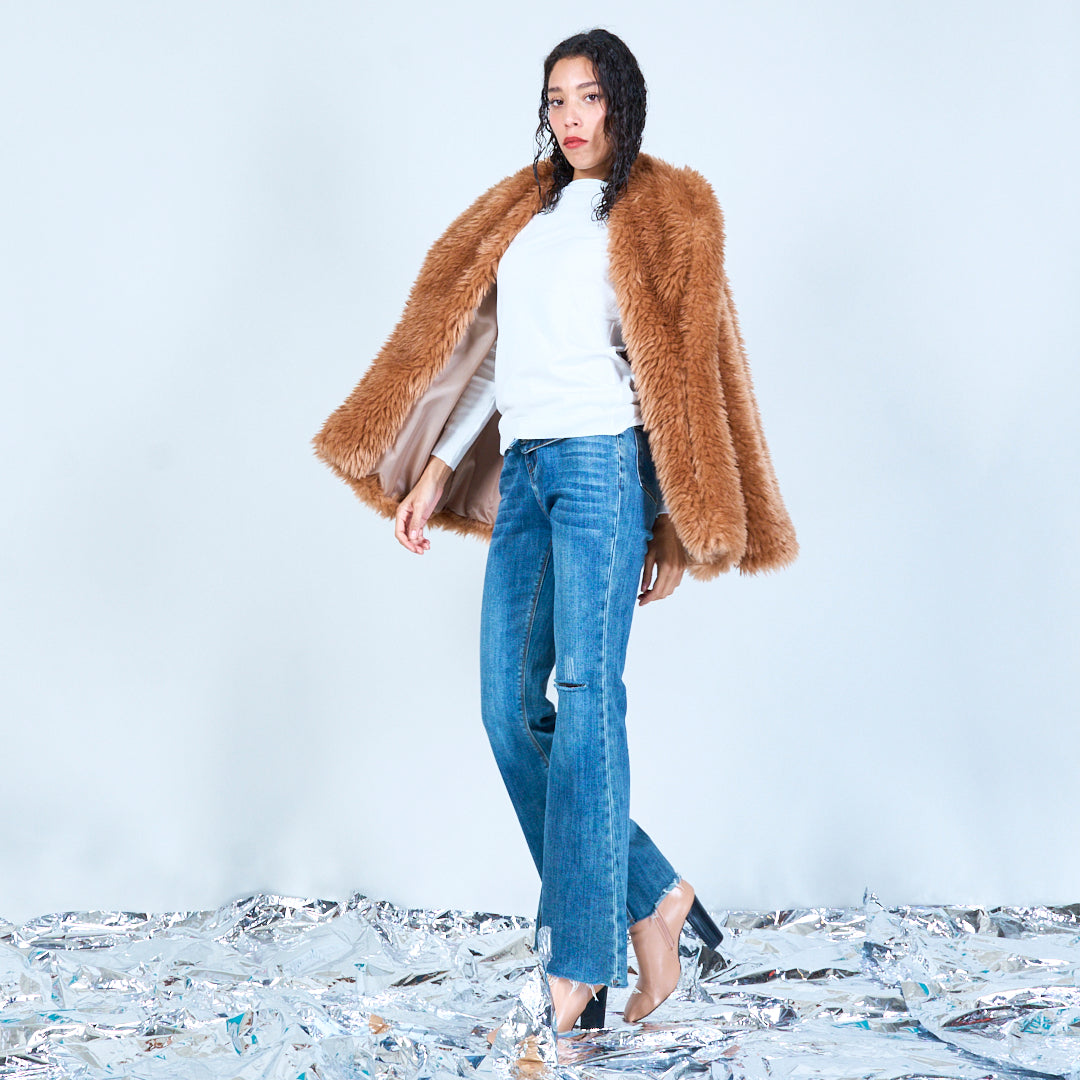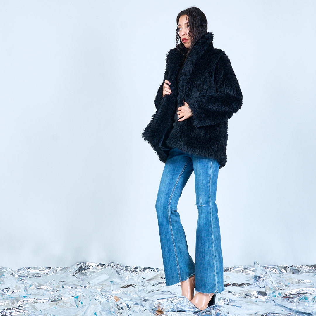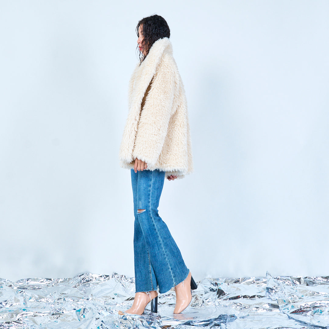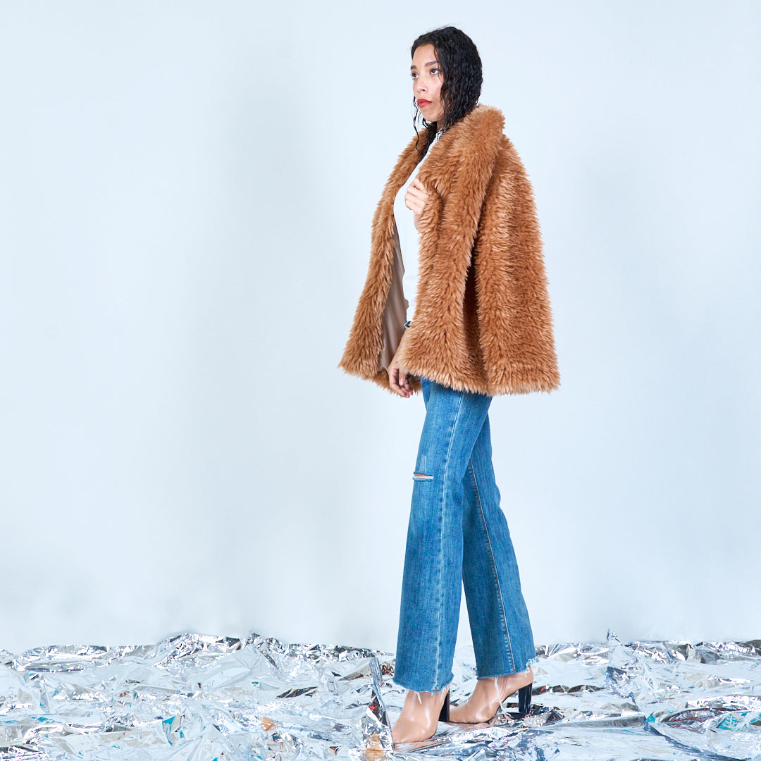سترة من الفرو الصناعي مع ياقة كبيرة الحجم بالجملة