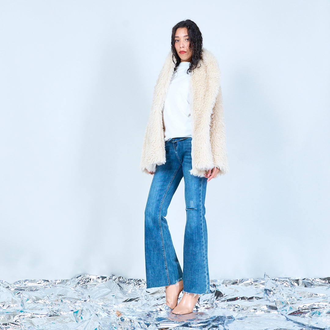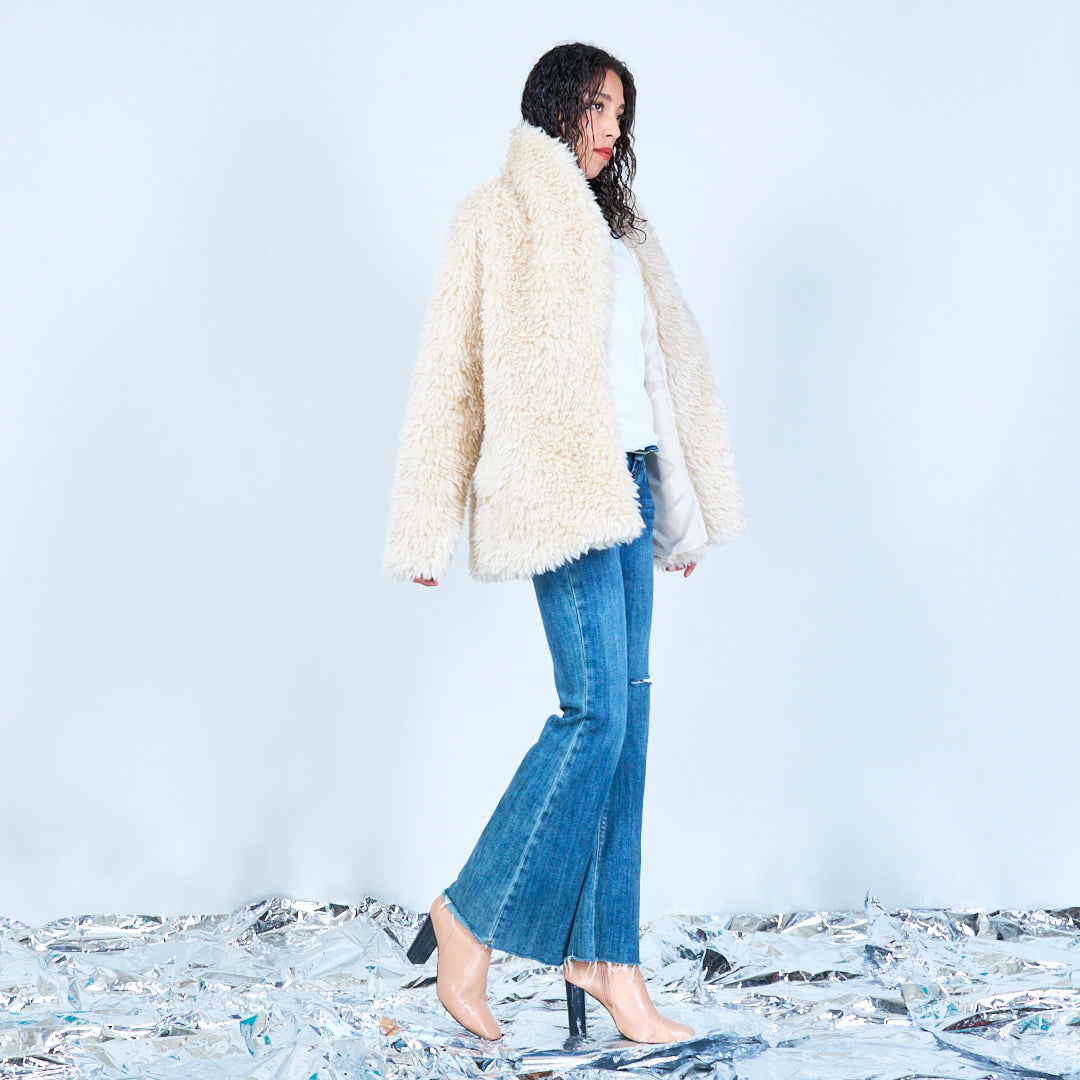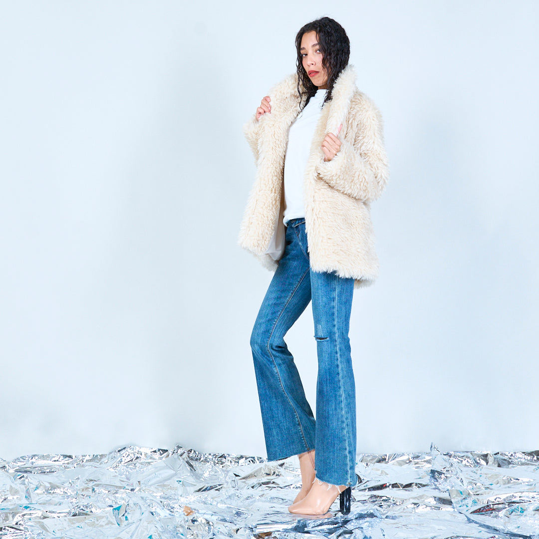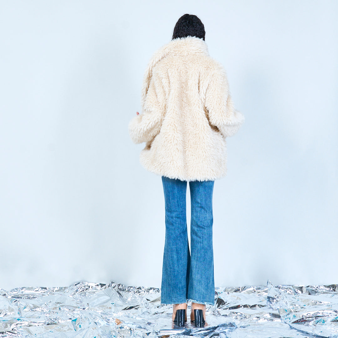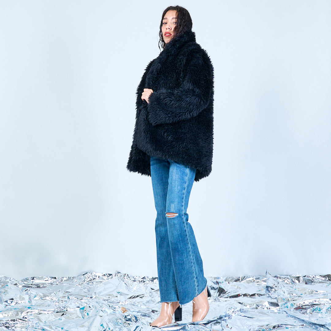 سترة من الفرو الصناعي مع ياقة كبيرة الحجم بالجملة