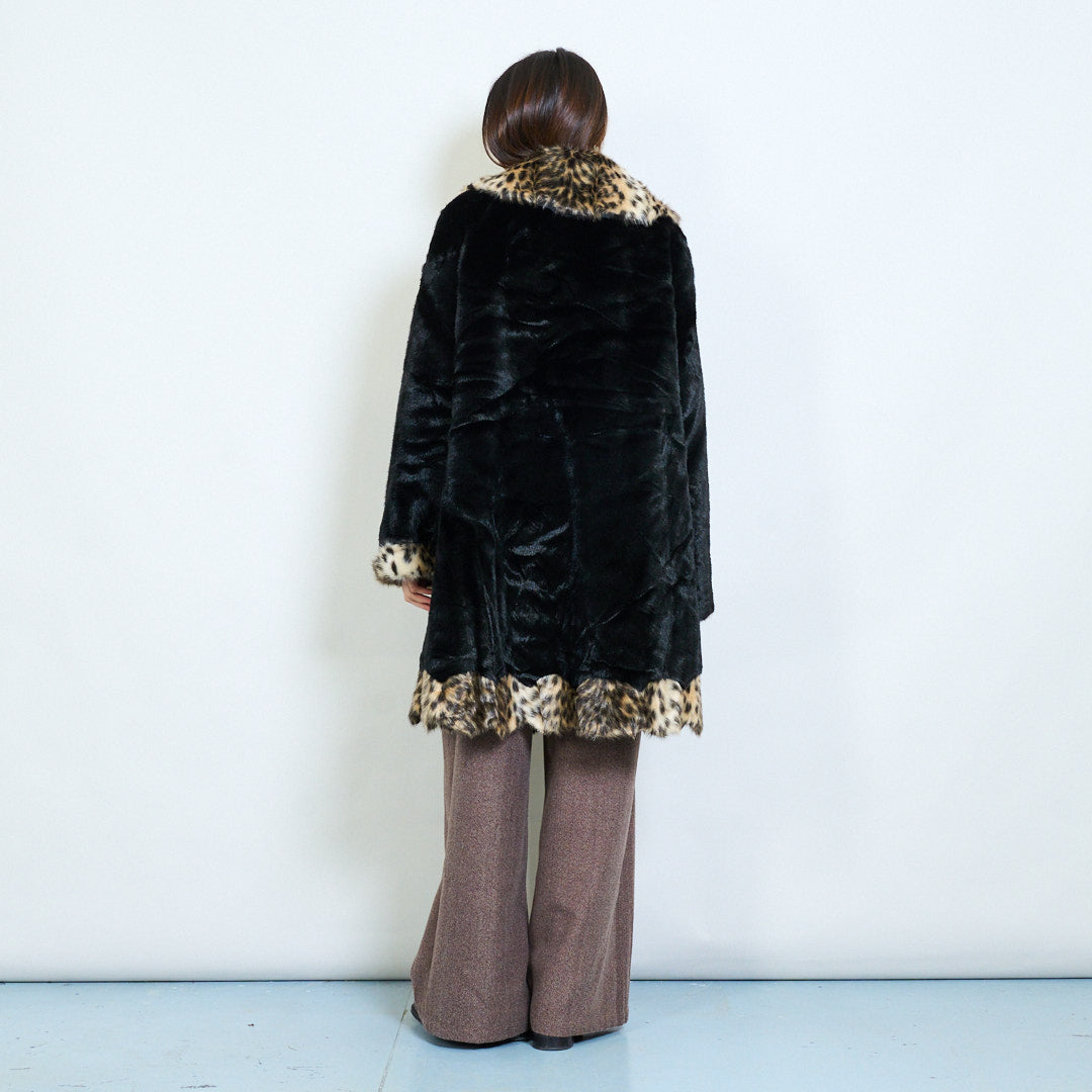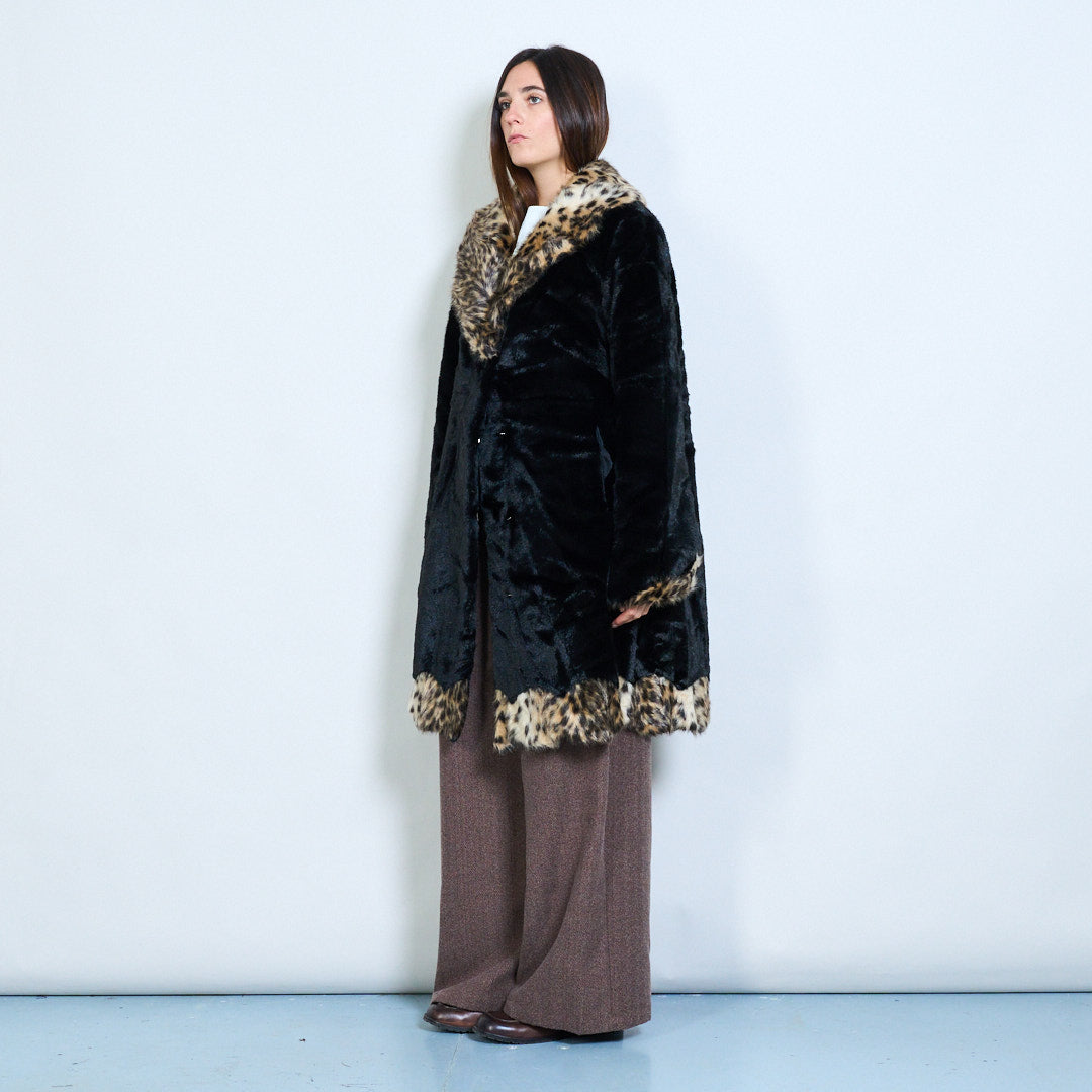 معطف شتوي ذو طية صدر السترة مزين بنقشة الفهد مع حاشية ذات طبقات للبيع بالجملة