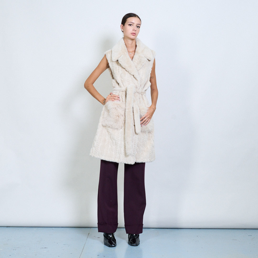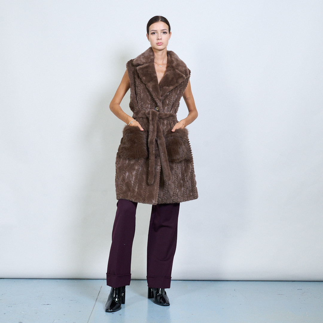 - معطف طويل من الفراء الفاخرة مع تصميم بلا أكمام