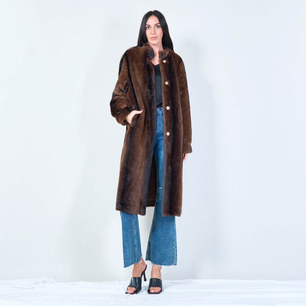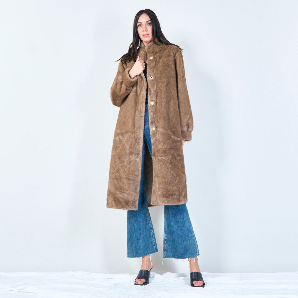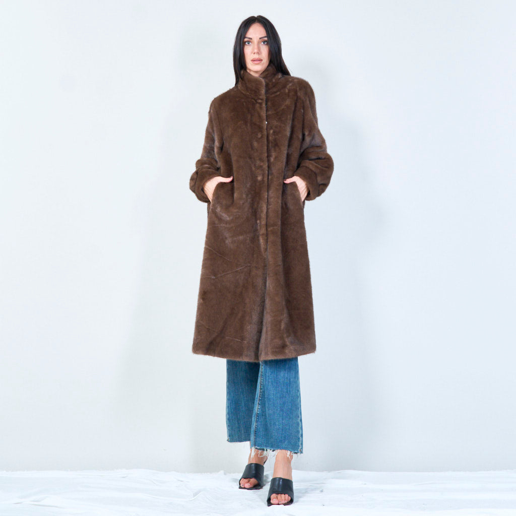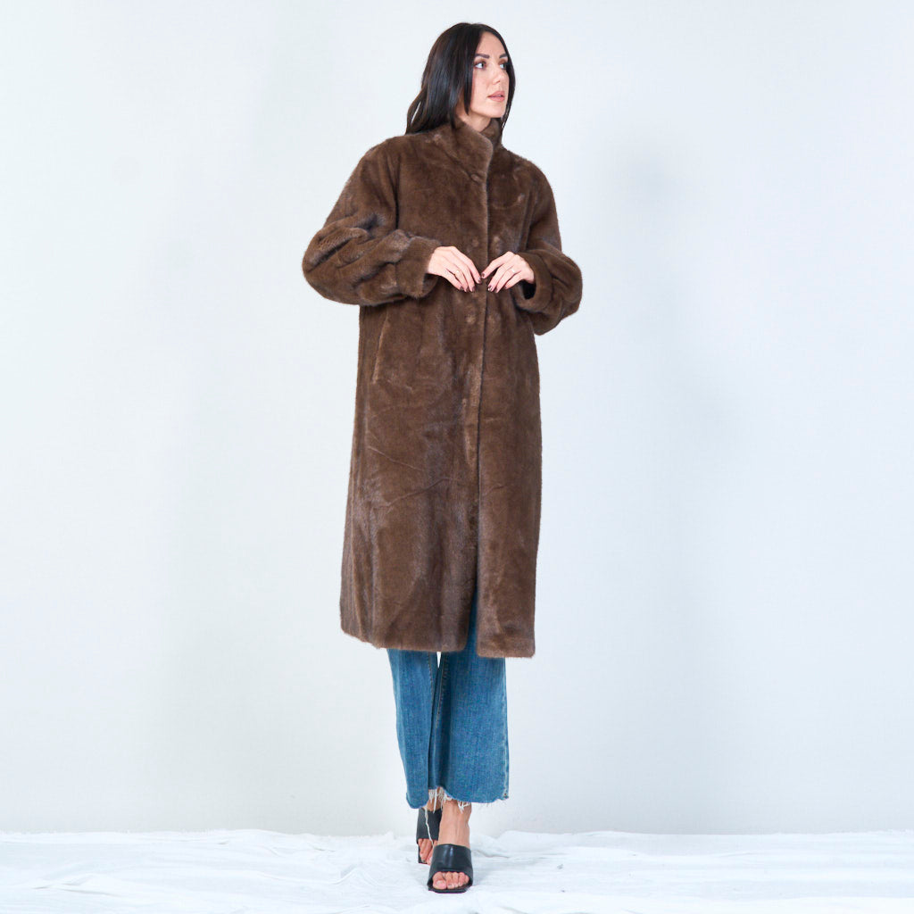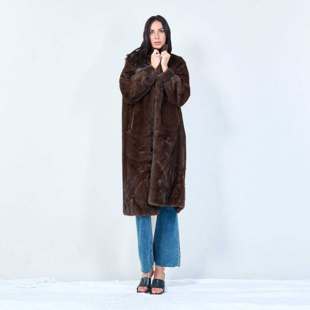 معطف فرو صناعي طويل بياقة عالية للبيع بالجملة