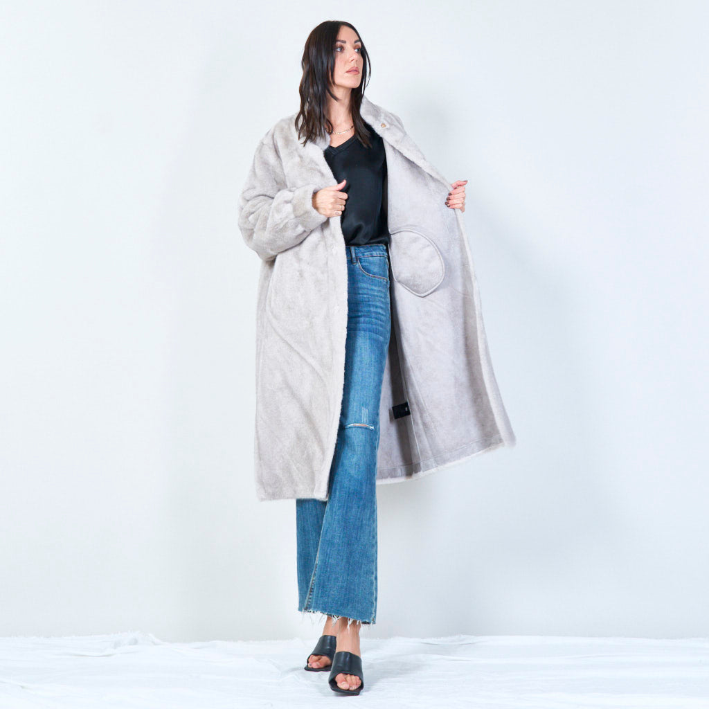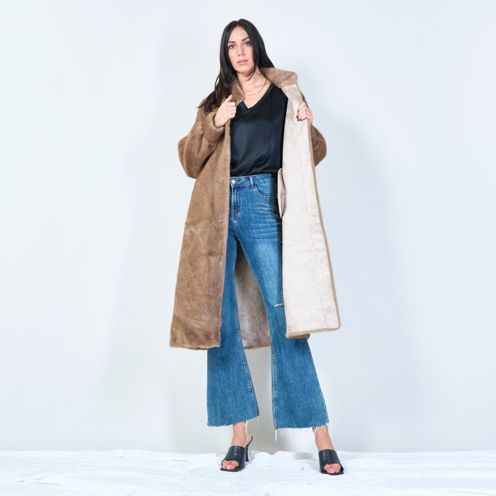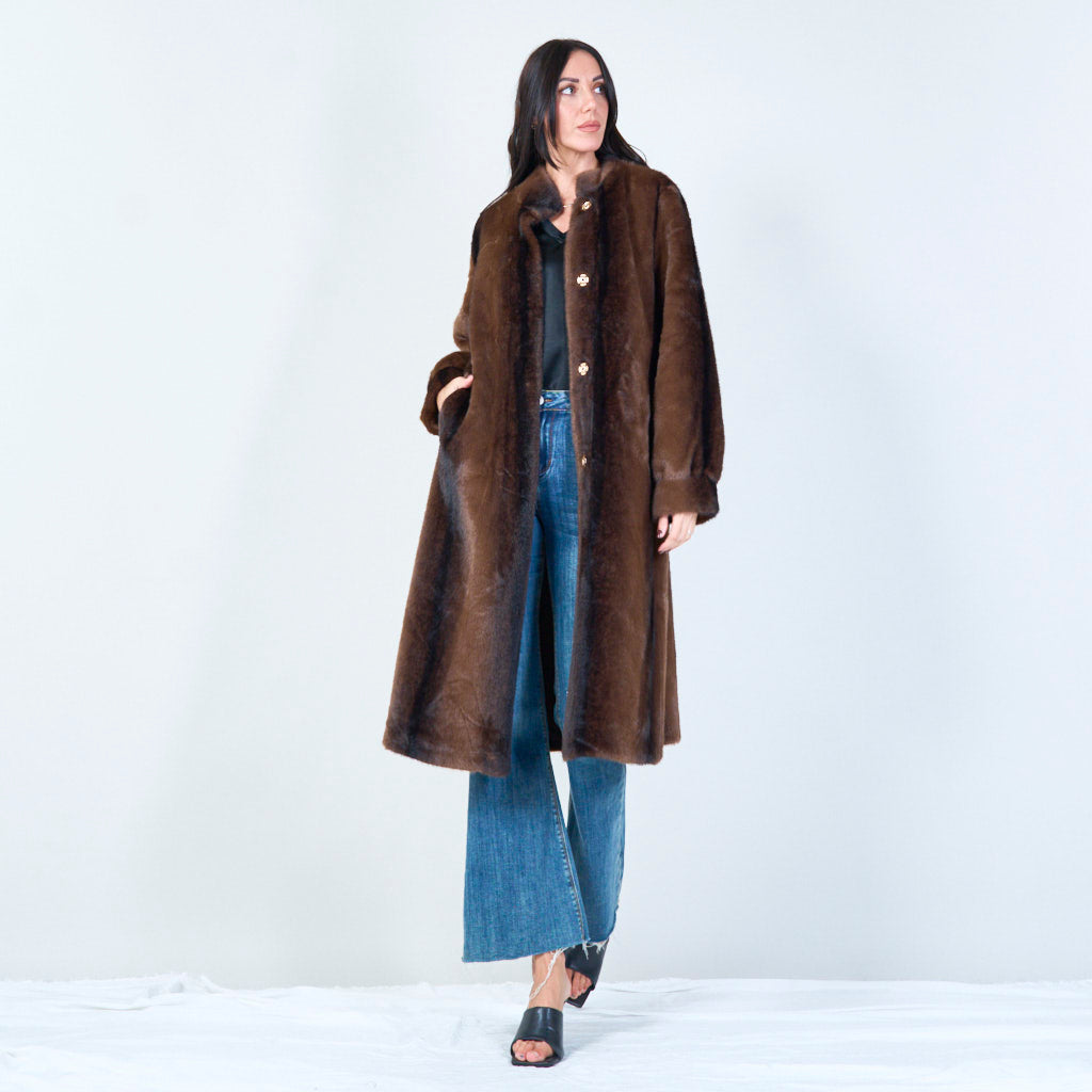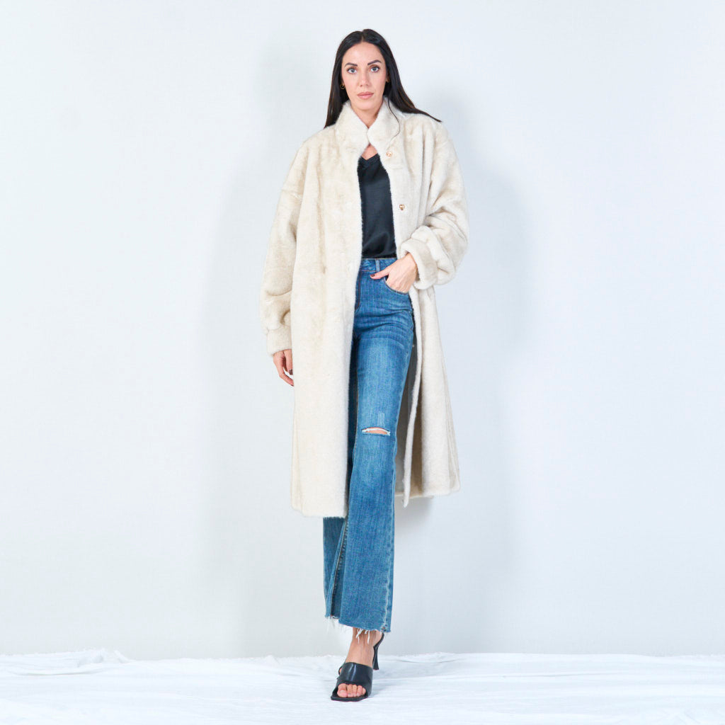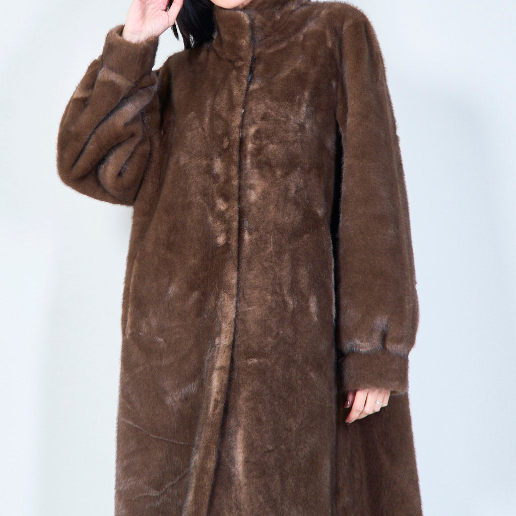 معطف فرو صناعي طويل بياقة عالية للبيع بالجملة