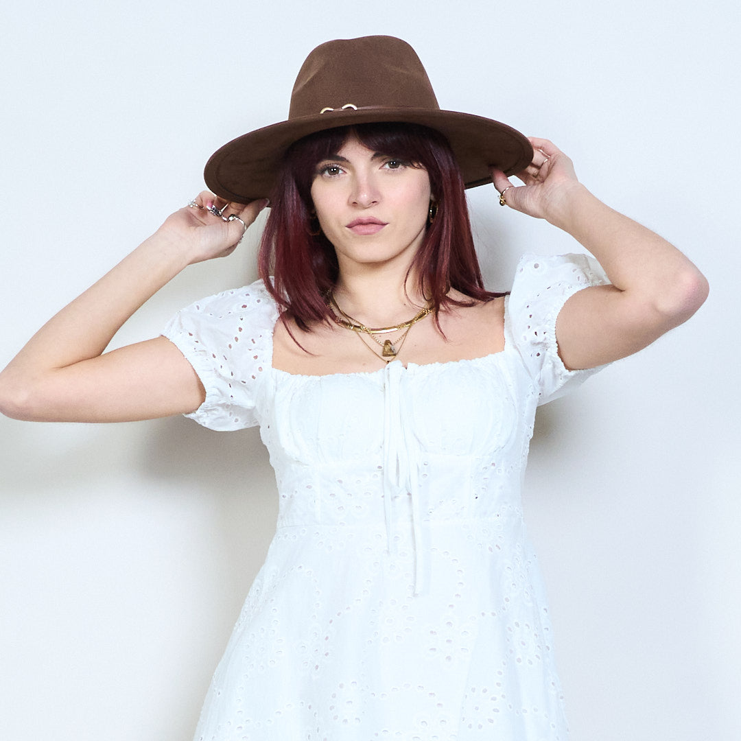 Филцова шапка в каубойски стил с широка периферия и шнур на едро