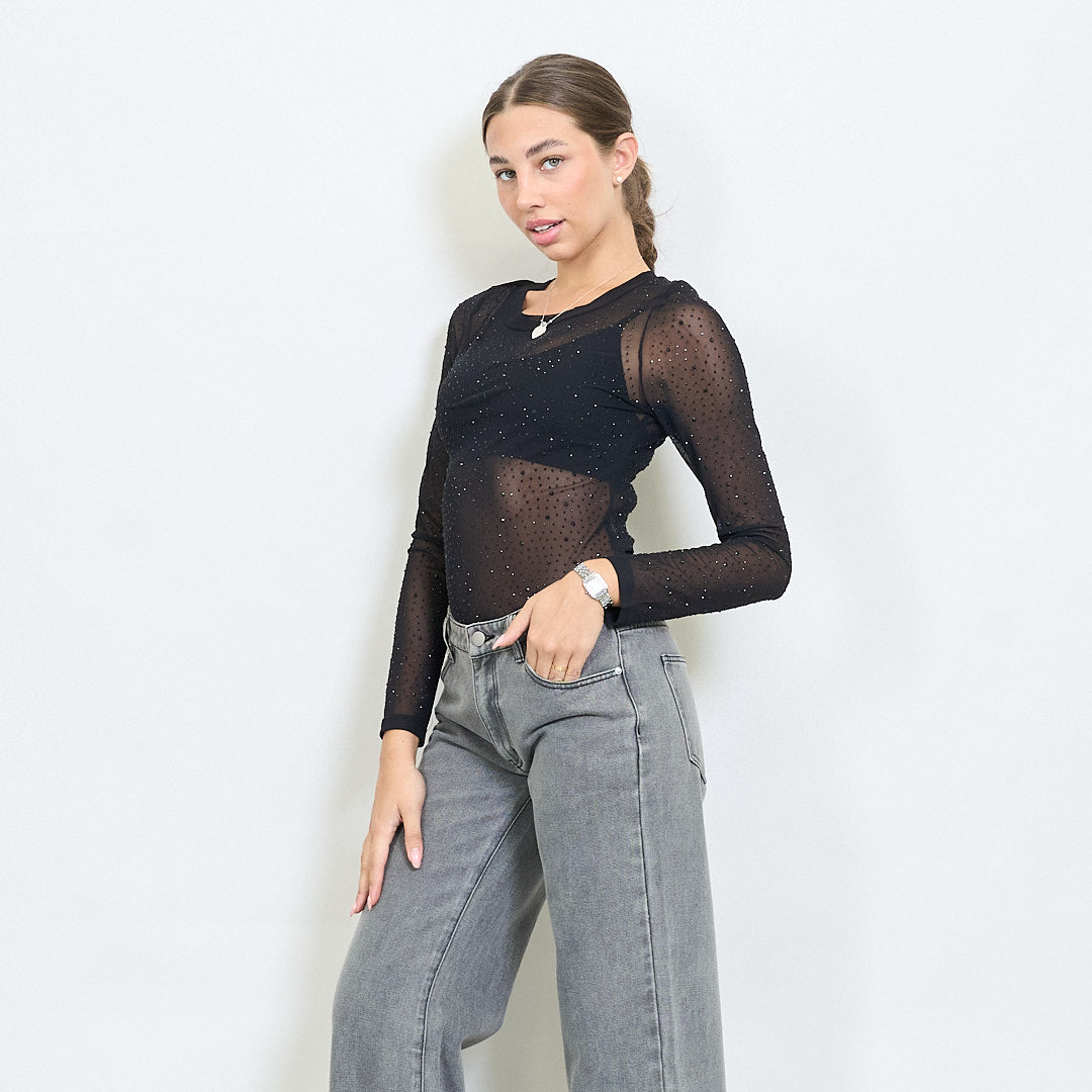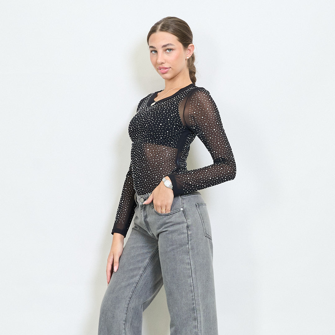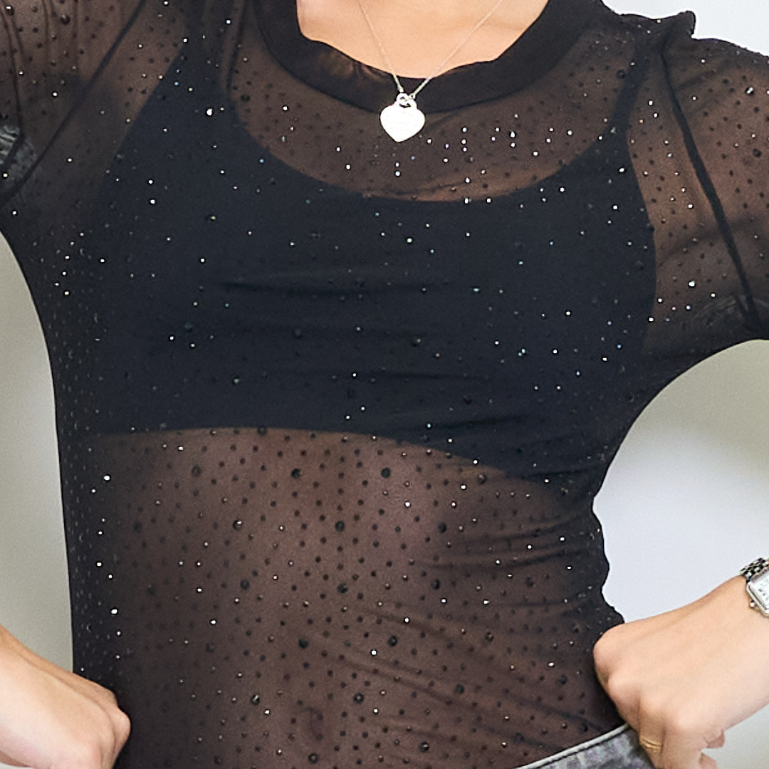 Чист мрежест боди с кръгло деколте с изцяло надвишаващи се на едро