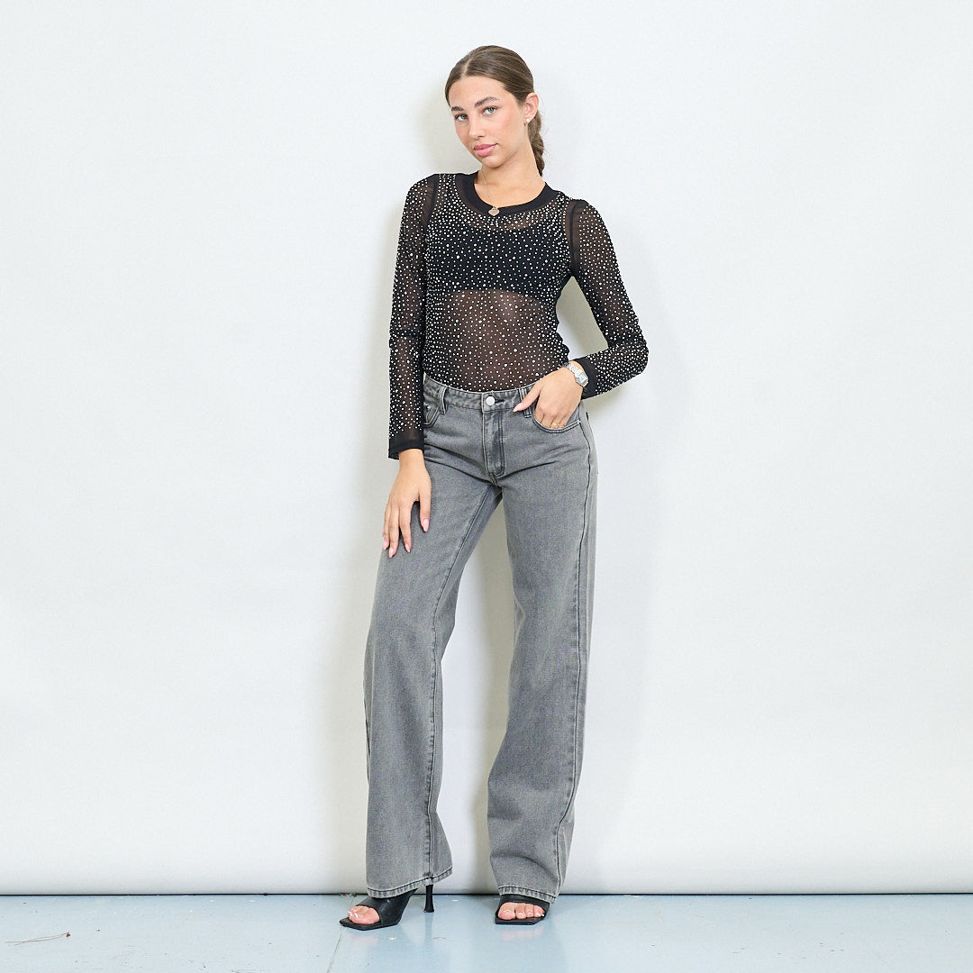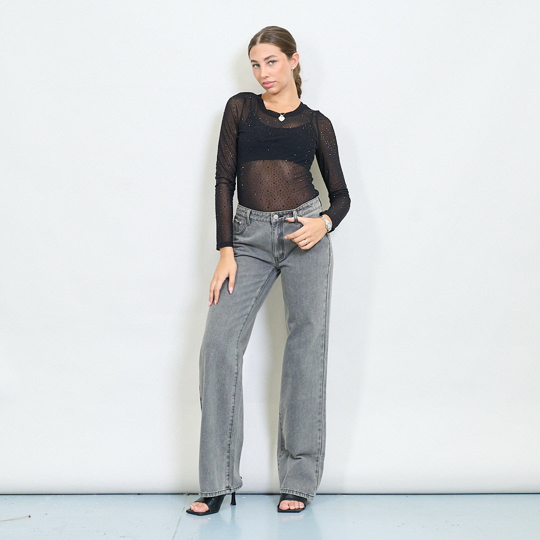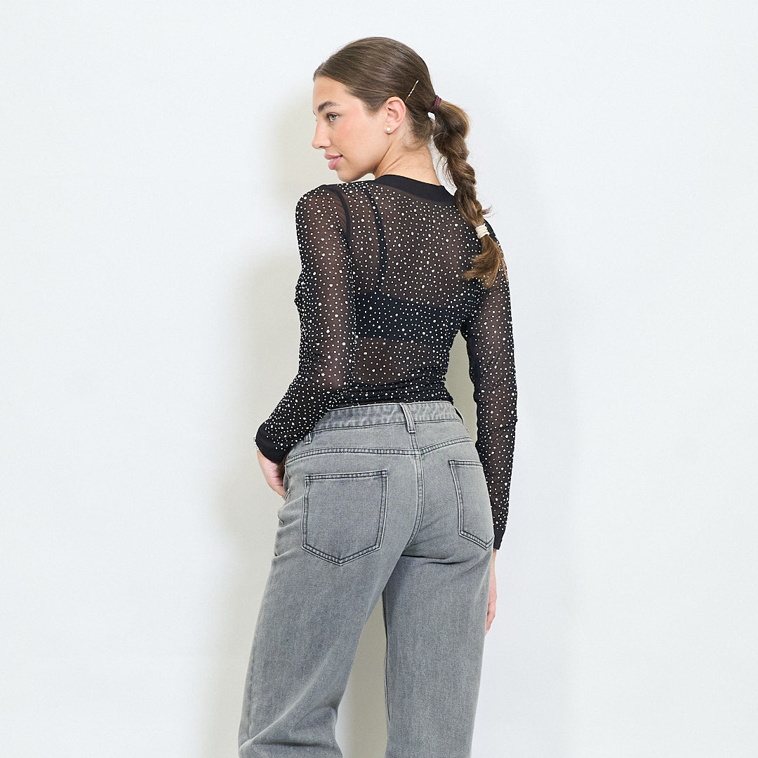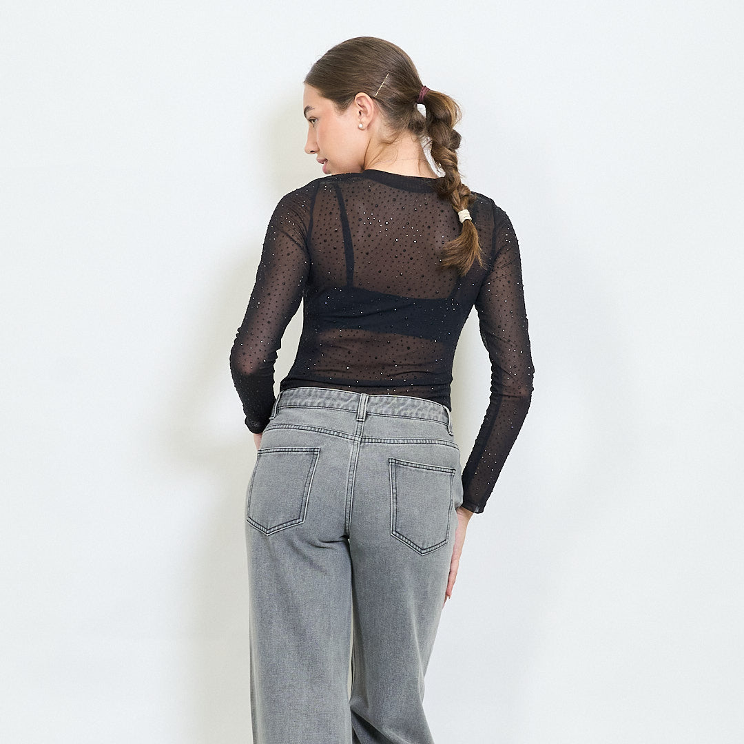 Чист мрежест боди с кръгло деколте с изцяло надвишаващи се на едро