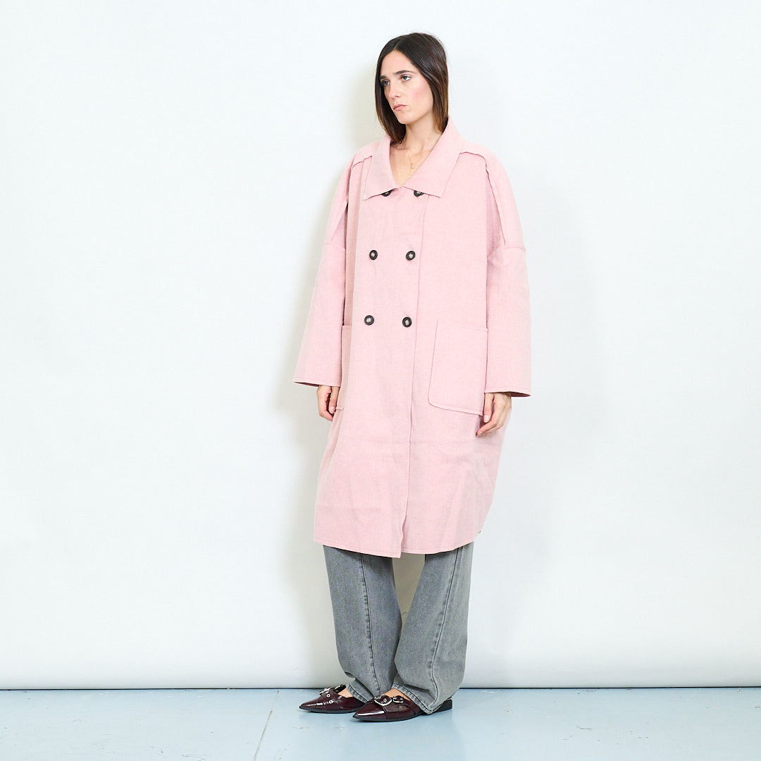 Бутон отпред с дълъг ръкав извънгабаритен джобно палто на едро