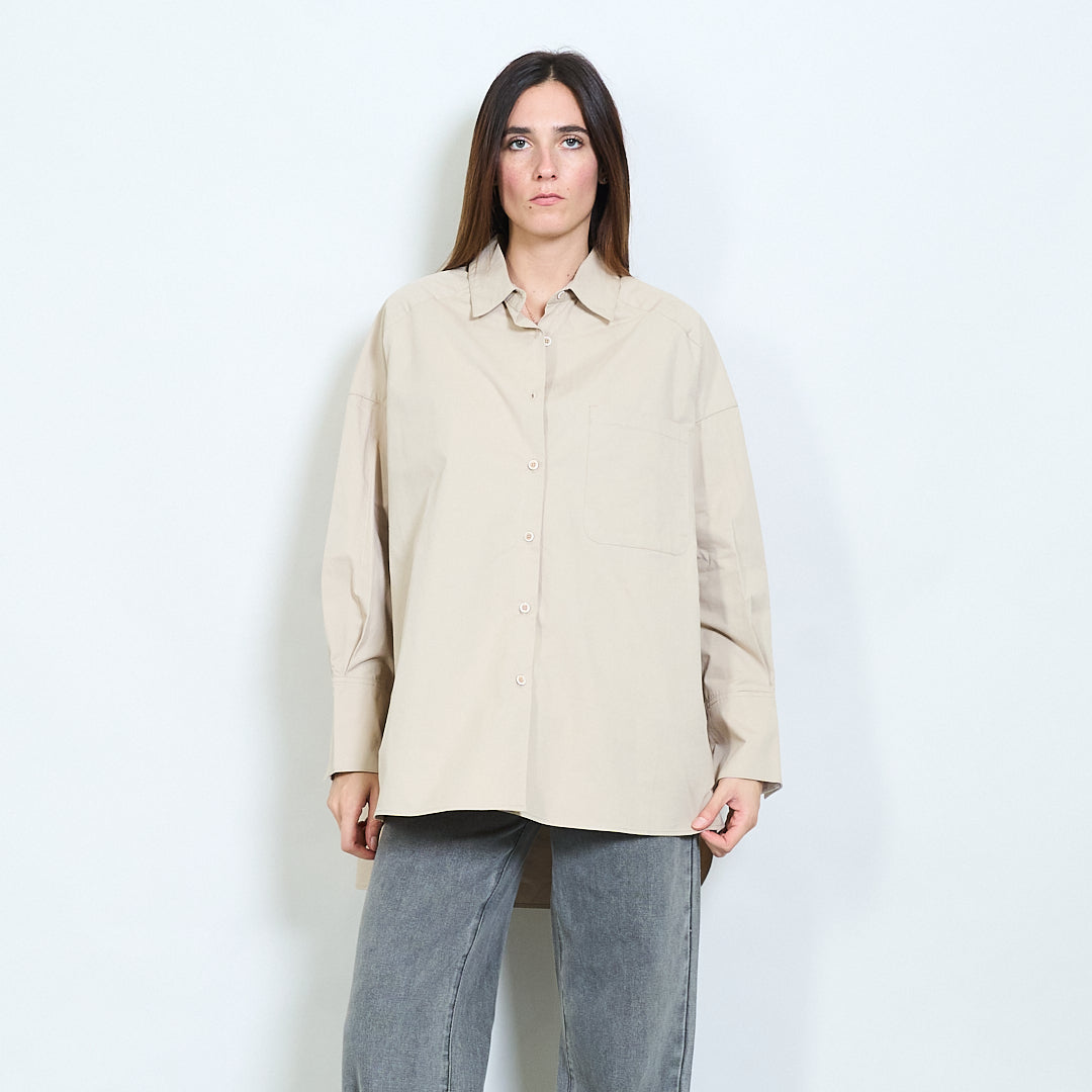 Класически бутон надолу с дълъг ръкав Голяма риза на едро