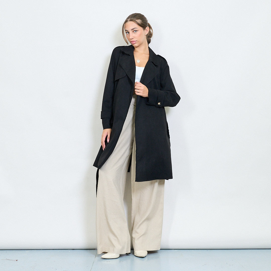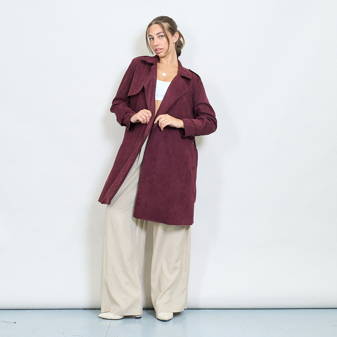 Велурен ефект Belted Trench яке с ревери на едро