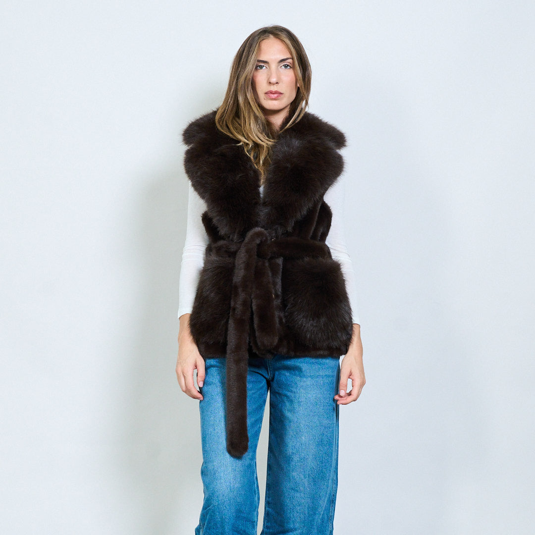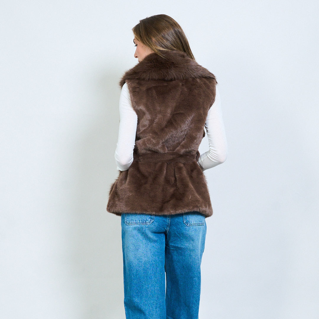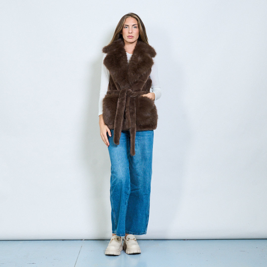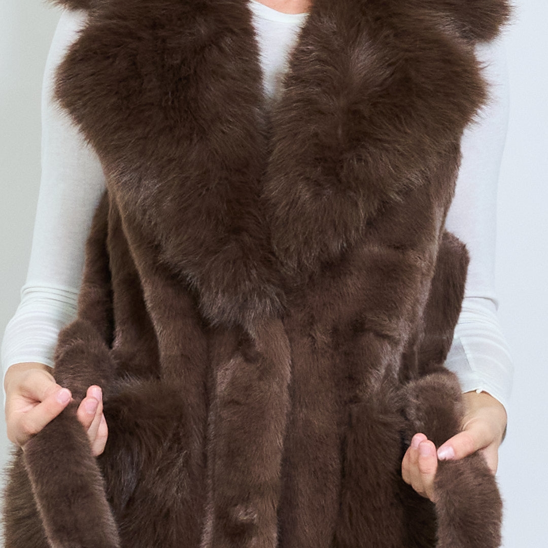 Луксозна дълга козина с изкуствена козина с колан и шал на едро